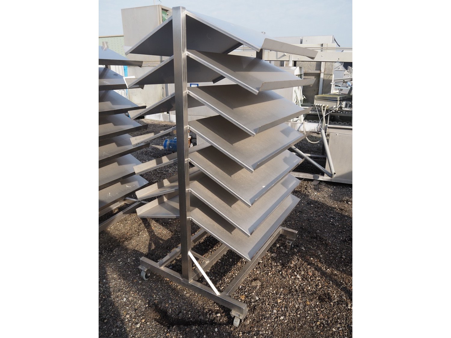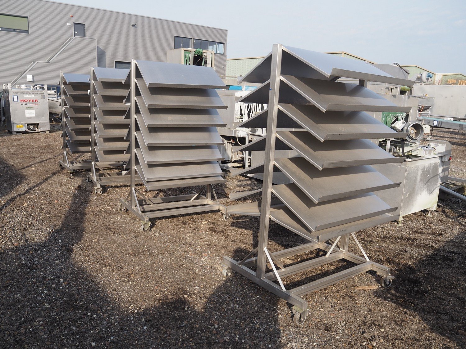 4 s/s trolley, (4x) 14 floors, dimensions floors: (14x) 1000 mm x 500 mm, total dimensions: (4x) 1200 mm x 1000 mm x 1900 mm. Kavel locatie: Amfoor 6, 4421 SE Kapelle, Nederland