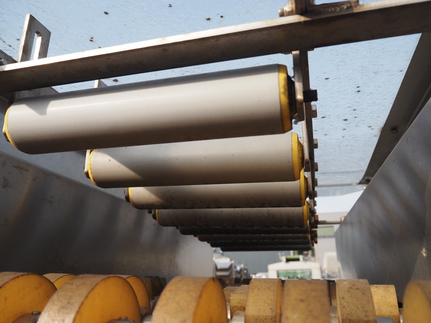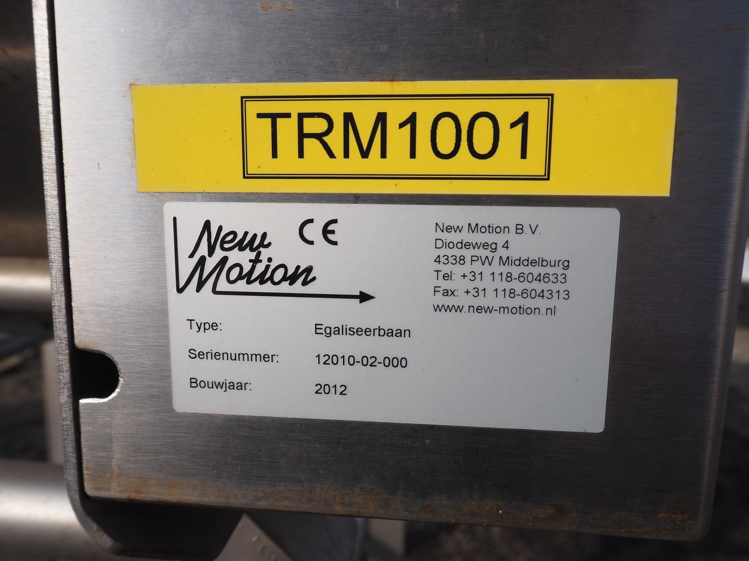 New Motion levelling belt, serial number: 12010-02-000, year of construction: 2012, clearance: 360 mm x 200 mm, plastic rollers, roller width: 230 mm, total dimensions: 1000 mm x 820 mm x 1470 mm. Kavel locatie: Amfoor 6, 4421 SE Kapelle, Nederland