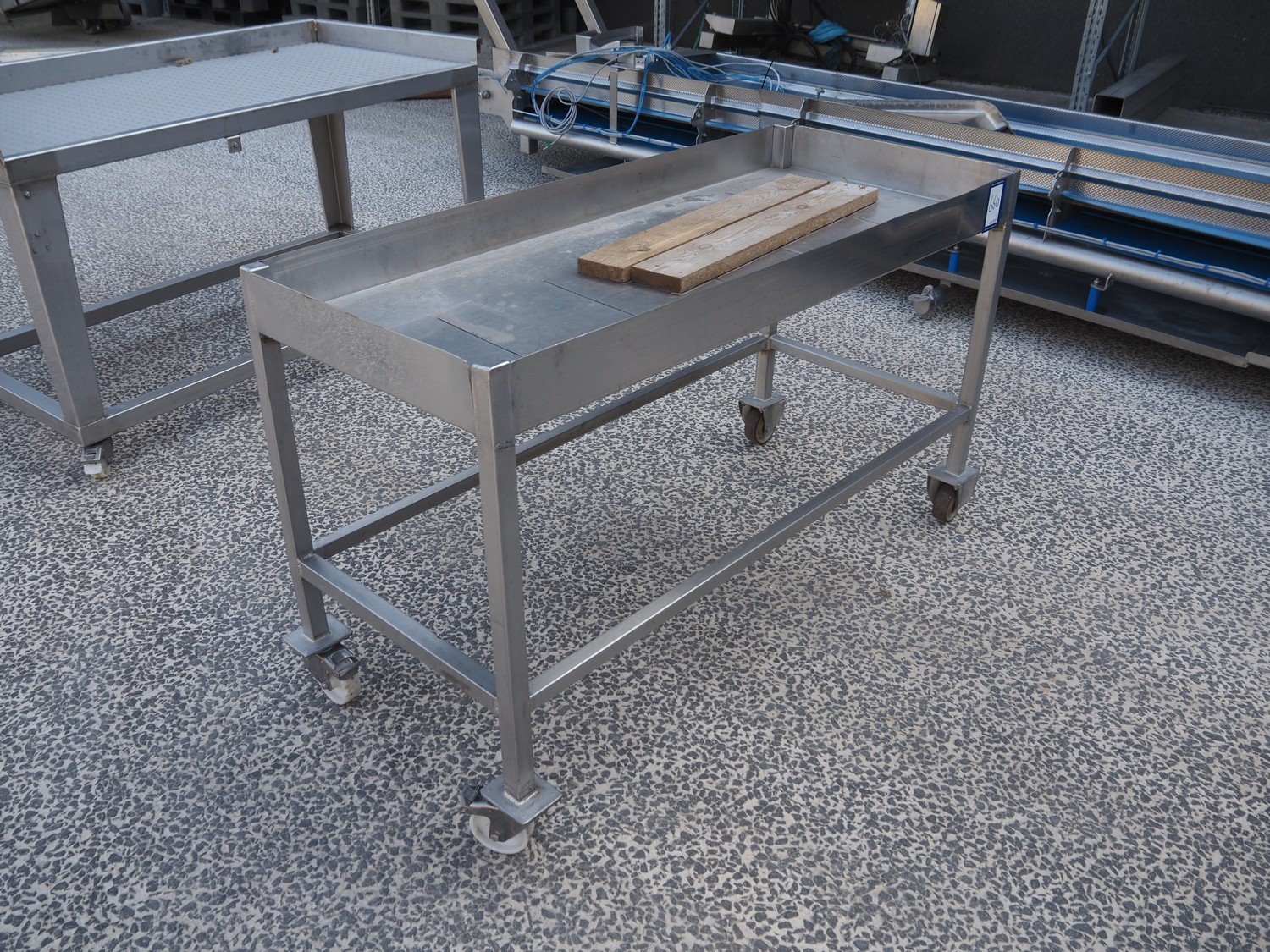 Mobile s/s table, dimensions: 1400 mm x 600 mm x 830 mm. Kavel locatie: Amfoor 6, 4421 SE Kapelle, Nederland