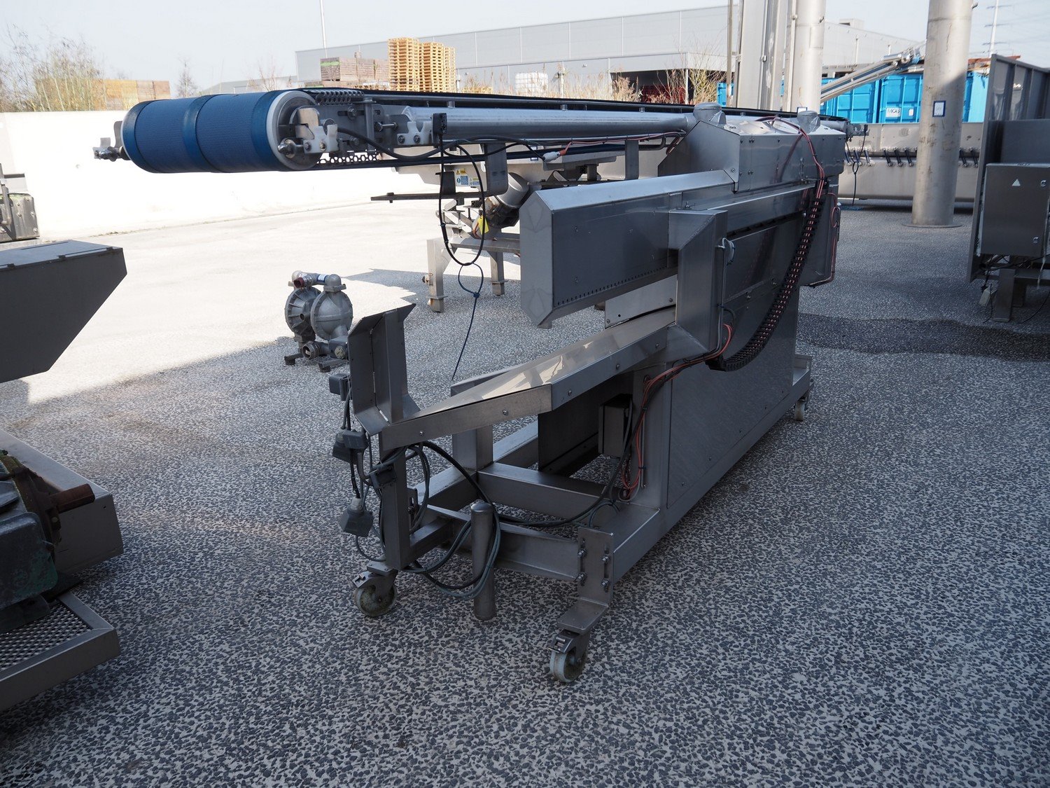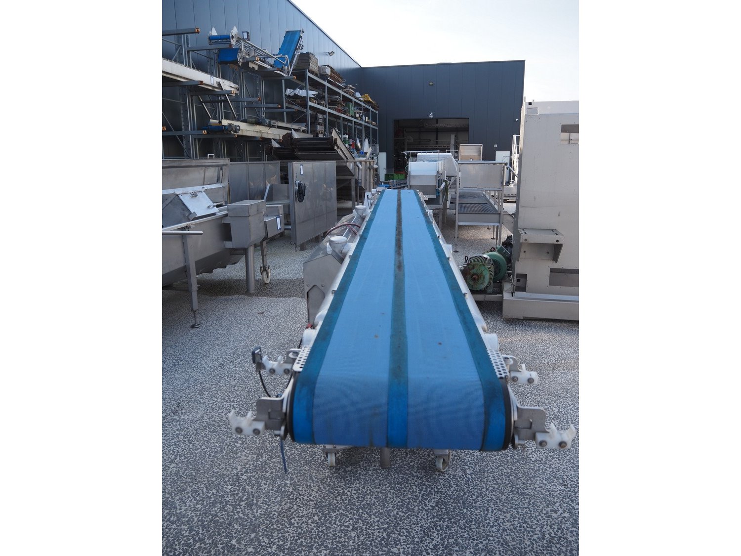 Mobile transport belt, s/s frame, plastic belt, belt width: 380 mm, total dimensions: 4700 mm x 980 mm x 1500 mm. Kavel locatie: Amfoor 6, 4421 SE Kapelle, Nederland