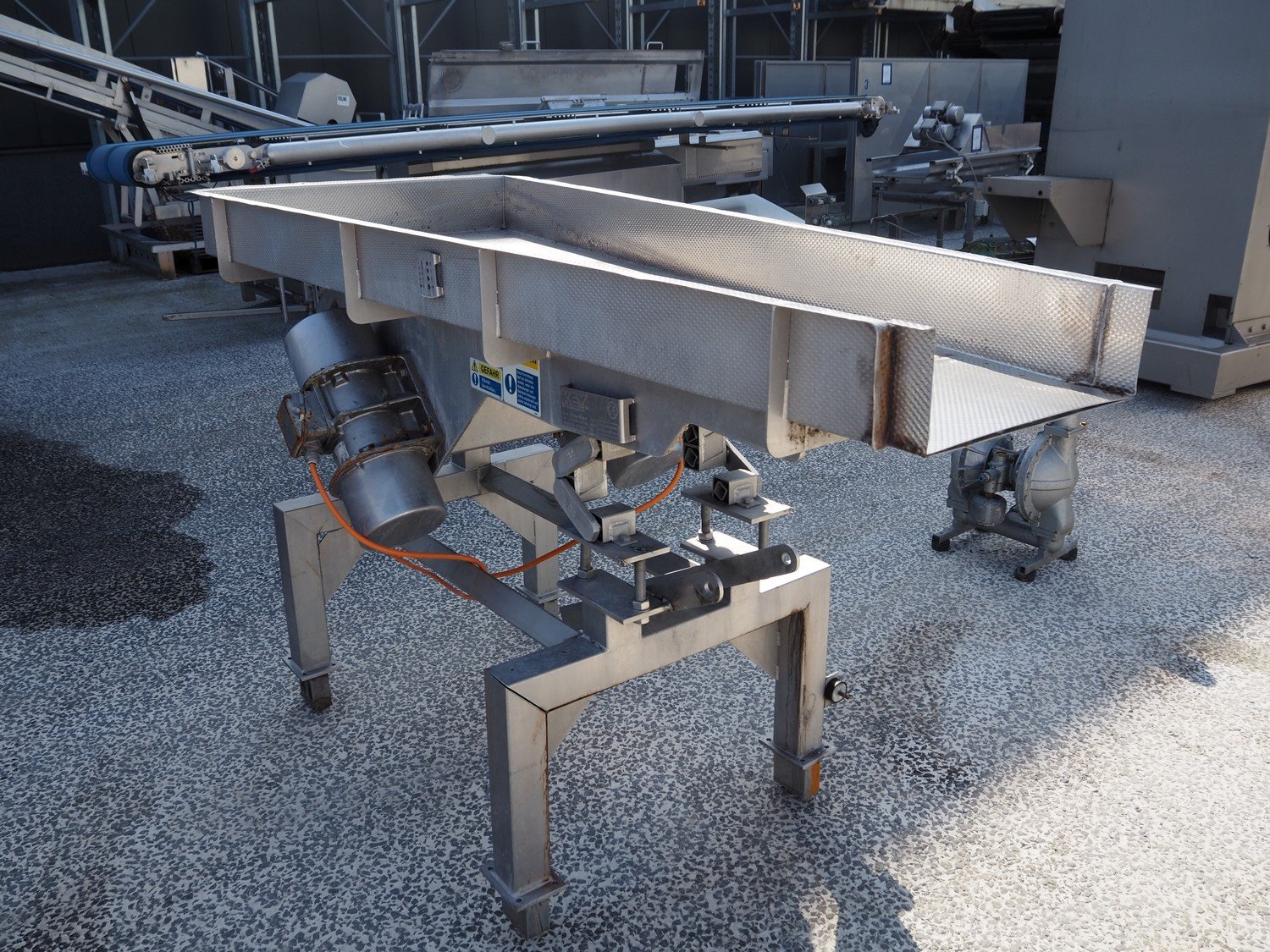 Key Technology BV vibrating gutter, type: MVDID. Year of construction: 2010, gutter width: 850 mm, 470 mm, total dimensions: 2040 mm x 910 mm x 1300 mm. Kavel locatie: Amfoor 6, 4421 SE Kapelle, Nederland