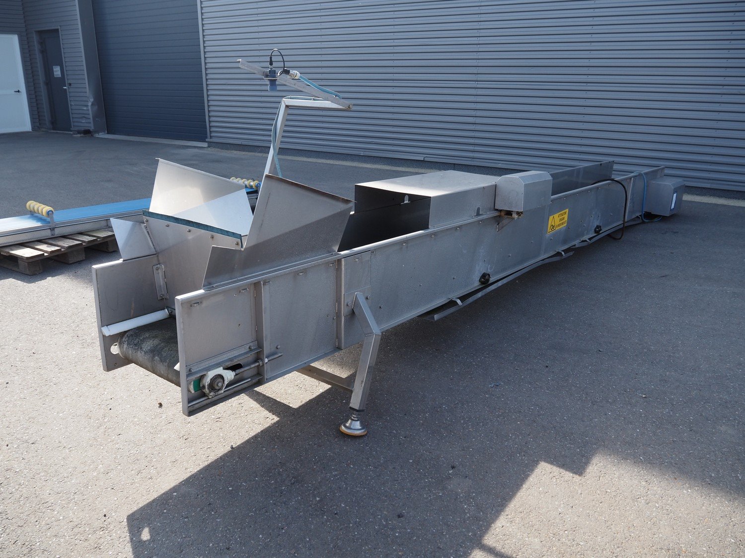 Colleluori Remo transport belt, model: NASTRO ALIMENTAZIONE PESATRICE, machine number: 113, year of construction: 2011, 380 V, 50 Hz, plastic belt, belt width: 500 mm, total dimensions: 6000 mm x 950 mm x 1500 mm. Kavel locatie: Amfoor 6, 4421 SE Kapelle, Nederland