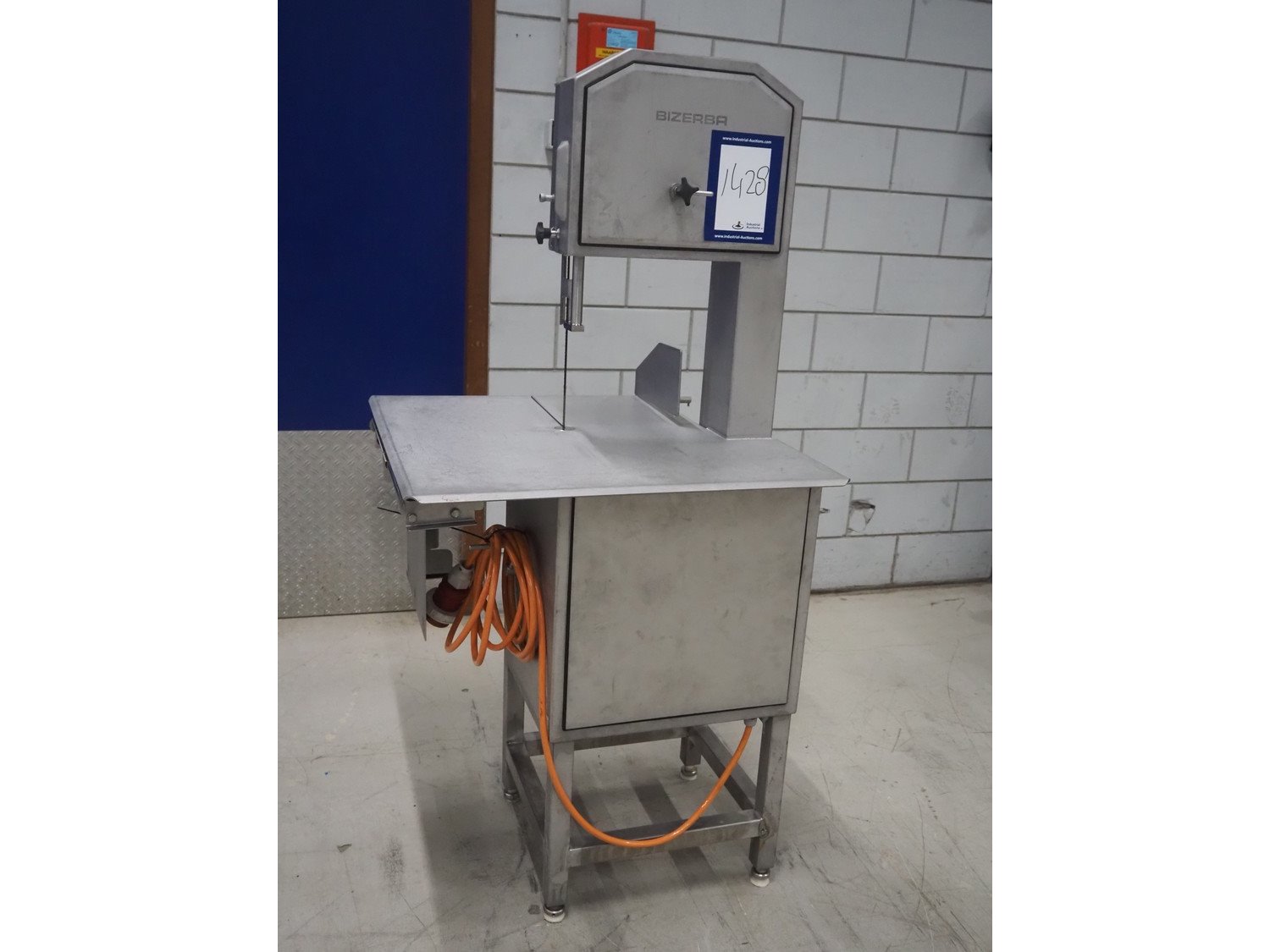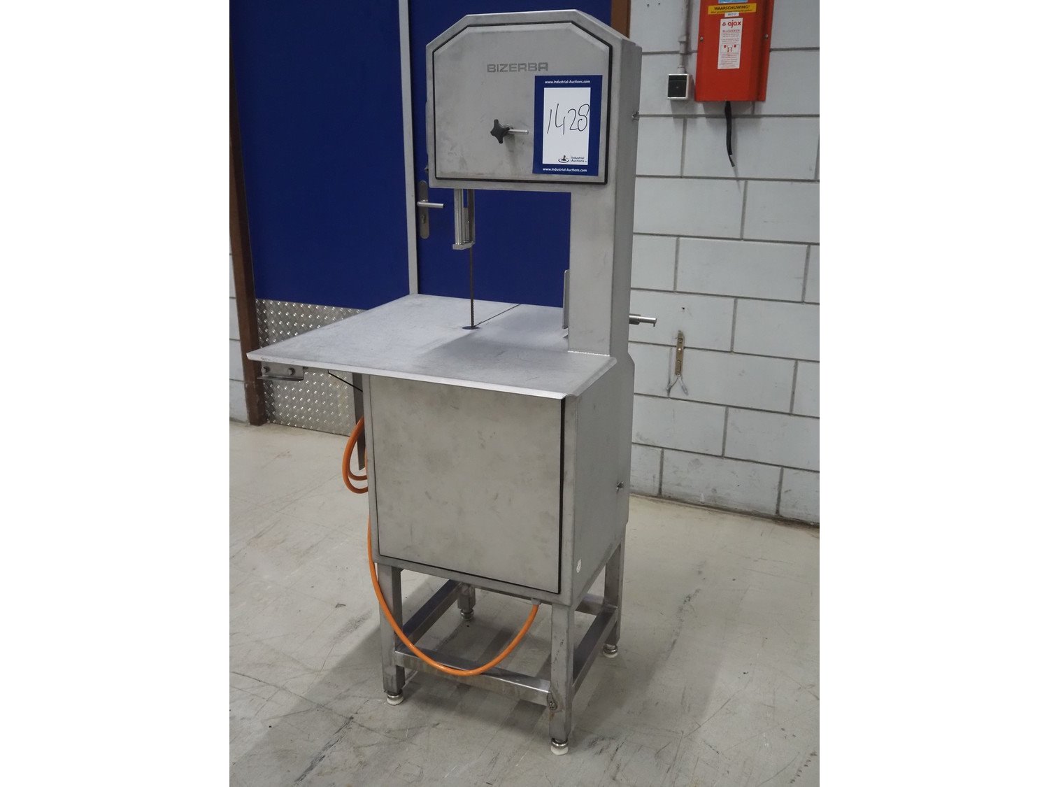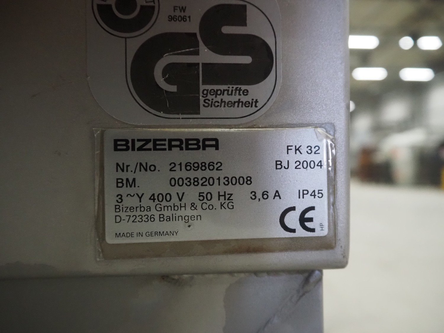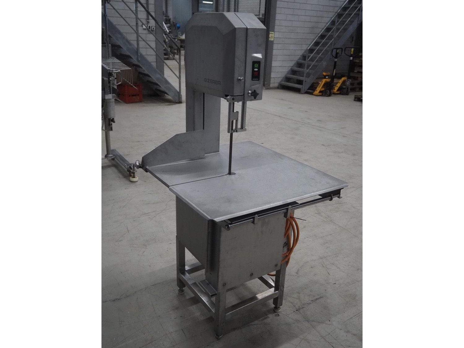 Bizerba bandsaw, model: FK 32, machine number: 2169862, year of construction: 2004, 400 V, 3 Ph, 50 Hz, 3.6 A, table dimensions: 750 mm x 750 mm, total dimensions: 750 mm x 750 mm x 1600 mm. Kavel locatie: Looyenbeemd 11, 5652 BH Eindhoven, Nederland