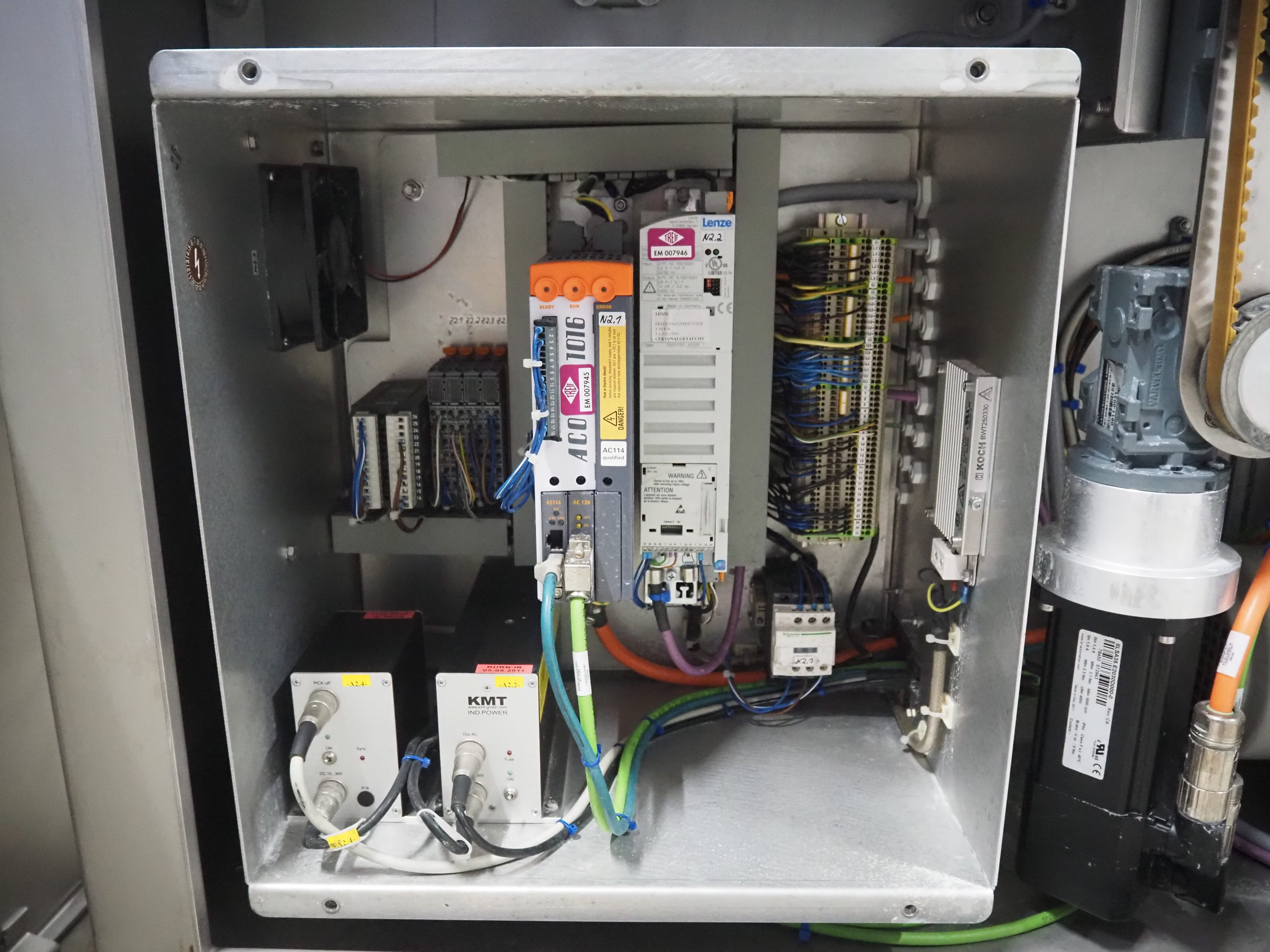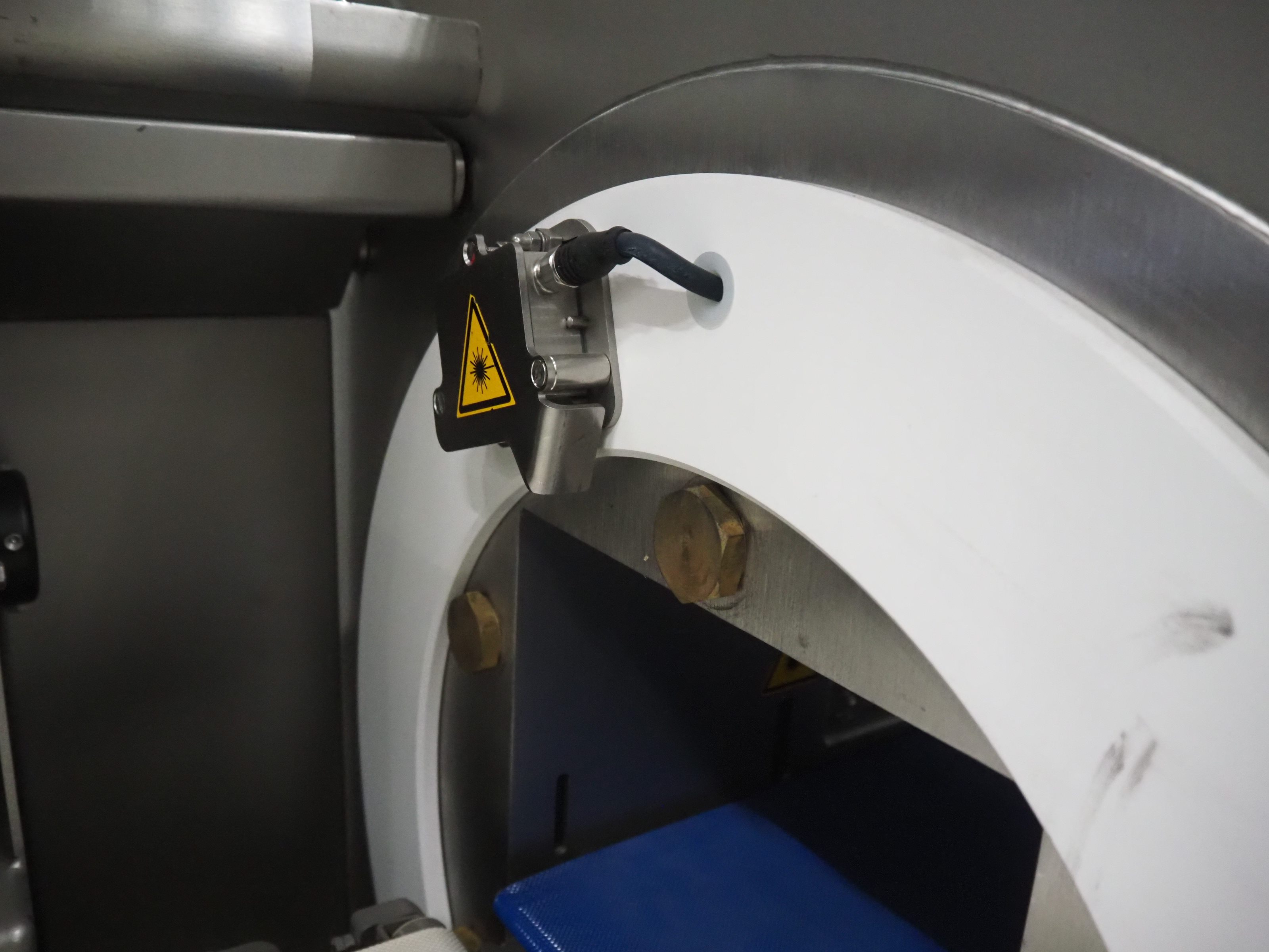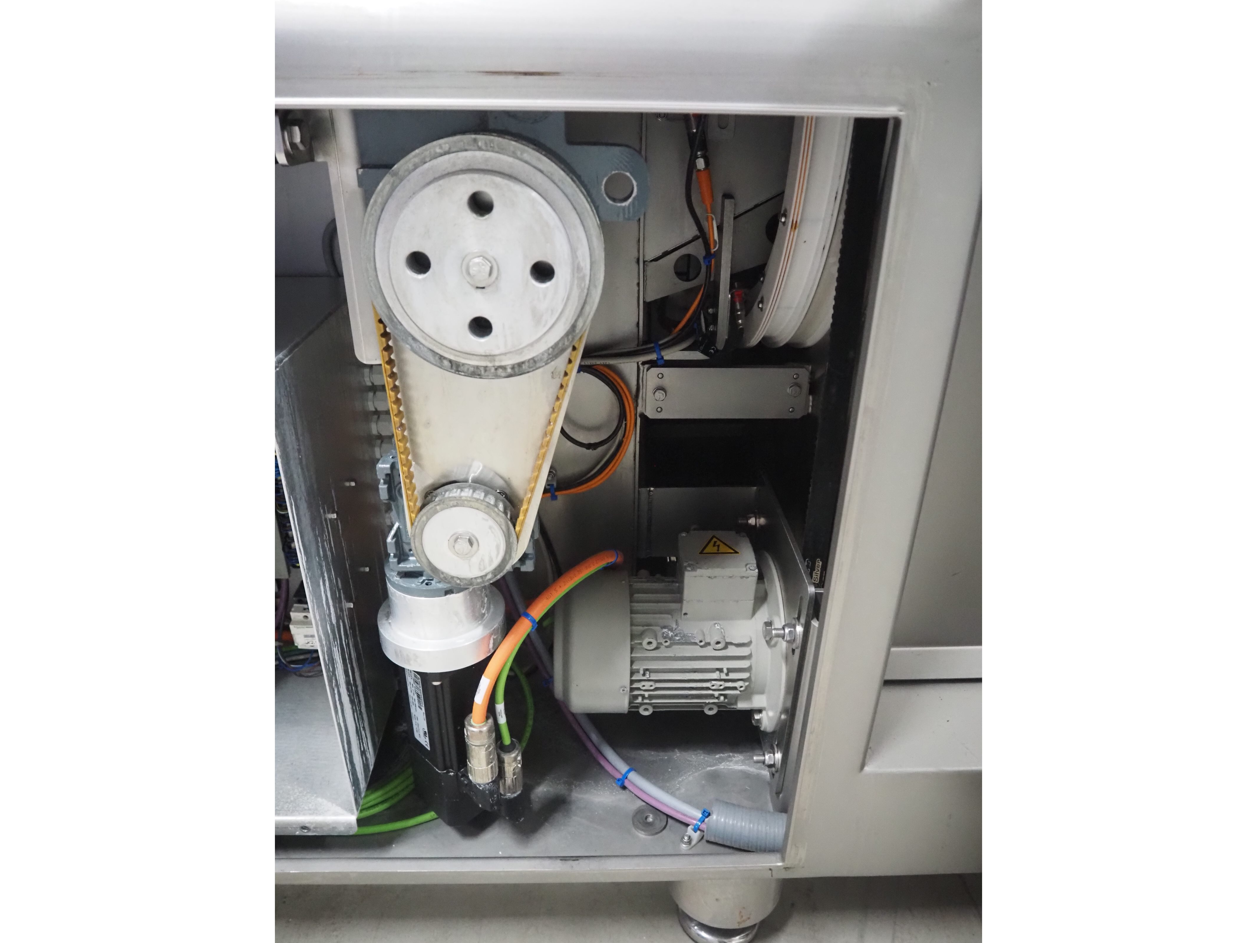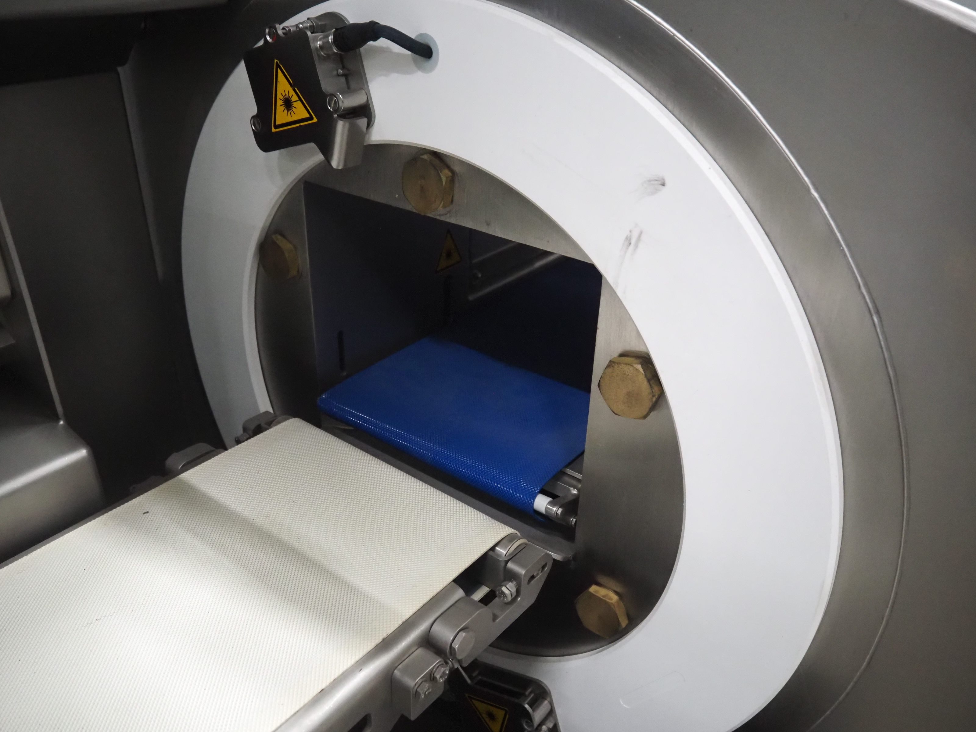 Treif Maschinenbau GmbH slice and portion cutter, model: FALCON CONTI, machine number: 461007.162571.113261, year of construction: 11/2013, 380/480 V, 3 Ph, 50/60 Hz, 22/18/32 A, 8.6/11.7 kW, weight: 750 kg, plastic belts, belt width: 220 mm, clearance: 200 mm x 220 mm, total dimensions: 4600 mm x 1350 mm x 1840 mm. Switch cabinet incomplete. Kavel locatie: Looyenbeemd 11, 5652 BH Eindhoven, Nederland