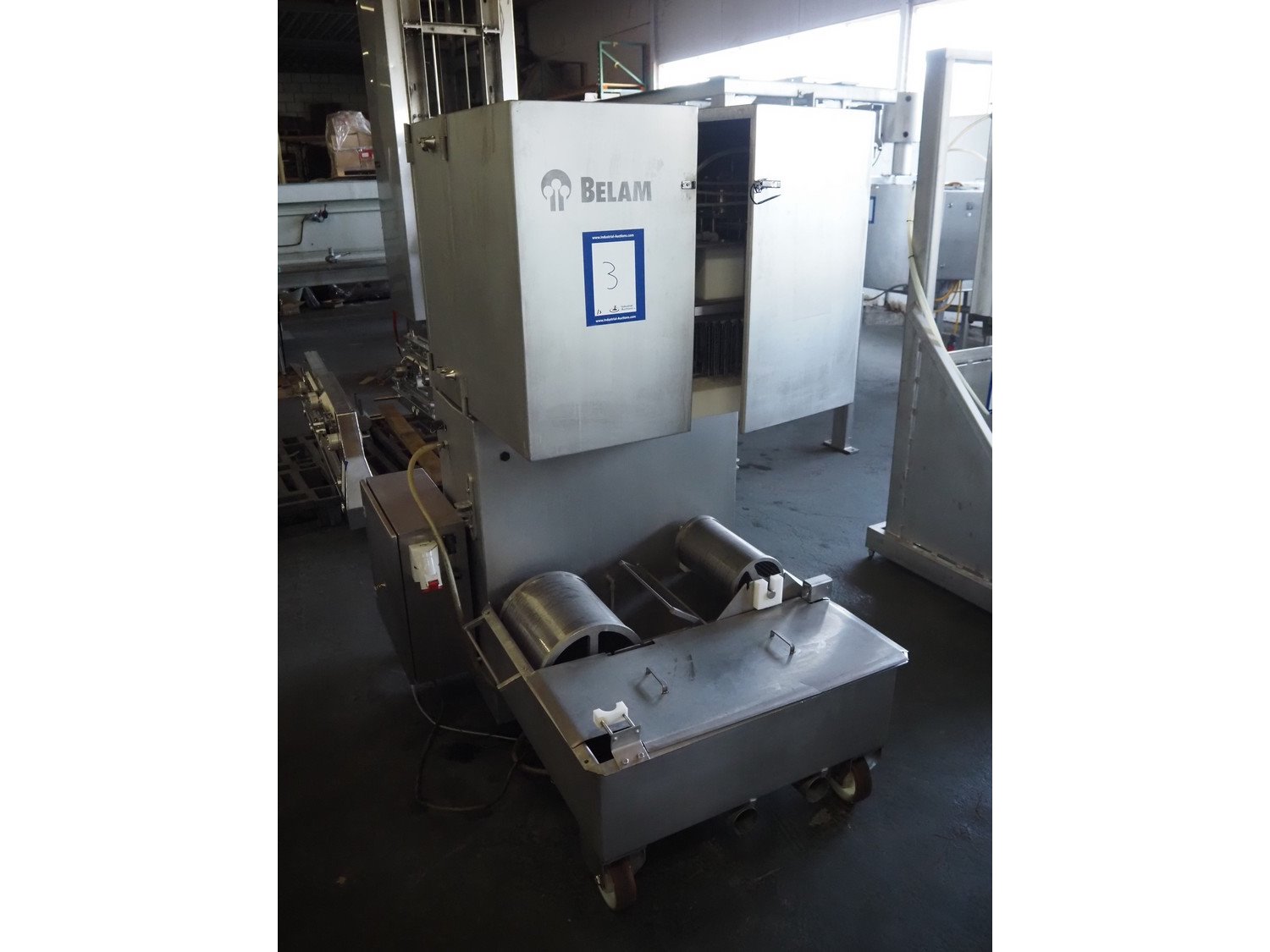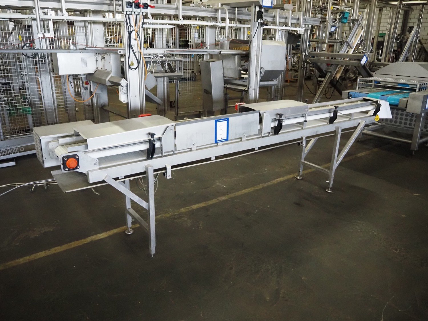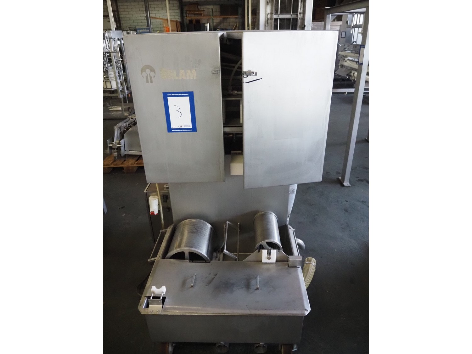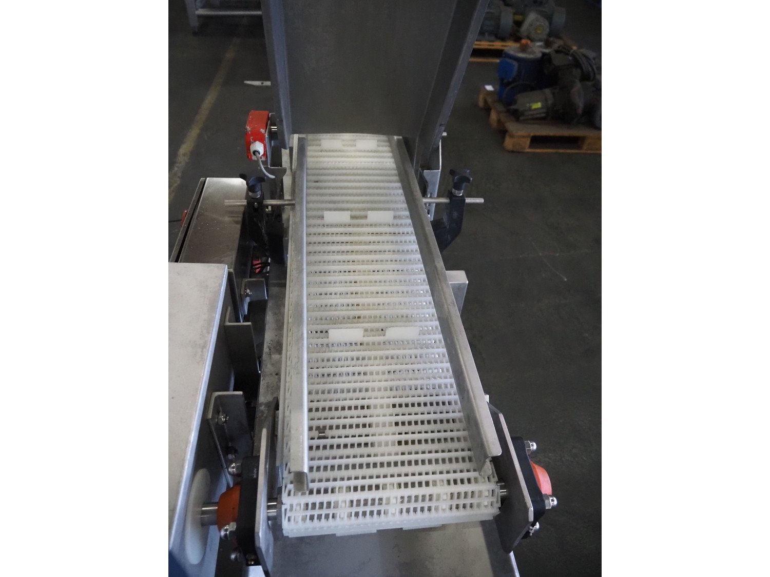 Wolfking Belam injector for whole chickens with outfeed belt and Voltman Konstruktie BV brine mixing tank, injector model: WBI-220, year of construction: 2000, 400 V, 50 Hz, 14 A, capacity: up to 2100 bph, 120 needles, dimensions injector: 1500 mm x 1100 mm x 1780 mm, outfeed belt, s/s frame, plastic mesh belt, belt width: 250 mm, dimensions outfeed belt: 3950 mm x 750 mm x 1100 mm. Voltman Konstruktie BV s/s brine mixing tank, type: BM 900, serial number: 1699, year of construction: 2000-08, inside dimensions: ø 1120 mm x 750 mm, total dimensions: 1500 mm x 1450 mm x 2200 mm. Kavel locatie: Pastoorslaan 22, 2182 BX Hillegom, Nederland