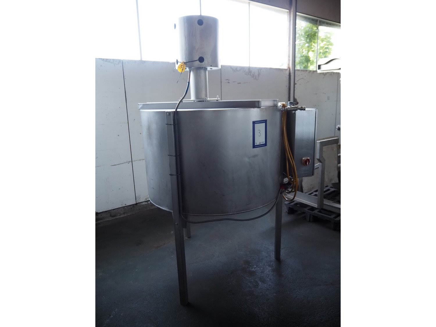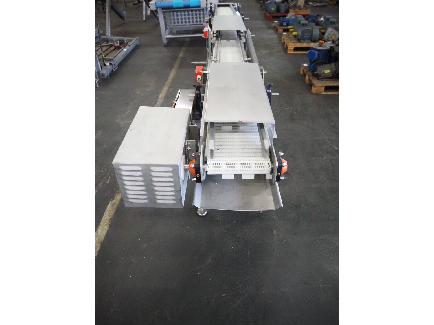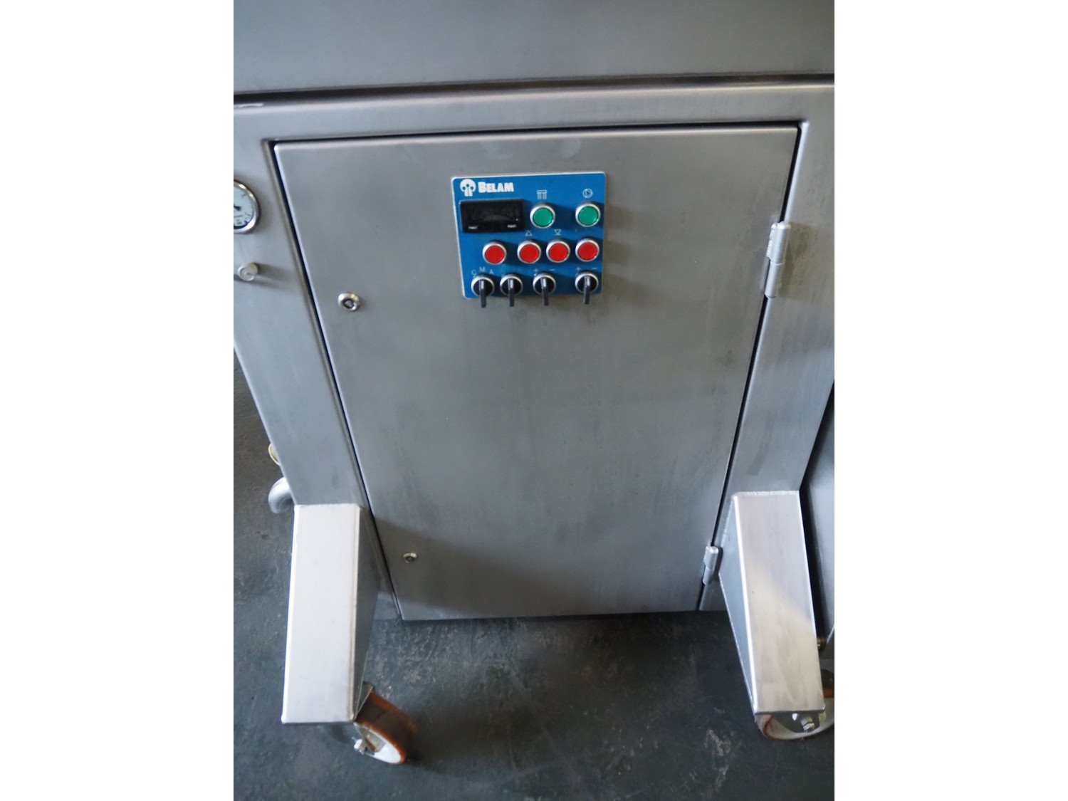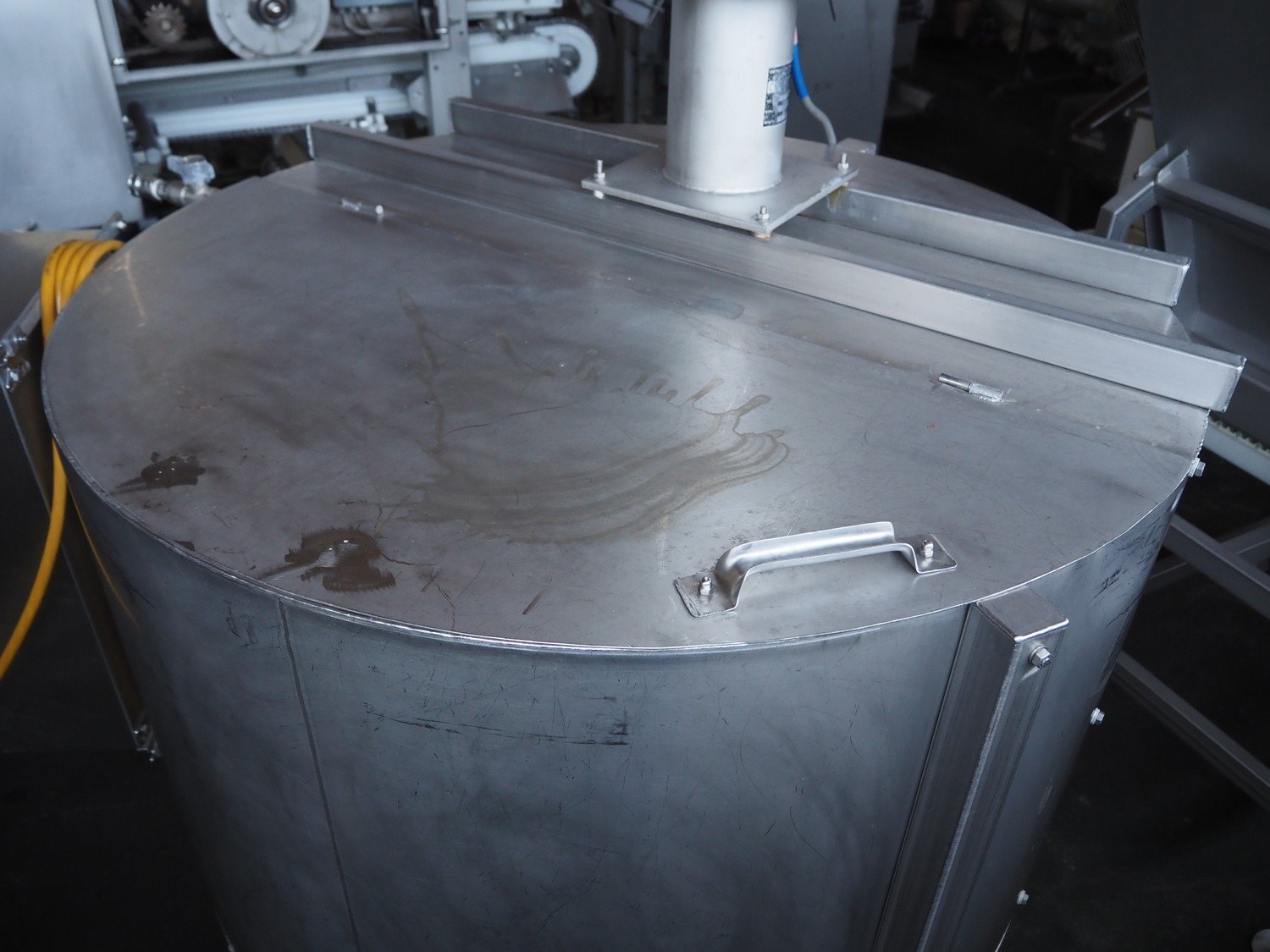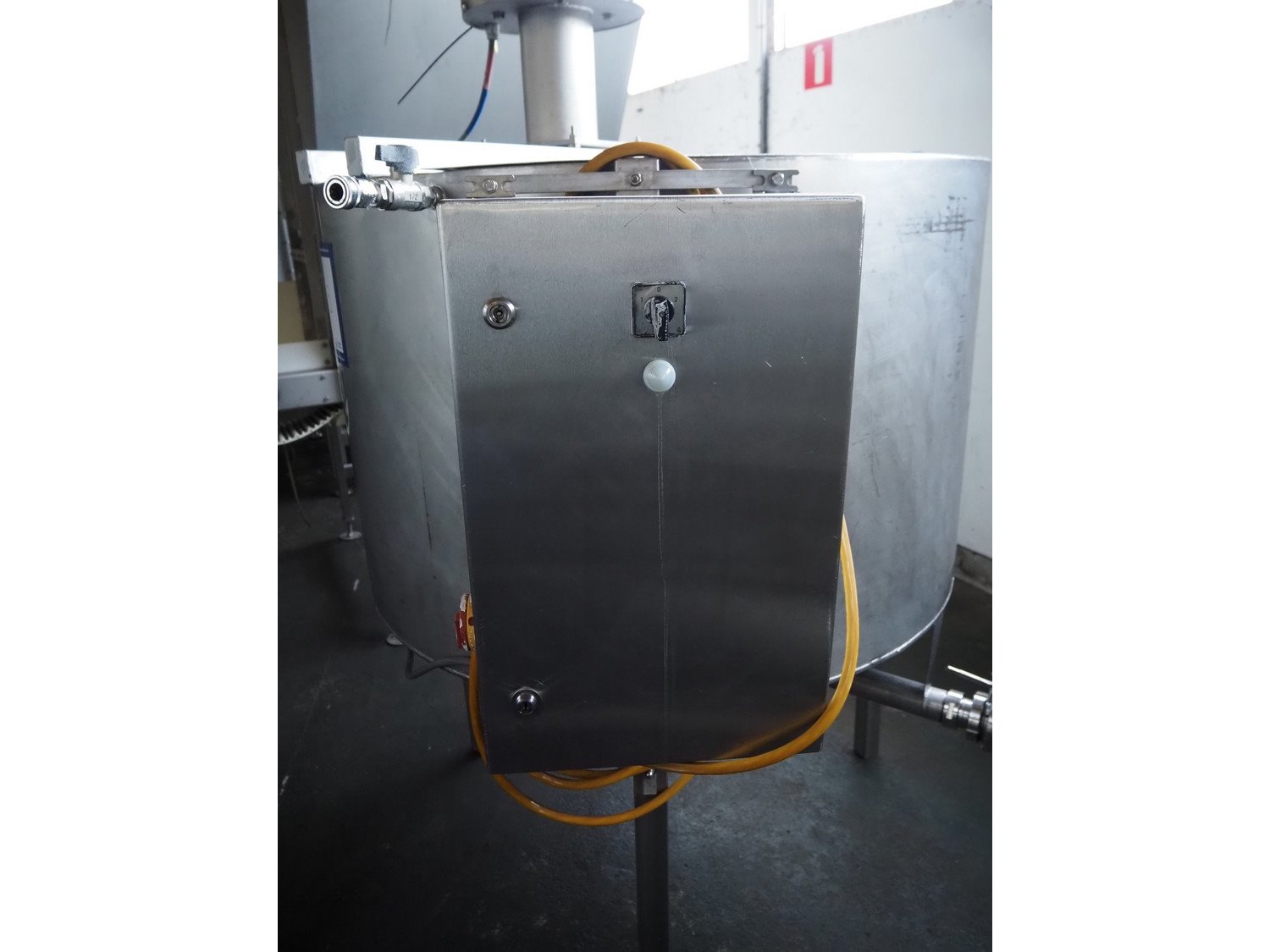 Wolfking Belam injector for whole chickens with outfeed belt and Voltman Konstruktie BV brine mixing tank, injector model: WBI-220, year of construction: 2000, 400 V, 50 Hz, 14 A, capacity: up to 2100 bph, 120 needles, dimensions injector: 1500 mm x 1100 mm x 1780 mm, outfeed belt, s/s frame, plastic mesh belt, belt width: 250 mm, dimensions outfeed belt: 3950 mm x 750 mm x 1100 mm. Voltman Konstruktie BV s/s brine mixing tank, type: BM 900, serial number: 1699, year of construction: 2000-08, inside dimensions: ø 1120 mm x 750 mm, total dimensions: 1500 mm x 1450 mm x 2200 mm. Kavel locatie: Pastoorslaan 22, 2182 BX Hillegom, Nederland