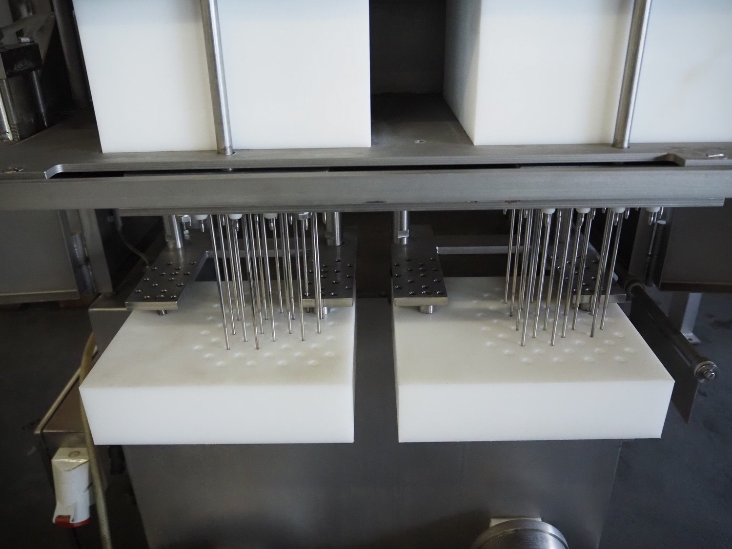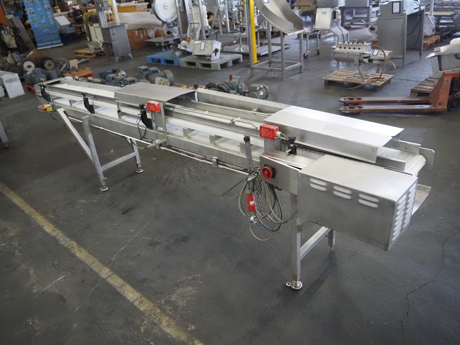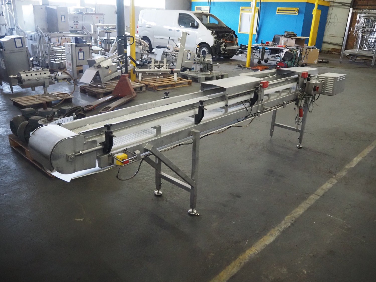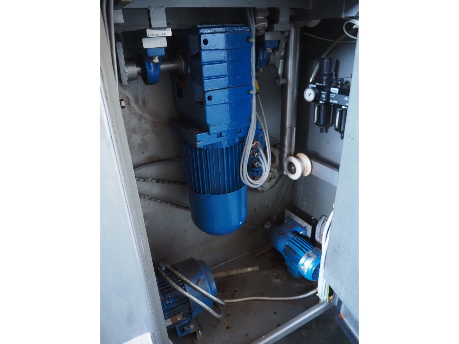 Wolfking Belam injector for whole chickens with outfeed belt and Voltman Konstruktie BV brine mixing tank, injector model: WBI-220, year of construction: 2000, 400 V, 50 Hz, 14 A, capacity: up to 2100 bph, 120 needles, dimensions injector: 1500 mm x 1100 mm x 1780 mm, outfeed belt, s/s frame, plastic mesh belt, belt width: 250 mm, dimensions outfeed belt: 3950 mm x 750 mm x 1100 mm. Voltman Konstruktie BV s/s brine mixing tank, type: BM 900, serial number: 1699, year of construction: 2000-08, inside dimensions: ø 1120 mm x 750 mm, total dimensions: 1500 mm x 1450 mm x 2200 mm. Kavel locatie: Pastoorslaan 22, 2182 BX Hillegom, Nederland