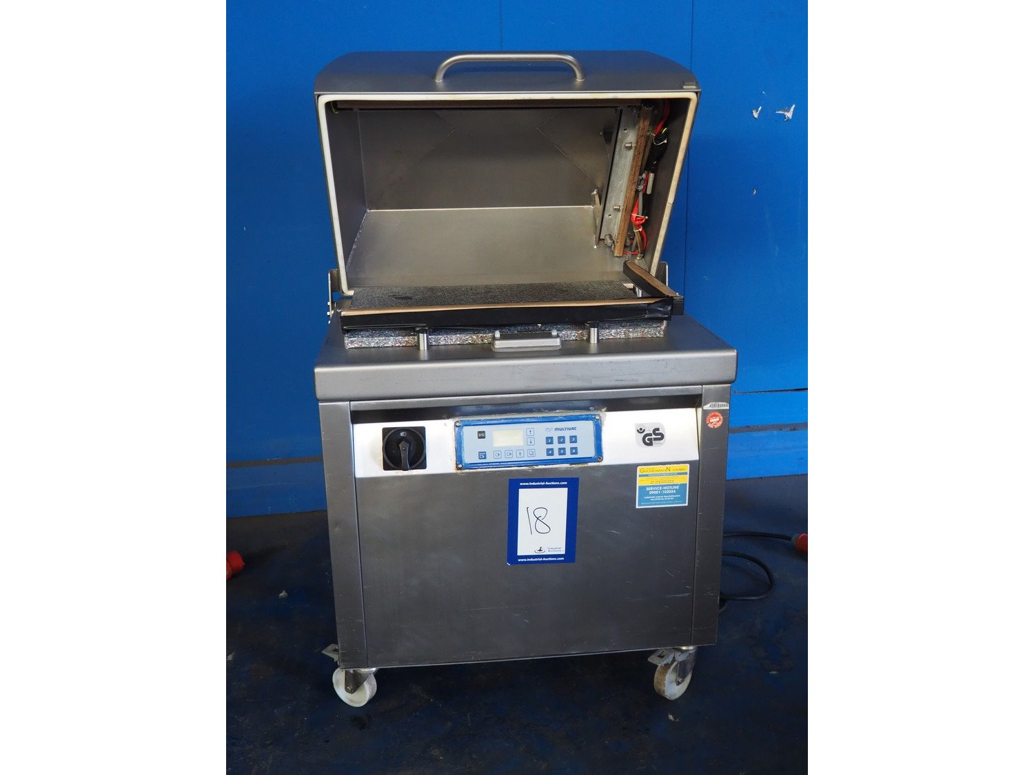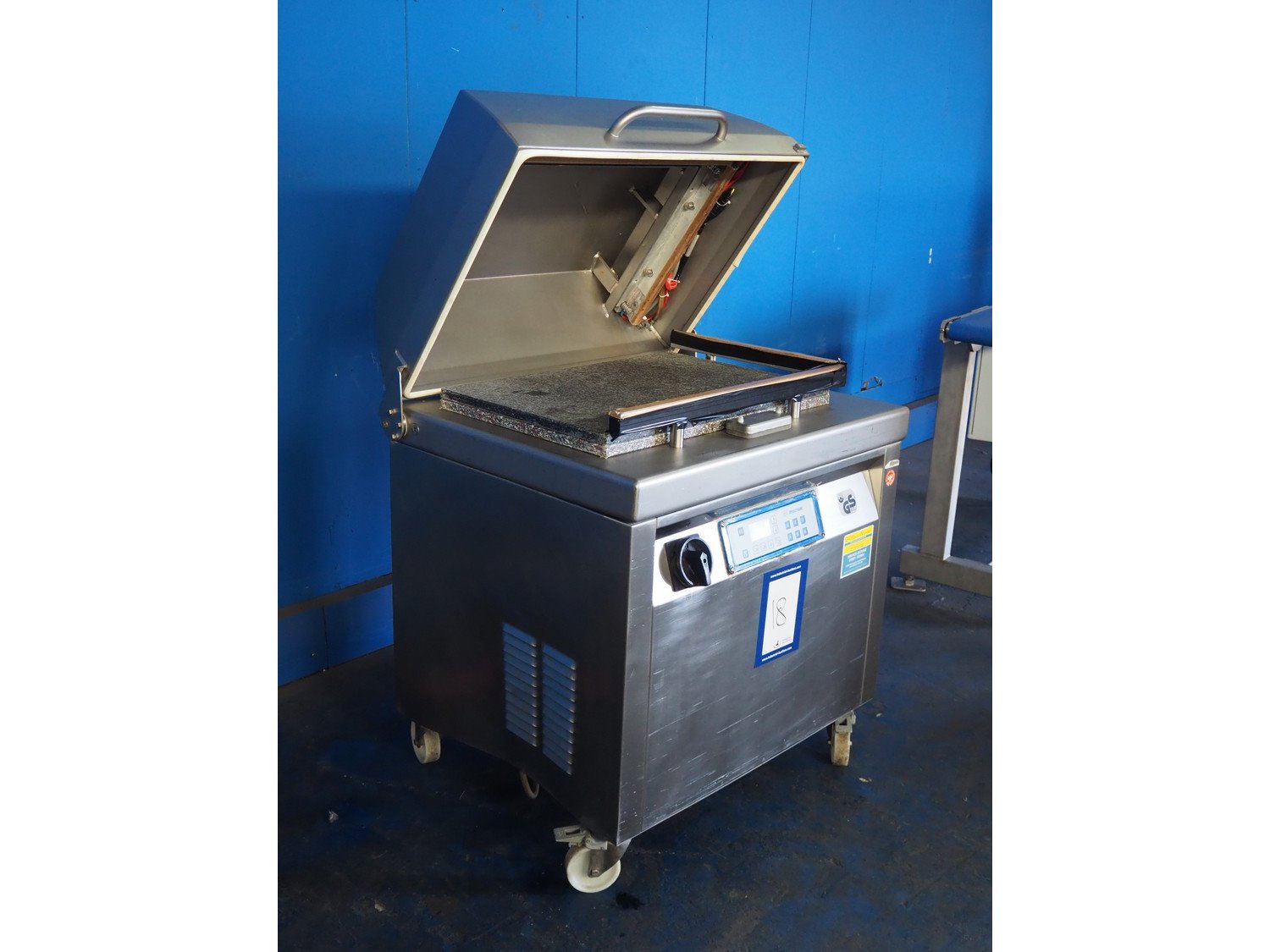 Multivac mobile vacuum machine, model: C400, number: 859, year of construction: 2004, 400 V, 3 Ph, 50 Hz, 15 A, chamber dimensions: 660 mm x 450 mm, seal length: 660 mm and 460 mm, total dimensions: 900 mm x 700 mm x 1100 mm. Kavel locatie: Pastoorslaan 22, 2182 BX Hillegom, Nederland