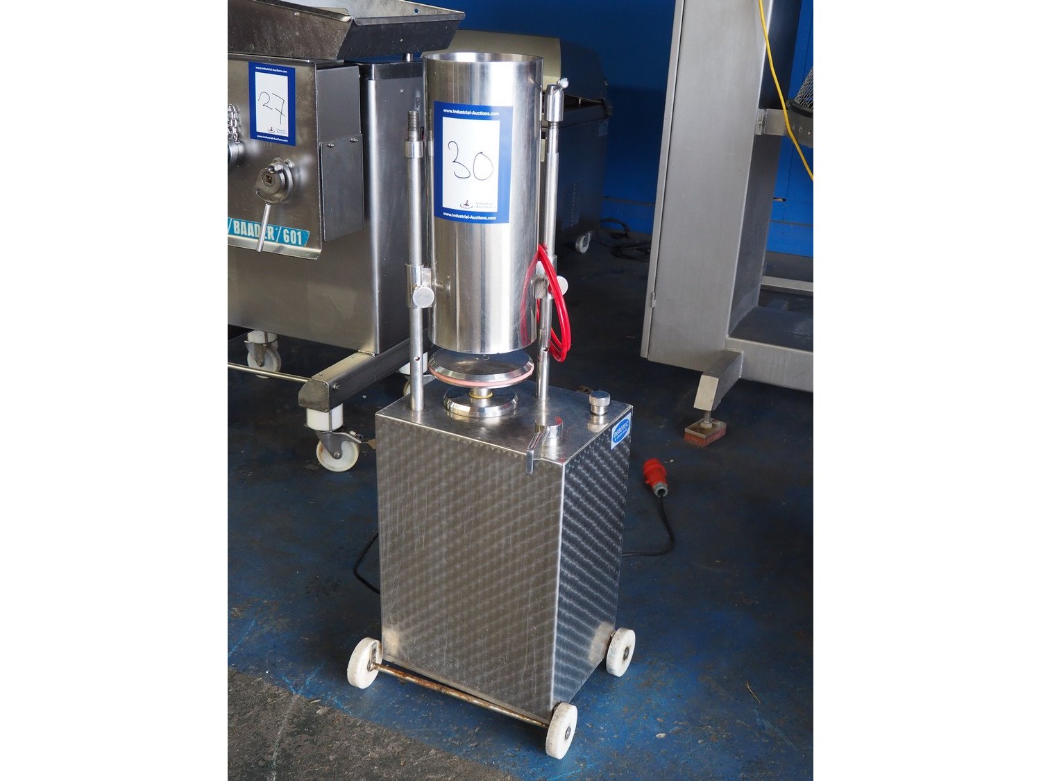 Mobile s/s piston filler, inside dimensions: Ø 200 mm x 500 mm, total dimensions: 450 mm x 350 mm x 1260 mm. Kavel locatie: Pastoorslaan 22, 2182 BX Hillegom, Nederland