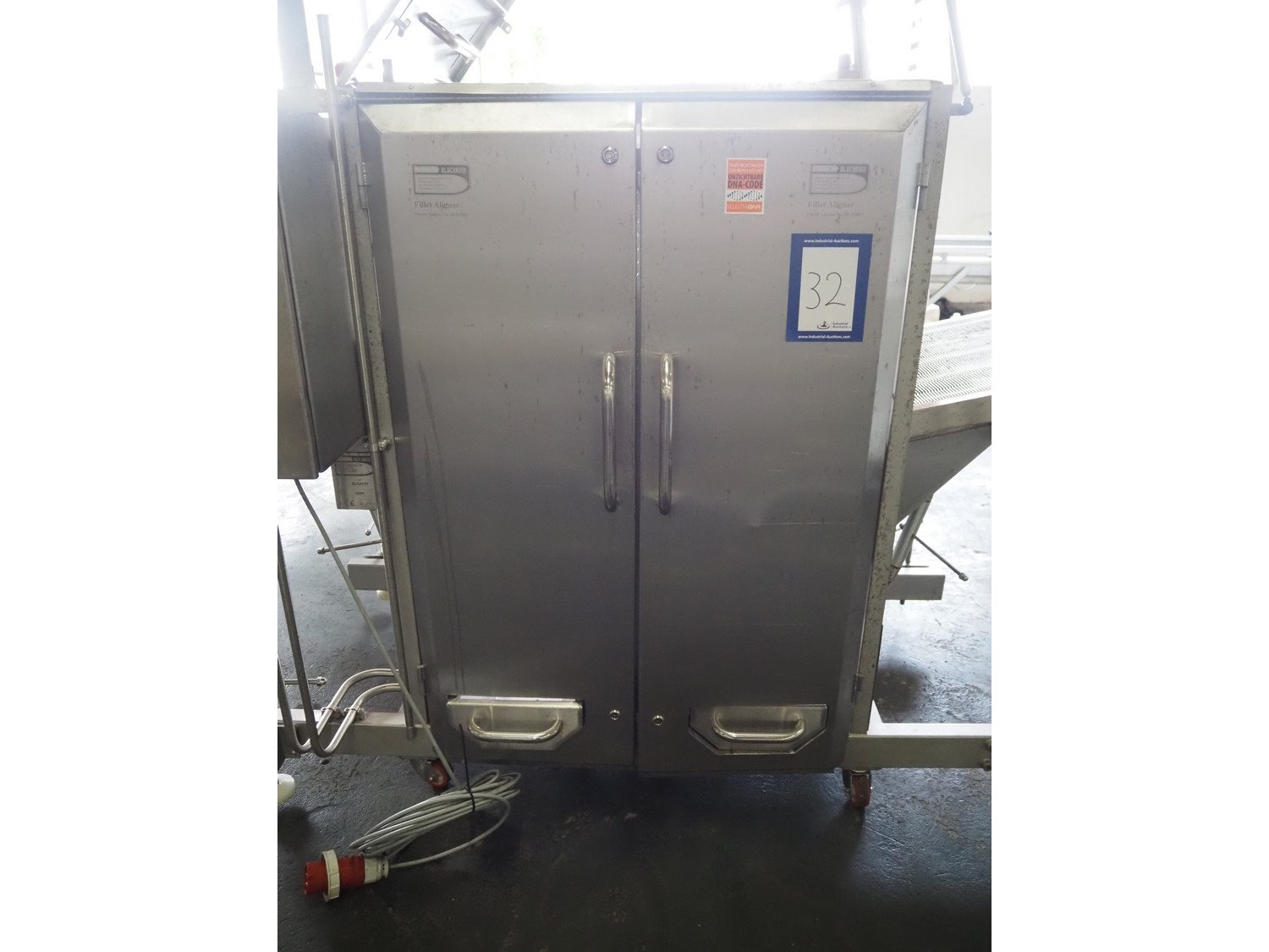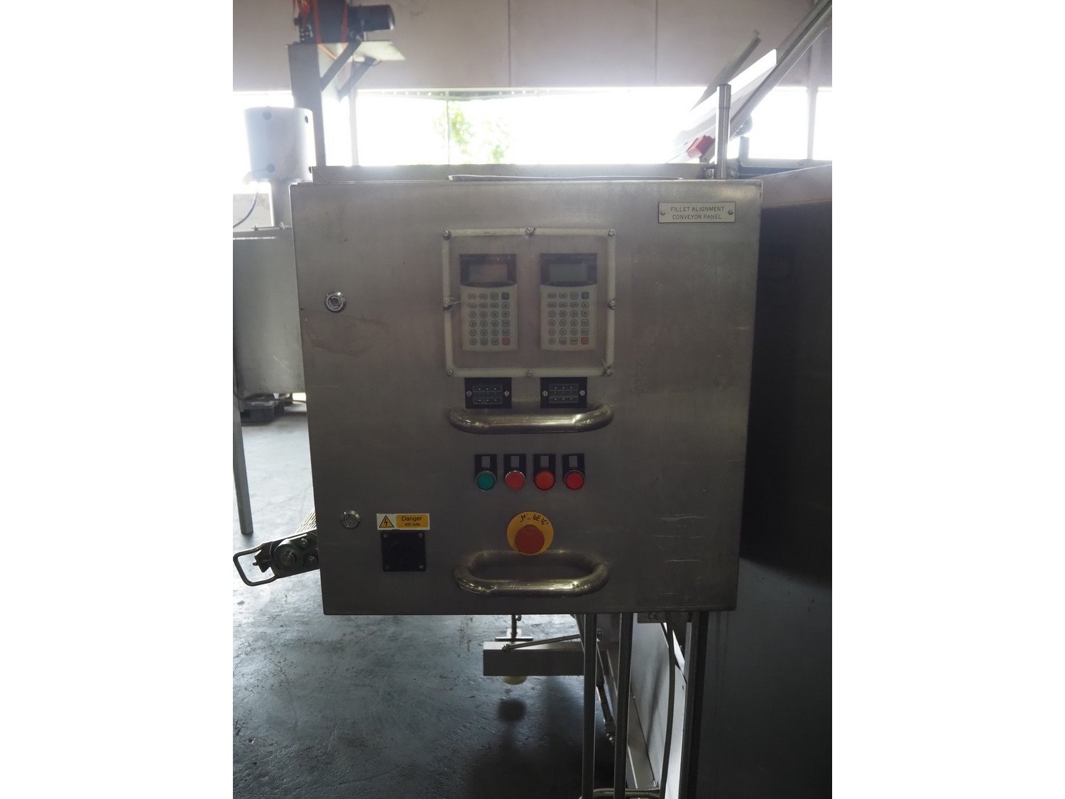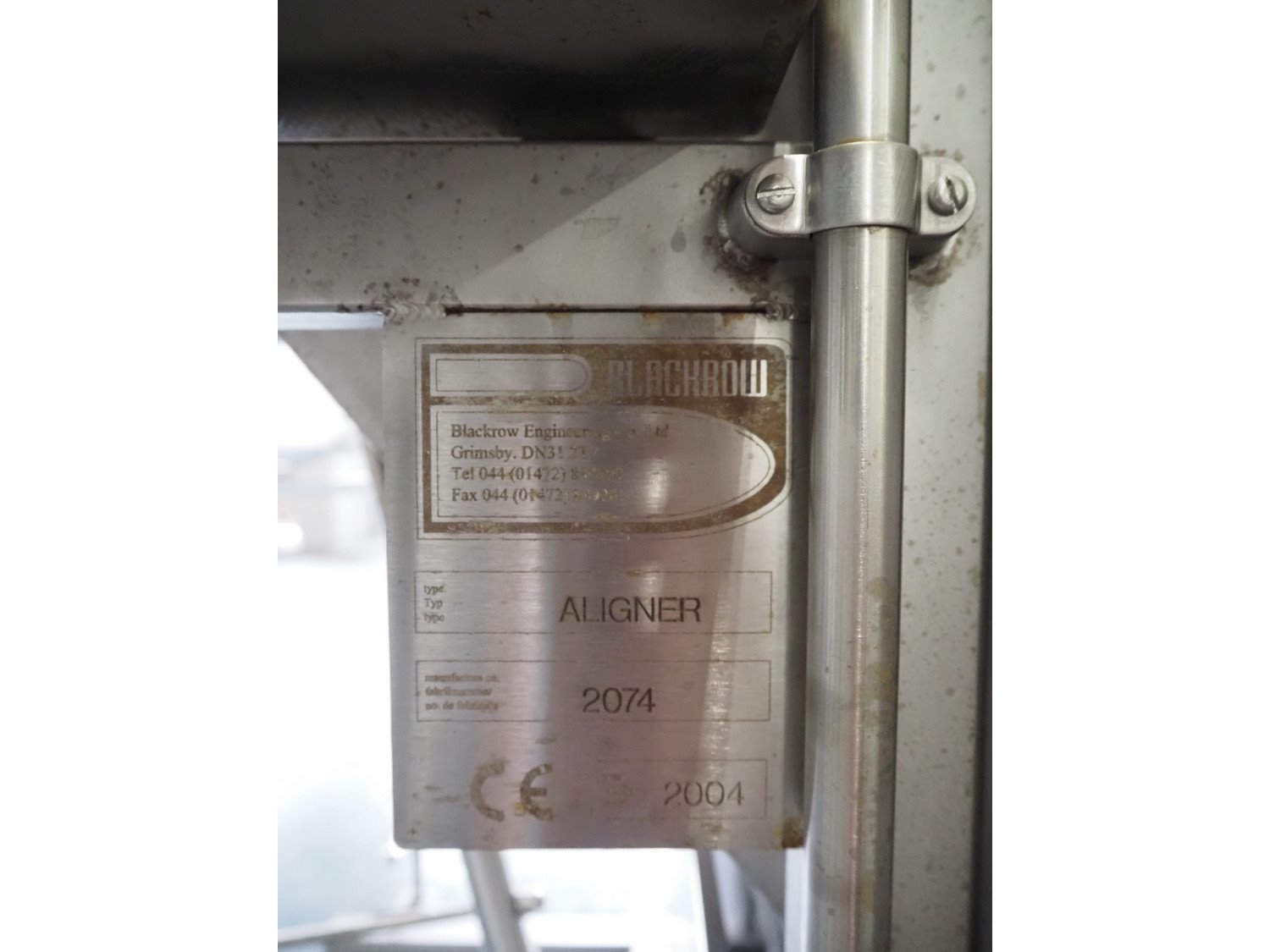 Blackrow fillet aligner, type: aligner, number: 2074, year of construction: 2004, s/s mesh belt, belt width: 600 mm, total dimensions: 2800 mm x 1250 mm x 1650 mm. Kavel locatie: Pastoorslaan 22, 2182 BX Hillegom, Nederland