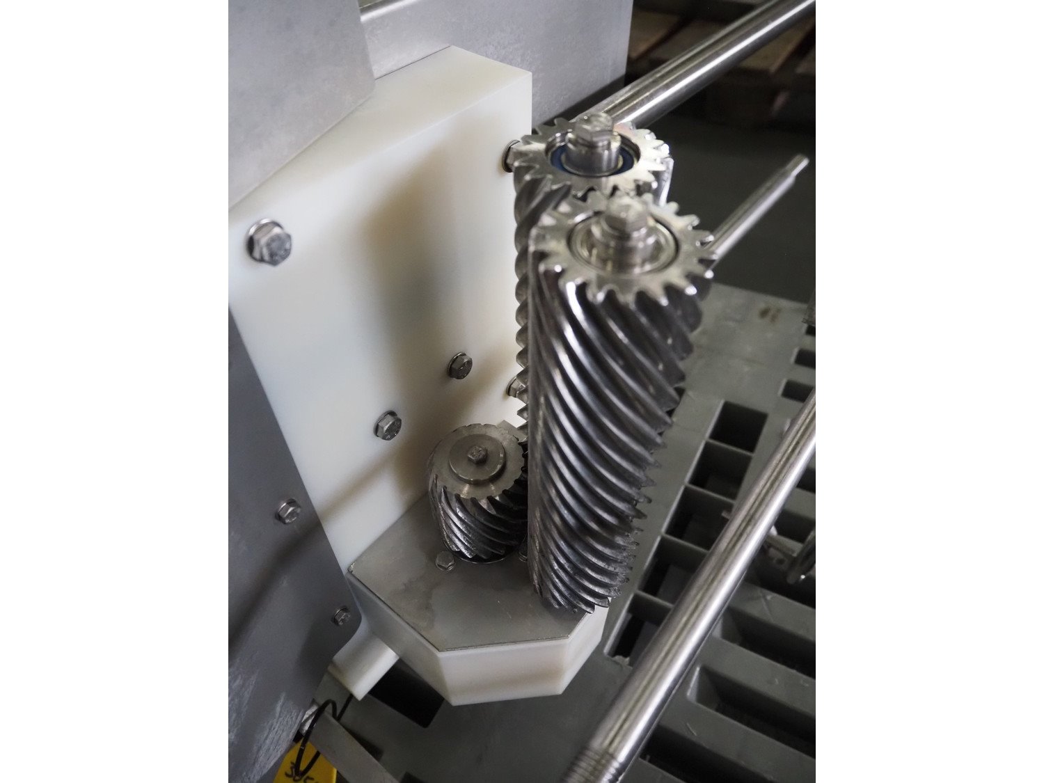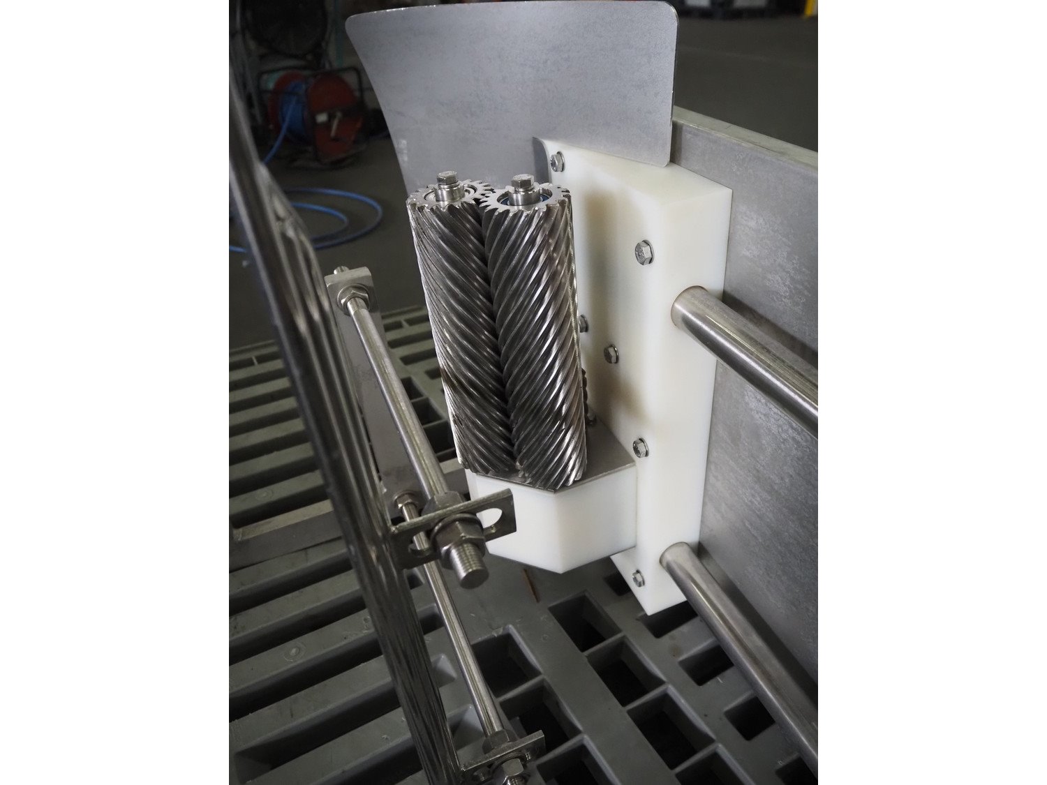 Stork B.V. inline deskinner, s/s worms, worm diameter: 50 mm, dimensions: 1100 mm x 600 mm x 700 mm. Kavel locatie: Pastoorslaan 22, 2182 BX Hillegom, Nederland