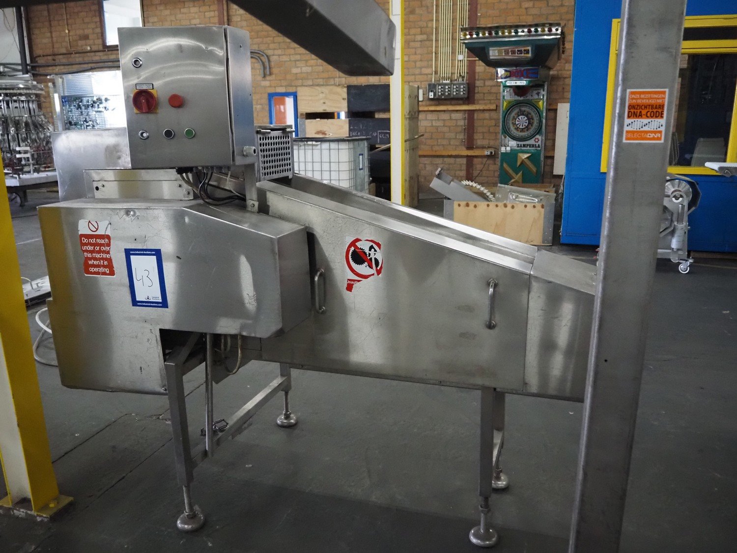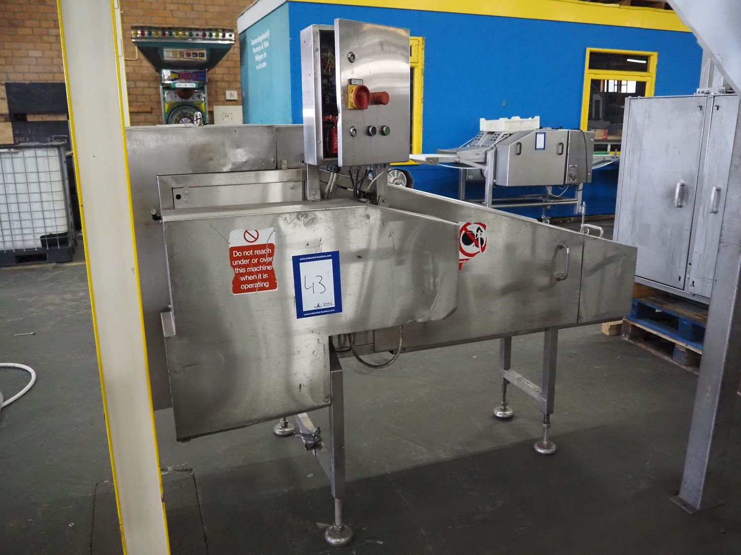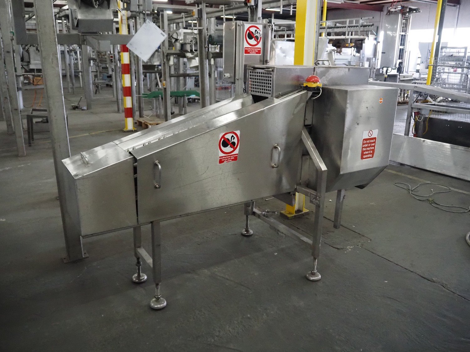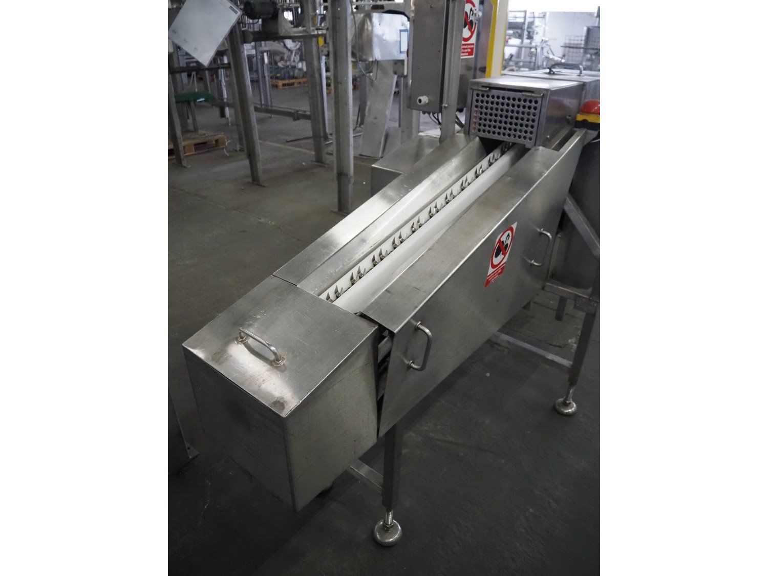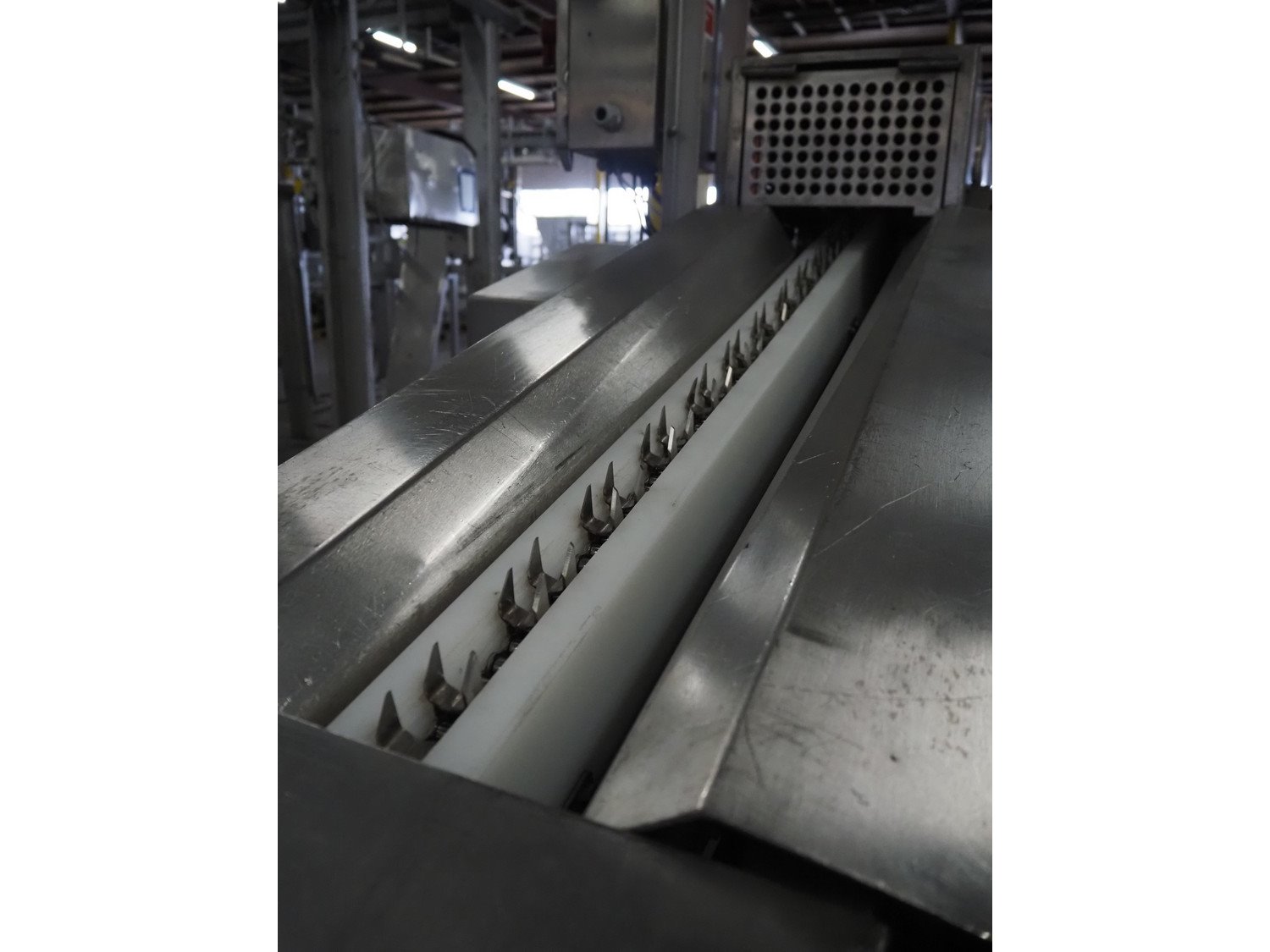 Wrightfield spare-rib cutter, serial number: 12849, s/s chain with dividers, divider height: 30 mm, distance between dividers: 50 mm, total dimensions: 2100 mm x 1000 mm x 1700 mm. Kavel locatie: Pastoorslaan 22, 2182 BX Hillegom, Nederland