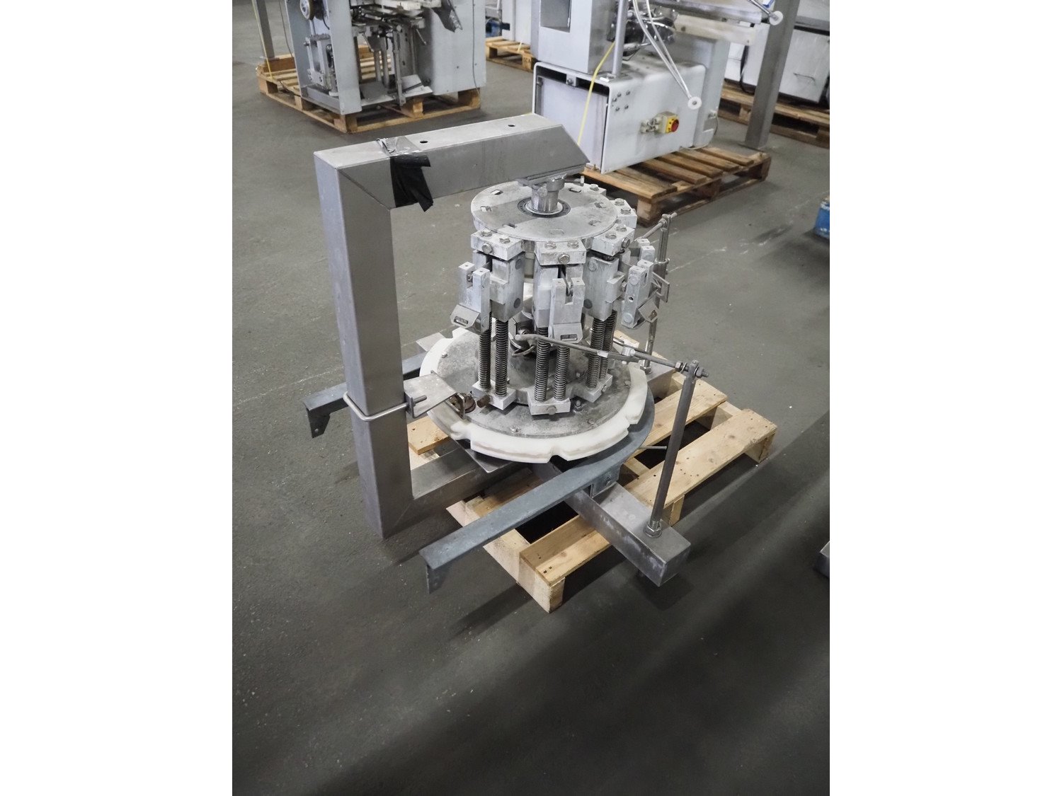 Meyn conveyor wheel base for weighing cell, dimensions: 1000 mm x 1000 mm x 930 mm. Kavel locatie: Pastoorslaan 22, 2182 BX Hillegom, Nederland