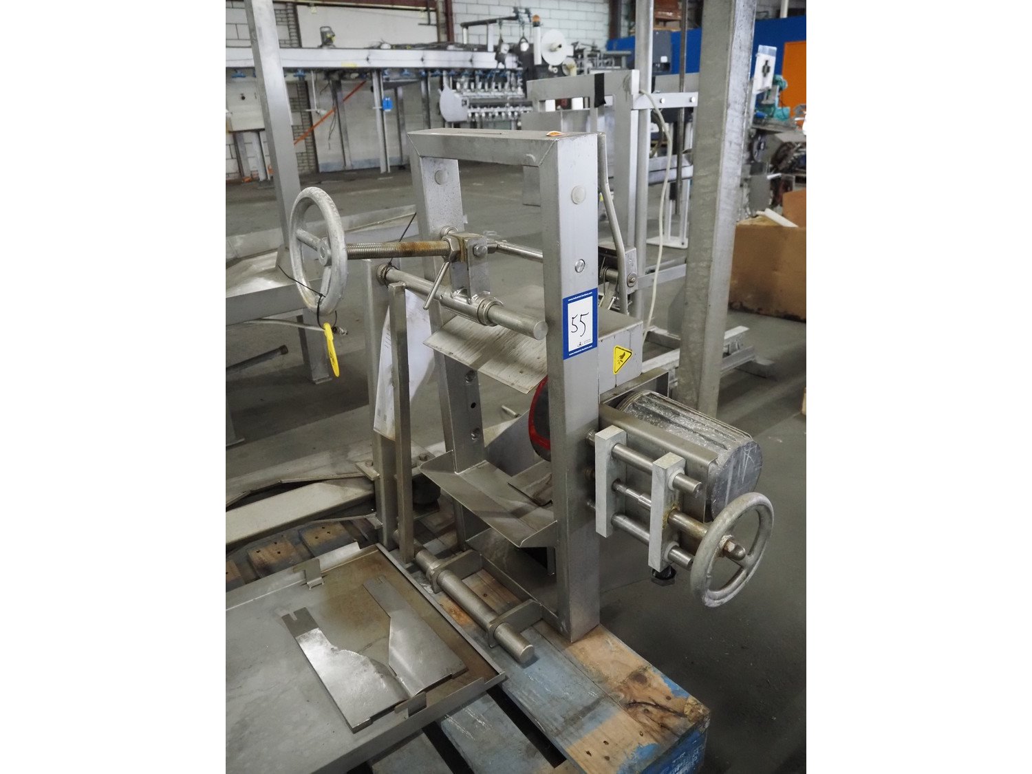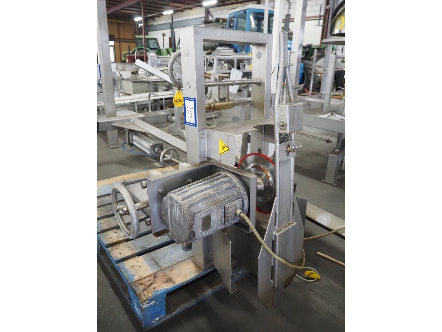 Meyn double blade saddle cutter, machine number: 2002040076, year of construction: 2002, dimensions: 1100 mm x 1200 mm x 2800 mm. Kavel locatie: Pastoorslaan 22, 2182 BX Hillegom, Nederland