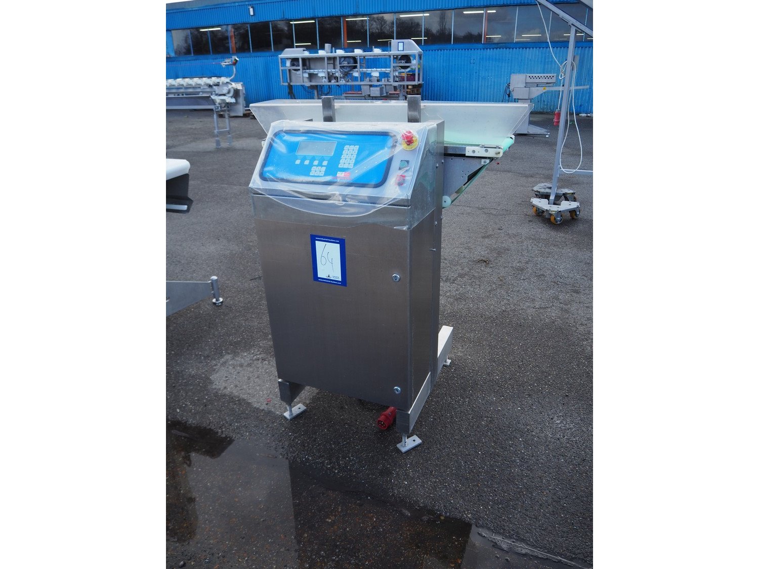 Scanvaegt part of grading line, model: Scangrader 7100, plastic belt, belt width: 275 mm, total dimensions: 1250 mm x 900 mm x 1400 mm. Kavel locatie: Pastoorslaan 22, 2182 BX Hillegom, Nederland