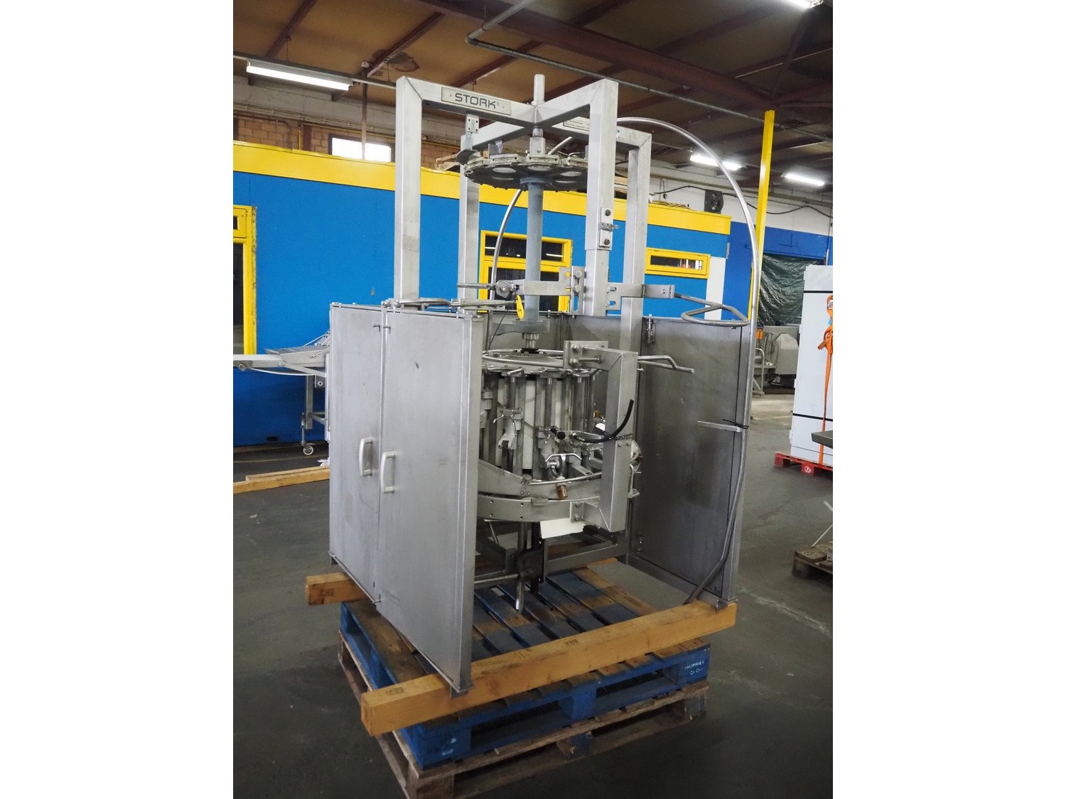 Stork B.V. neck breaker and skin slitter, number: 93-09-206, 12 stations, dimensions: 1300 mm x 1300 mm x 2500 mm. Kavel locatie: Pastoorslaan 22, 2182 BX Hillegom, Nederland
