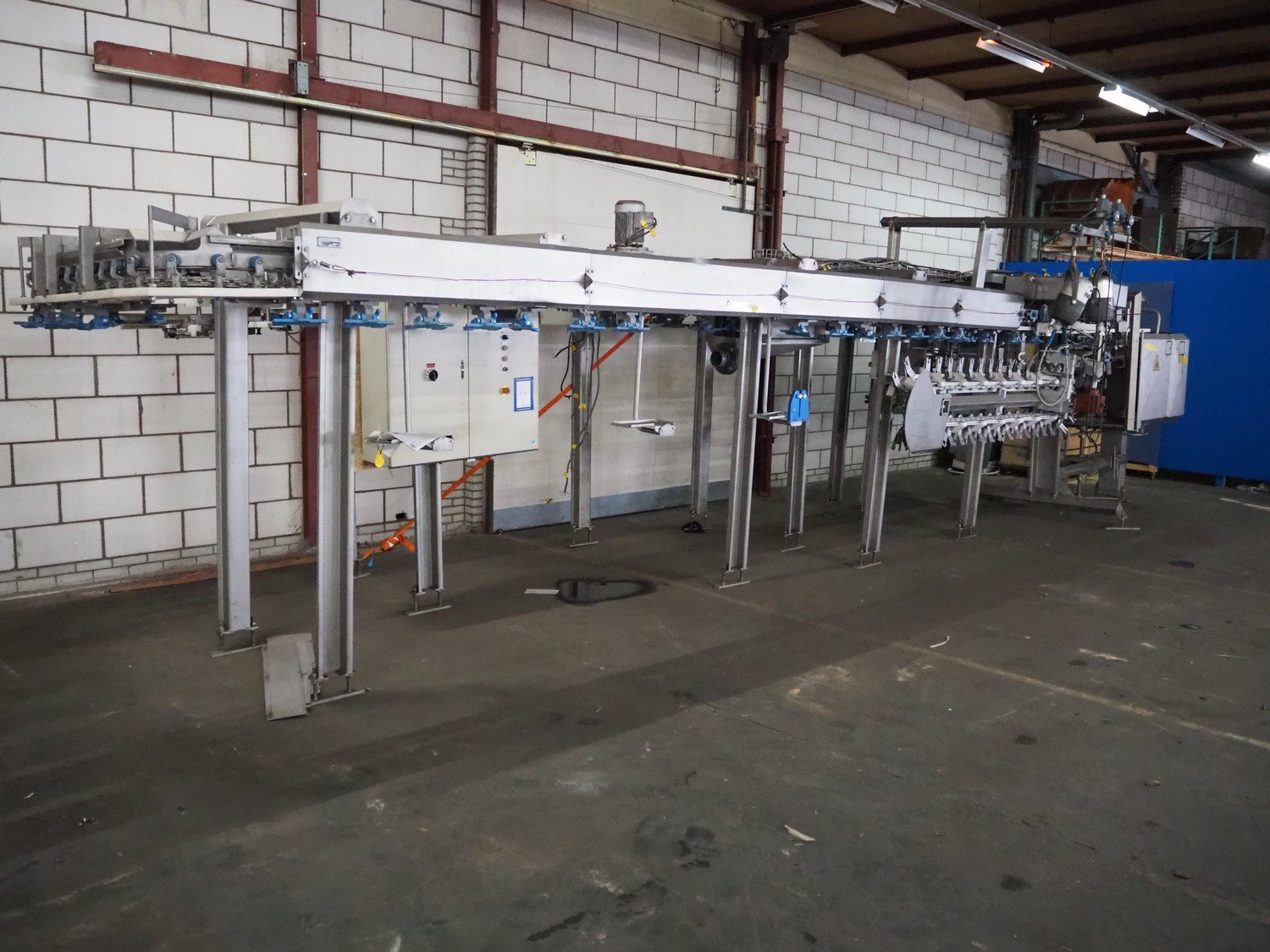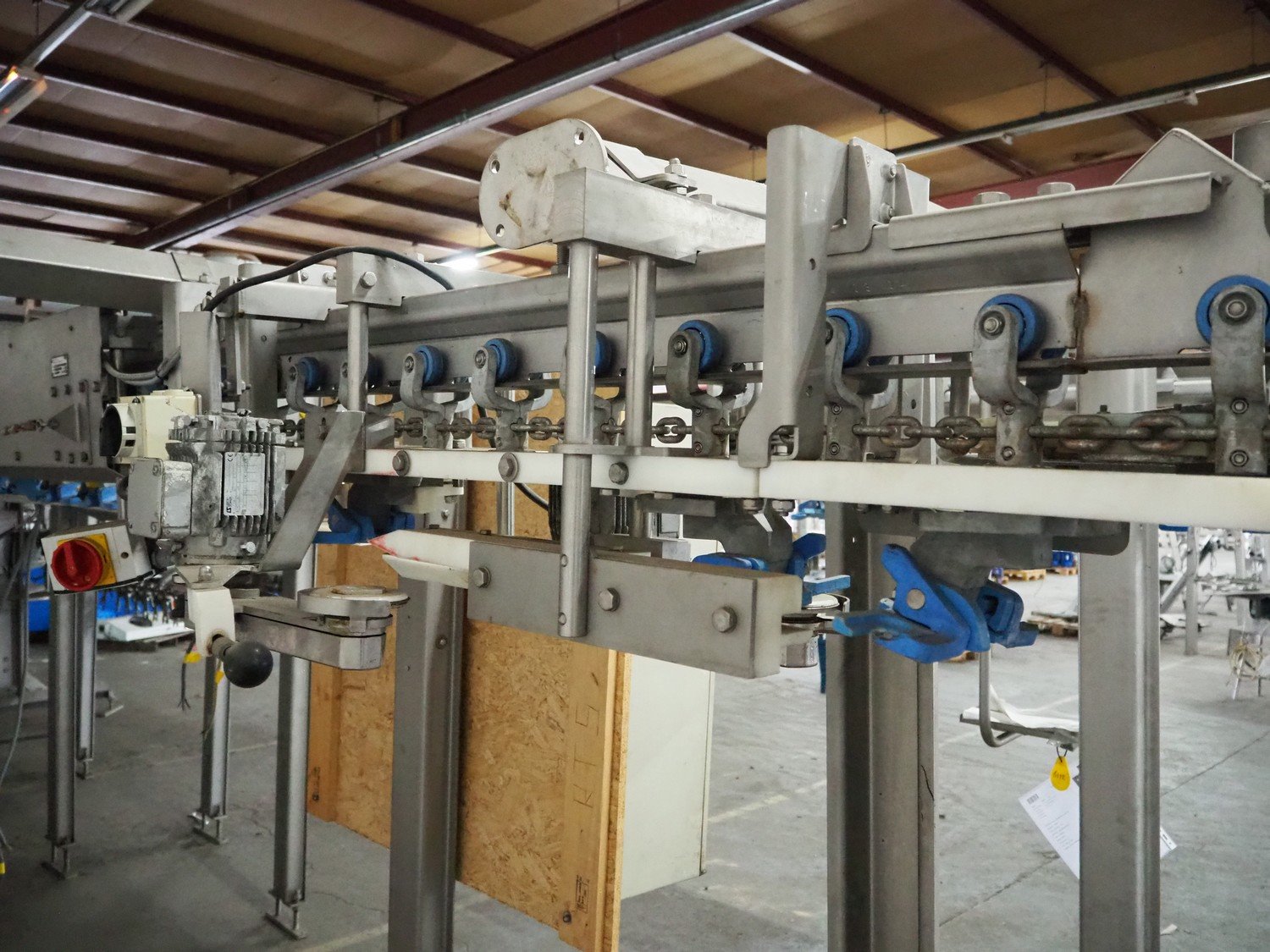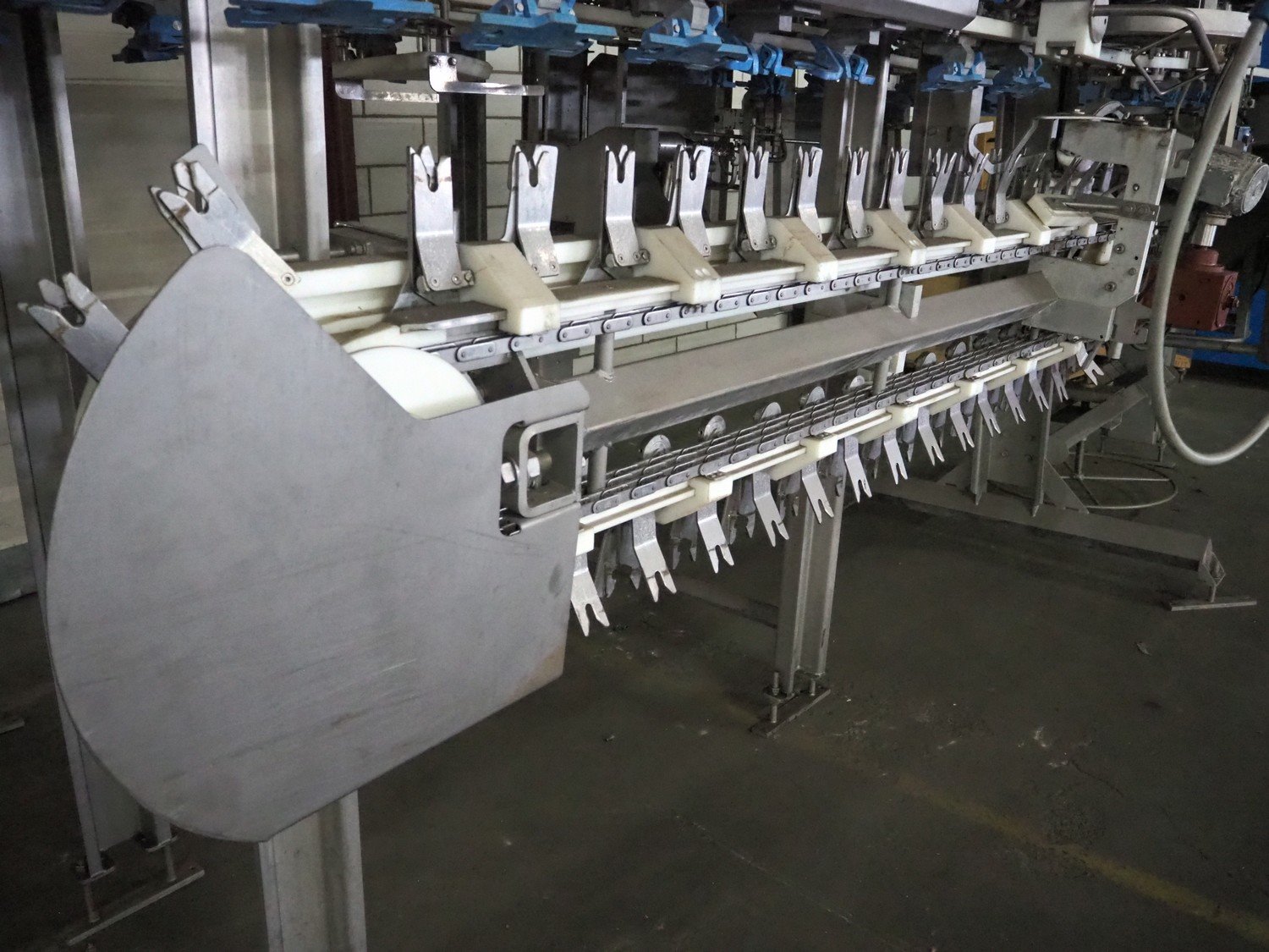 Stork B.V. leg deboning line, consisting of: Drumstick deboning module, type: 37112717, serial number: 10030871. Hanging station, type: 1711213, serial number: 10030864, whizzard knife. Thigh bone scraper, thigh meat harvesting module, type: 3711218, serial number: 10030872. Shackle washer, type: 1242700, processing station, type: 3711214, serial number: 10030869. Total dimensions: 10500 mm x 3200 mm x 2700 mm. Kavel locatie: Pastoorslaan 22, 2182 BX Hillegom, Nederland