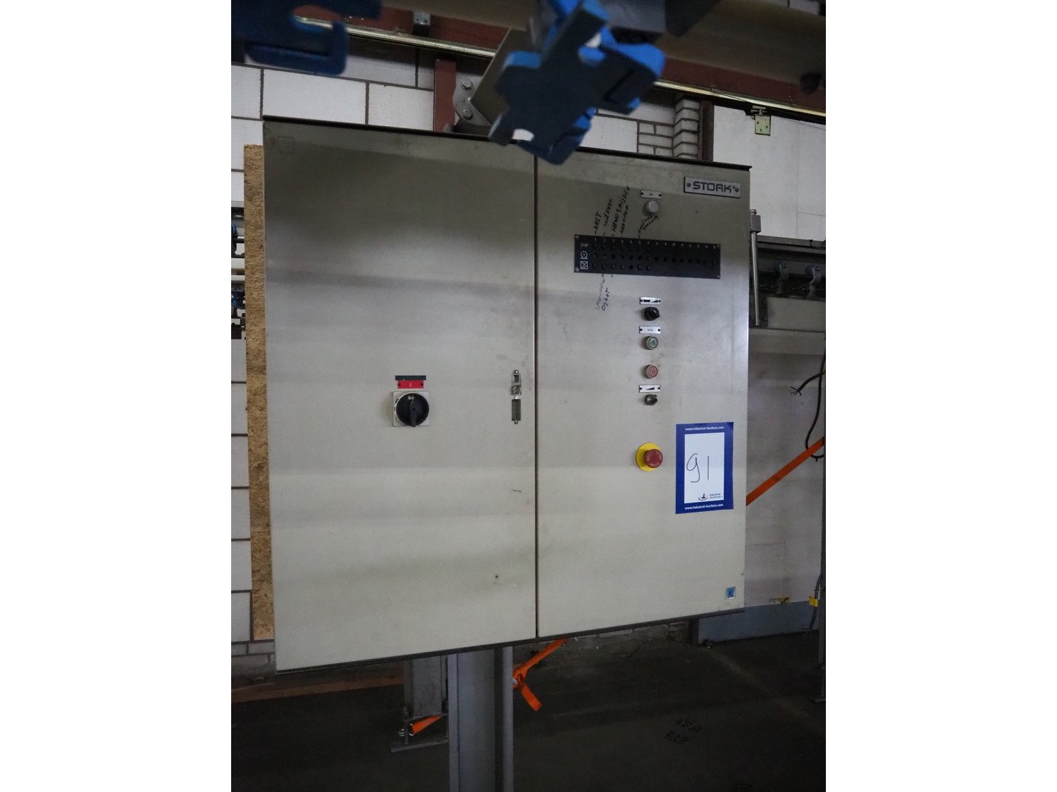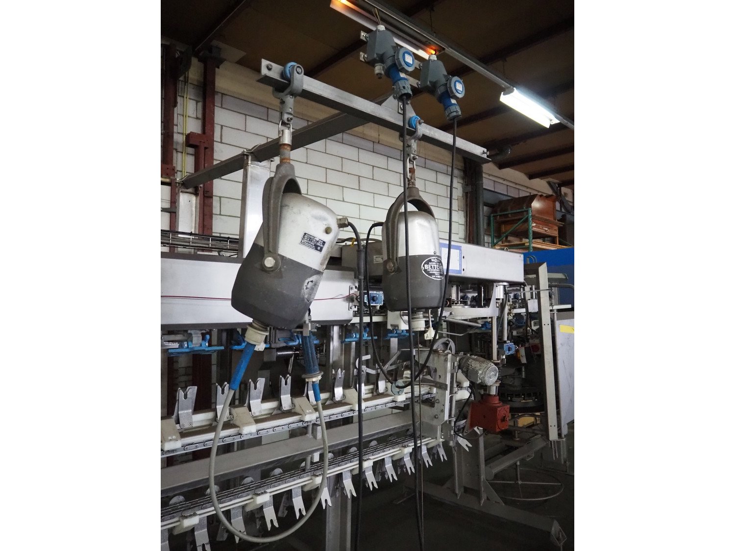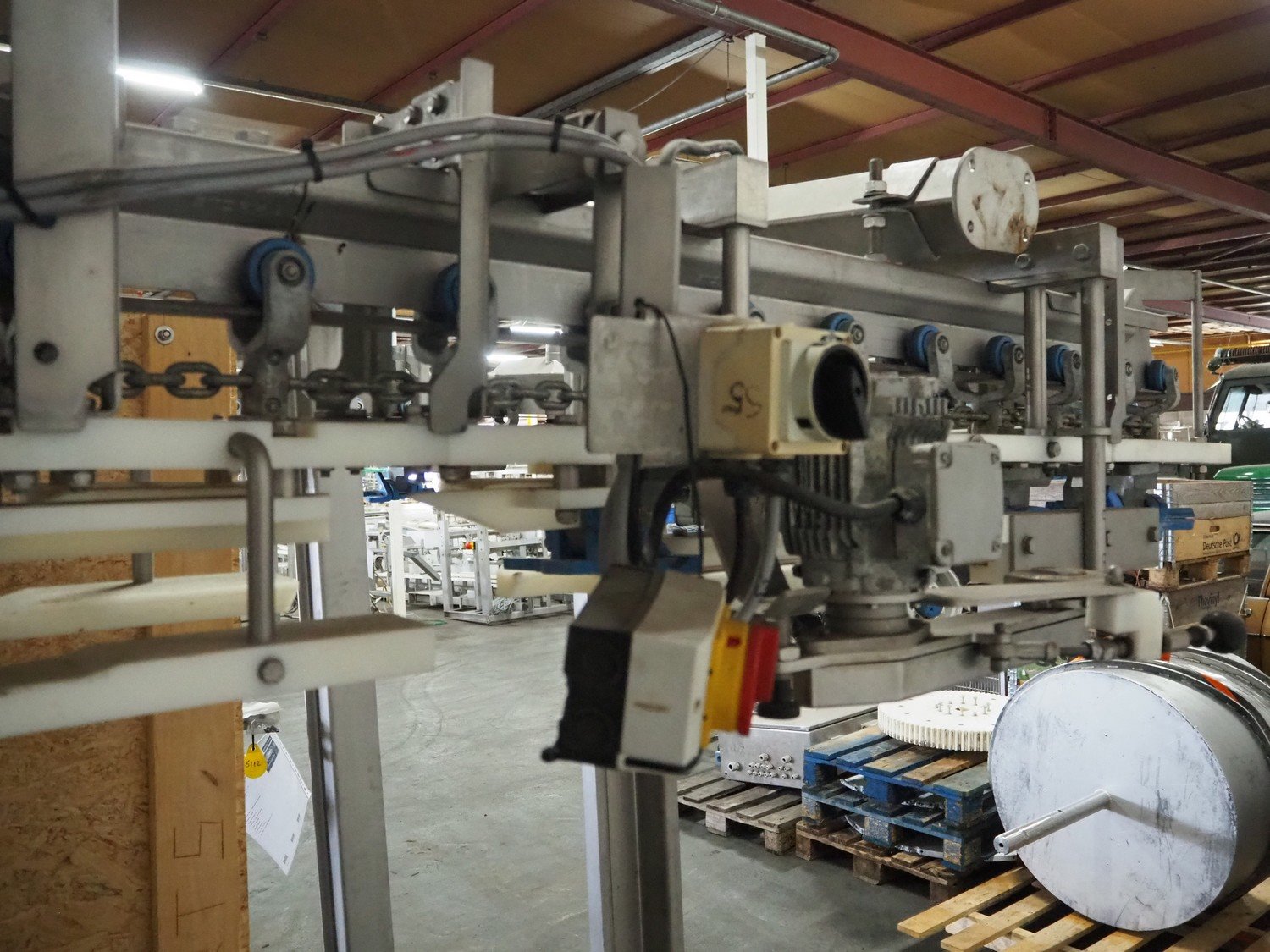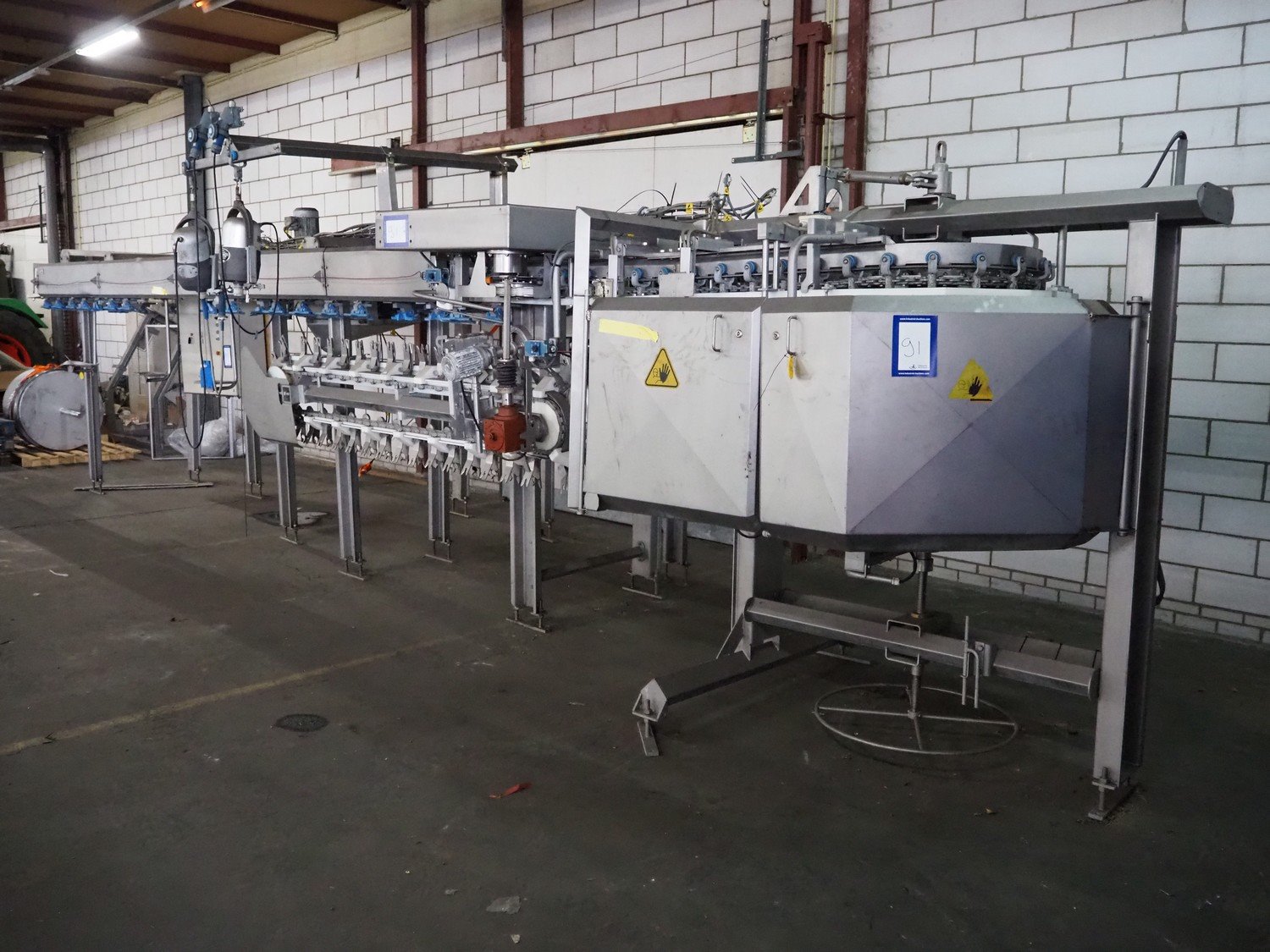 Stork B.V. leg deboning line, consisting of: Drumstick deboning module, type: 37112717, serial number: 10030871. Hanging station, type: 1711213, serial number: 10030864, whizzard knife. Thigh bone scraper, thigh meat harvesting module, type: 3711218, serial number: 10030872. Shackle washer, type: 1242700, processing station, type: 3711214, serial number: 10030869. Total dimensions: 10500 mm x 3200 mm x 2700 mm. Kavel locatie: Pastoorslaan 22, 2182 BX Hillegom, Nederland