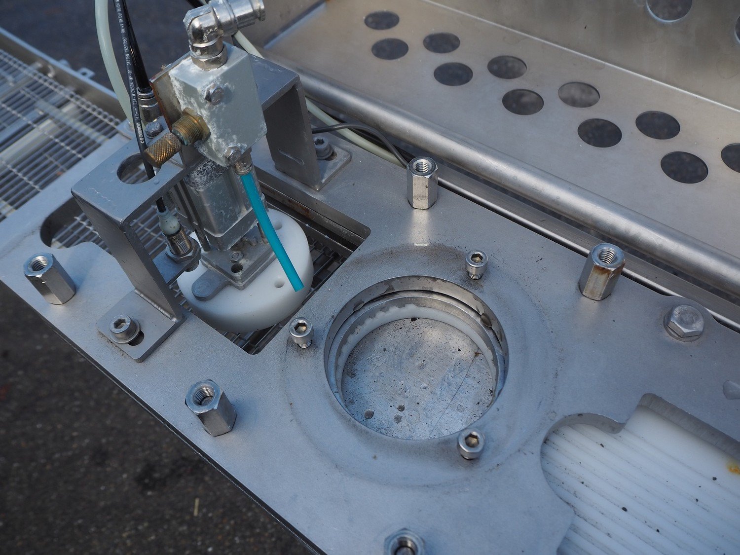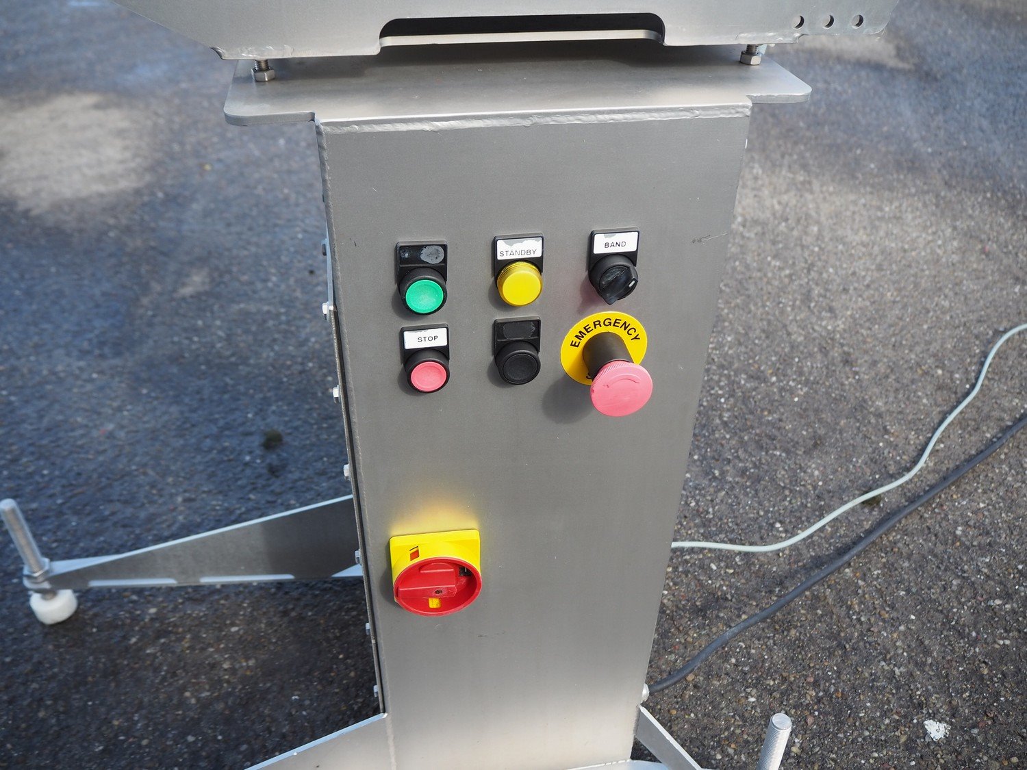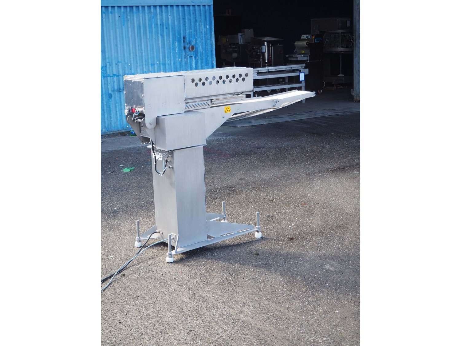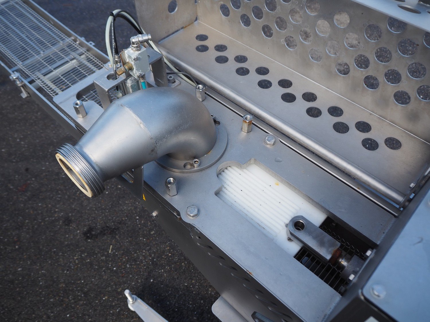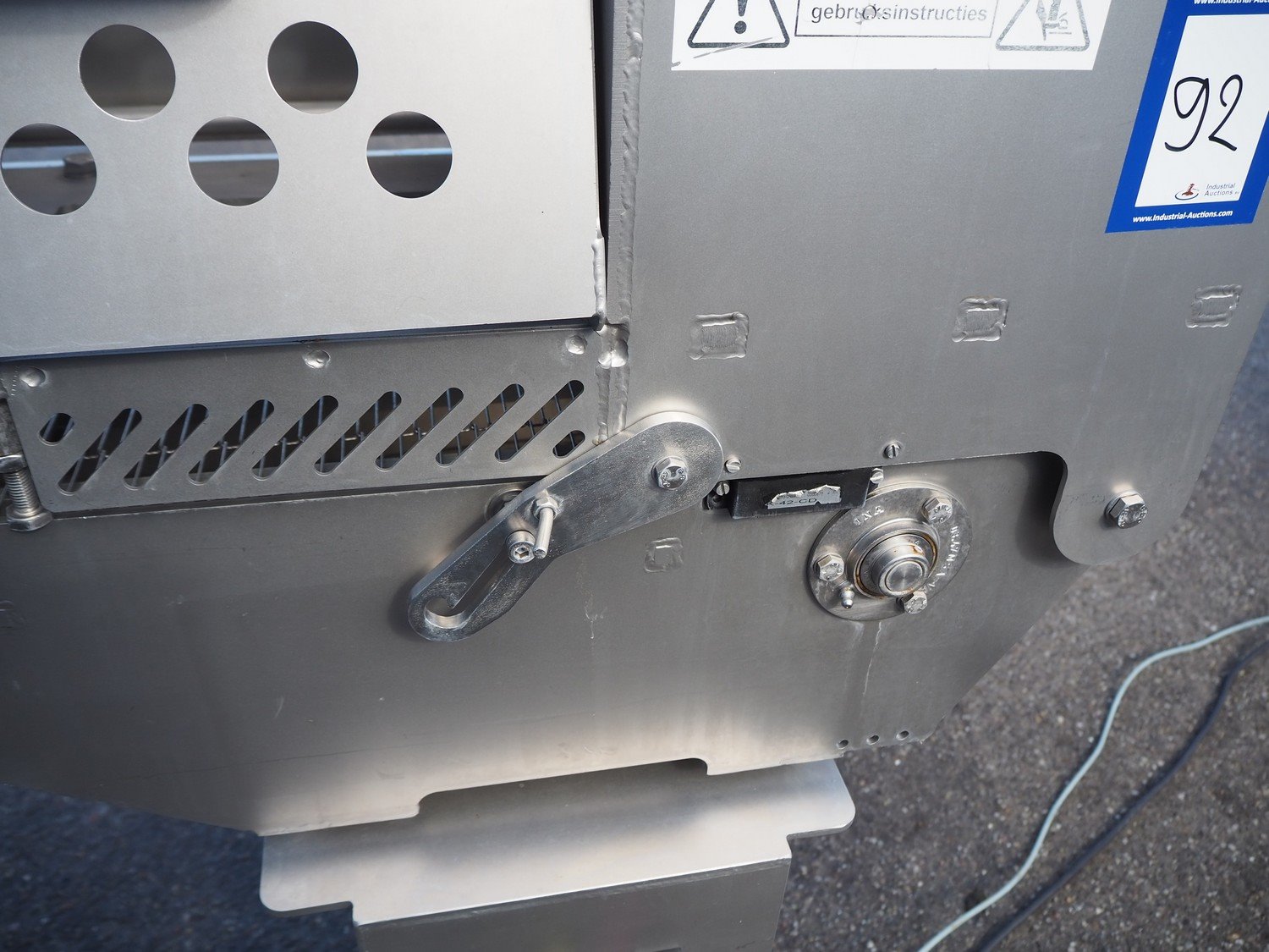 Dmatic hamburger forming machine, type: DBM/S3/501, year of construction: 2005/06, 400 V, 3 Ph, 50 Hz, 6 A, 0.18 kW, s/s mesh belt, belt width: 160 mm, form diameter: 85 mm, total dimensions: 1650 mm x 500 mm x 1300 mm. Kavel locatie: Pastoorslaan 22, 2182 BX Hillegom, Nederland