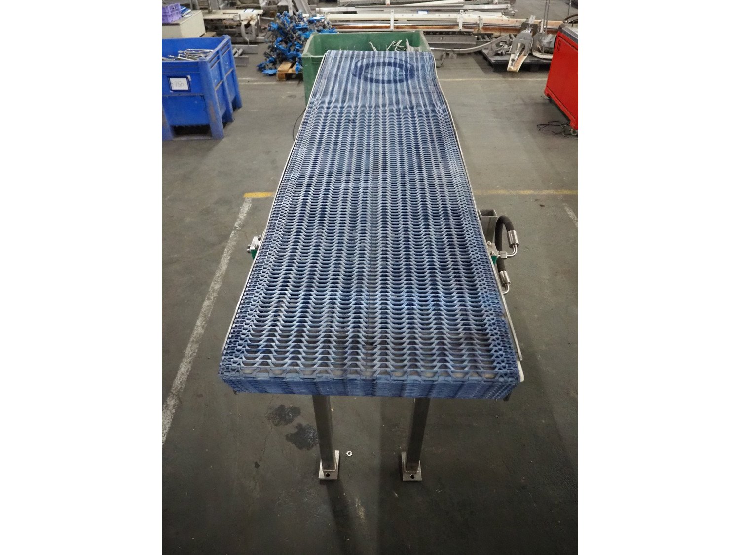 Transport belt, s/s frame, plastic mesh belt, belt width: 500 mm, total dimensions: 1960 mm x 650 mm x 1200 mm. Kavel locatie: Pastoorslaan 22, 2182 BX Hillegom, Nederland