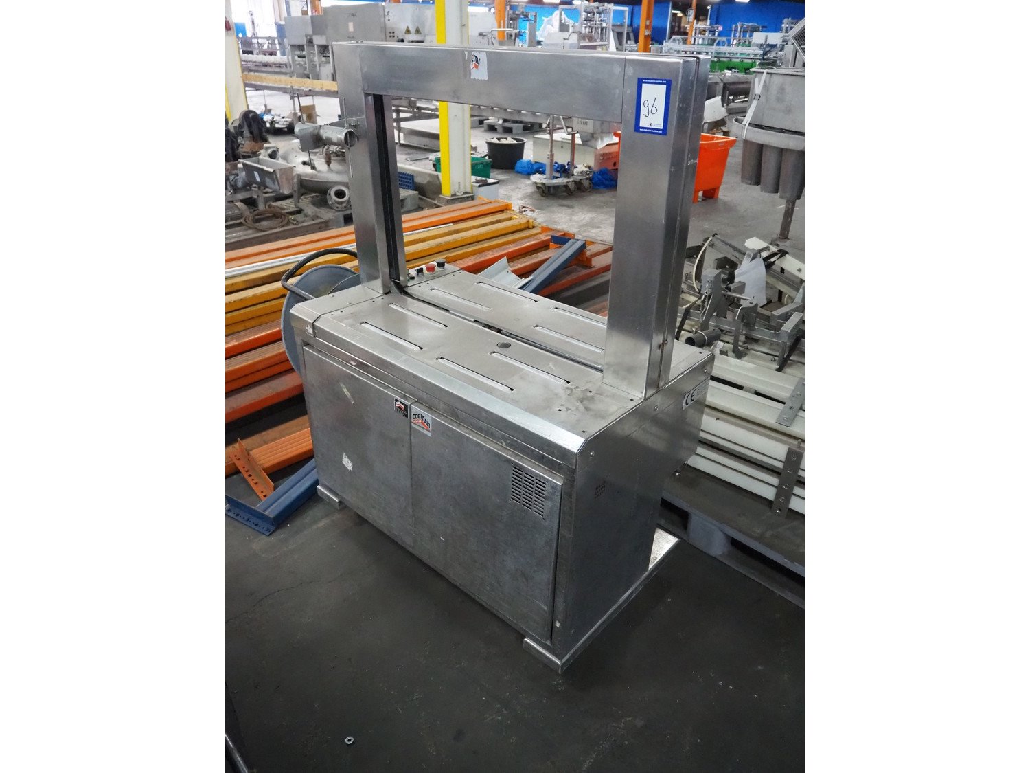 Coeman mobile strapping machine, model: EXS-506S, factory number: 9812162, 380 V, 3 Ph, 50 Hz, clearance: 850 mm x 600 mm, total dimensions: 1450 mm x 650 mm x 1550 mm. Kavel locatie: Pastoorslaan 22, 2182 BX Hillegom, Nederland