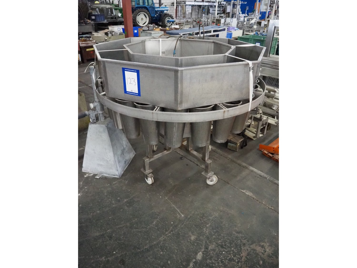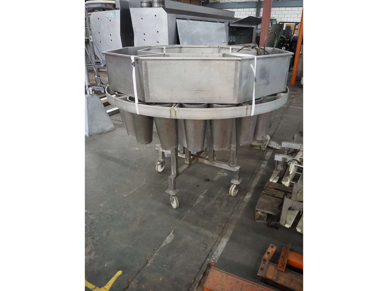 Halal rotating blood cones, 20 pockets, pocket diameter: 195 mm, total dimensions: Ø 1750 mm x 1420 mm. Kavel locatie: Pastoorslaan 22, 2182 BX Hillegom, Nederland