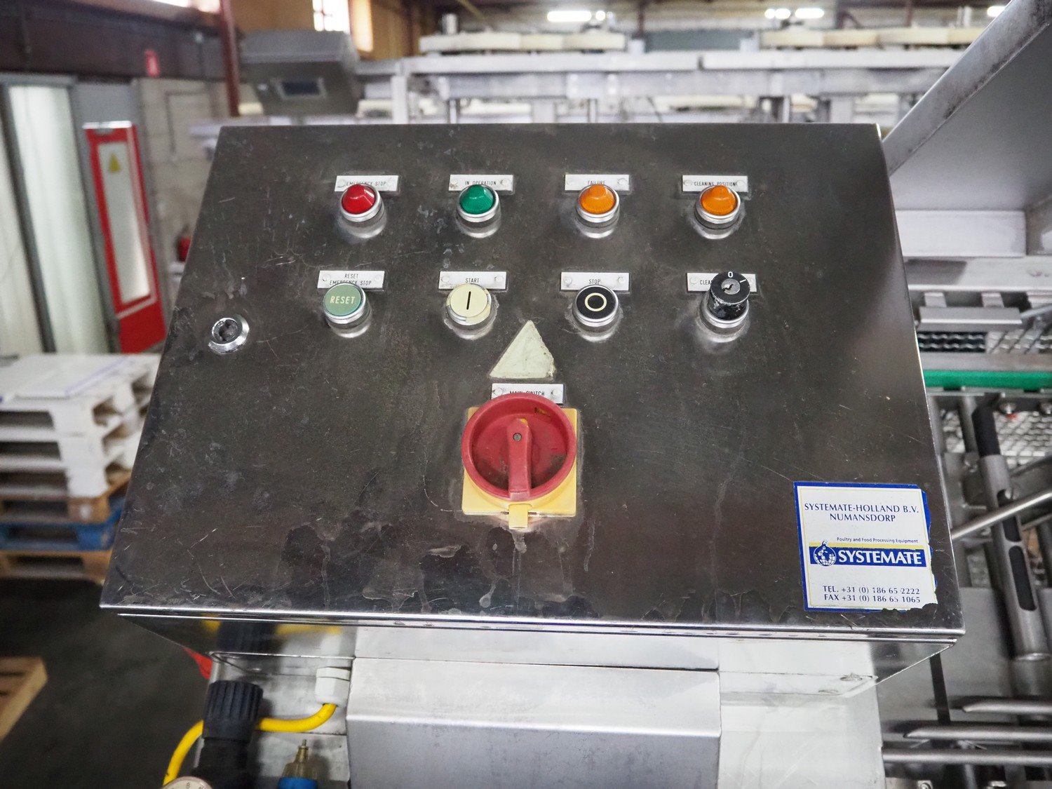Systemate thigh deboner, model: D 90, 28 stations, dimensions: 2700 mm x 1000 mm x 2270 mm. Overhauled. Without control panel. Kavel locatie: Pastoorslaan 22, 2182 BX Hillegom, Nederland