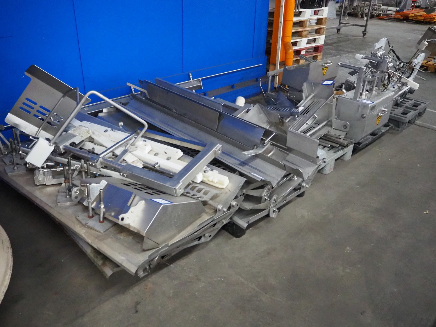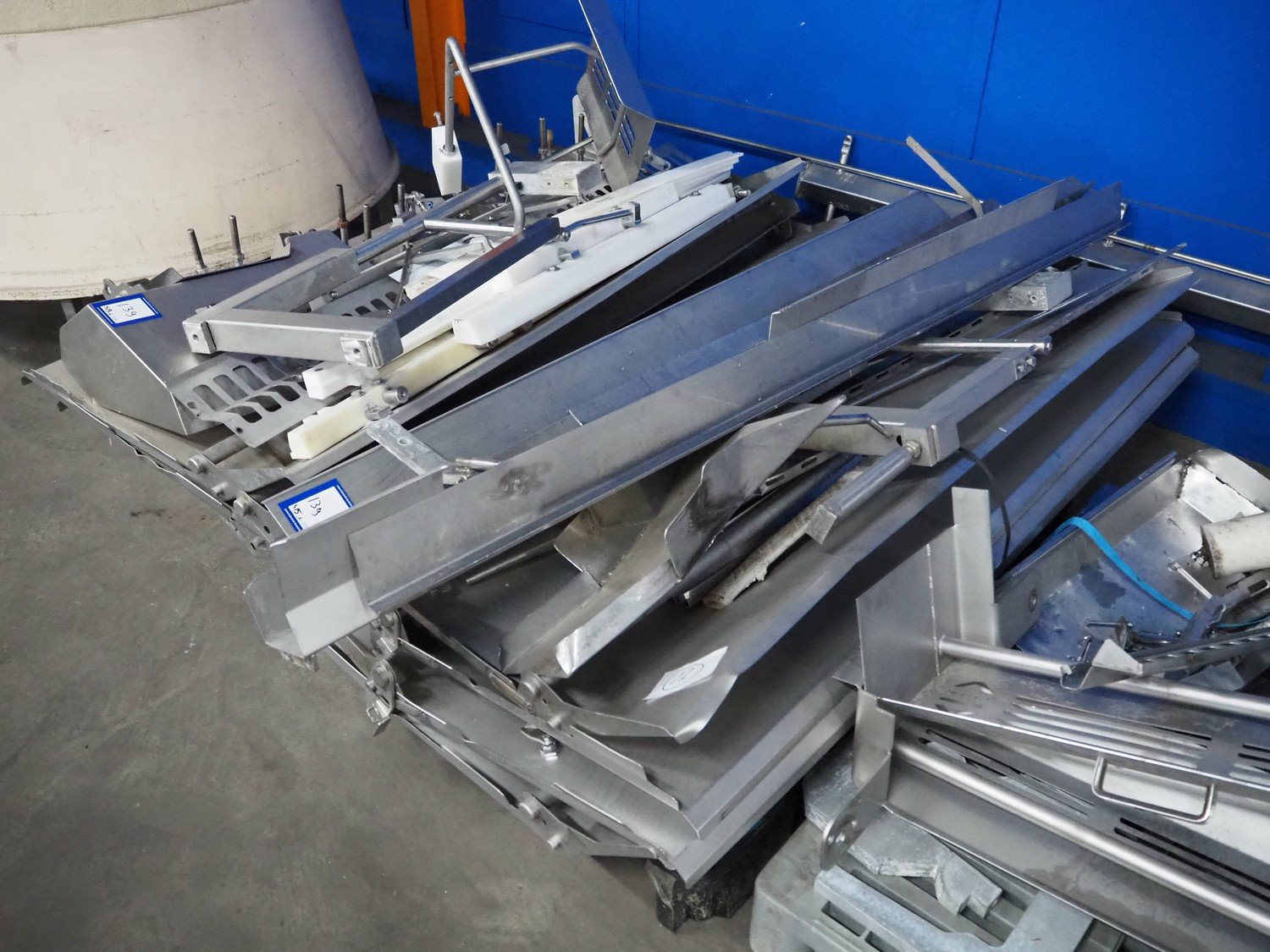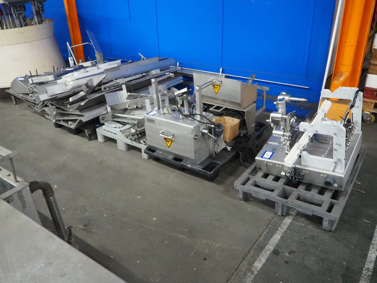 Stork B.V. 5 pallets with various parts for cut of line, consisting of: AMF-BX tendon cutting module, model: XB H3454, type: 1250305, serial number: 10123375, year of construction: 2014 4 pallets of s/s parts, dimensions: (2x) 1200 mm x 800 mm x 800 mm, (1x) 1200 mm x 800 mm x 550 mm, (2x) 2300 mm x 900 mm x 600 mm. Kavel locatie: Pastoorslaan 22, 2182 BX Hillegom, Nederland