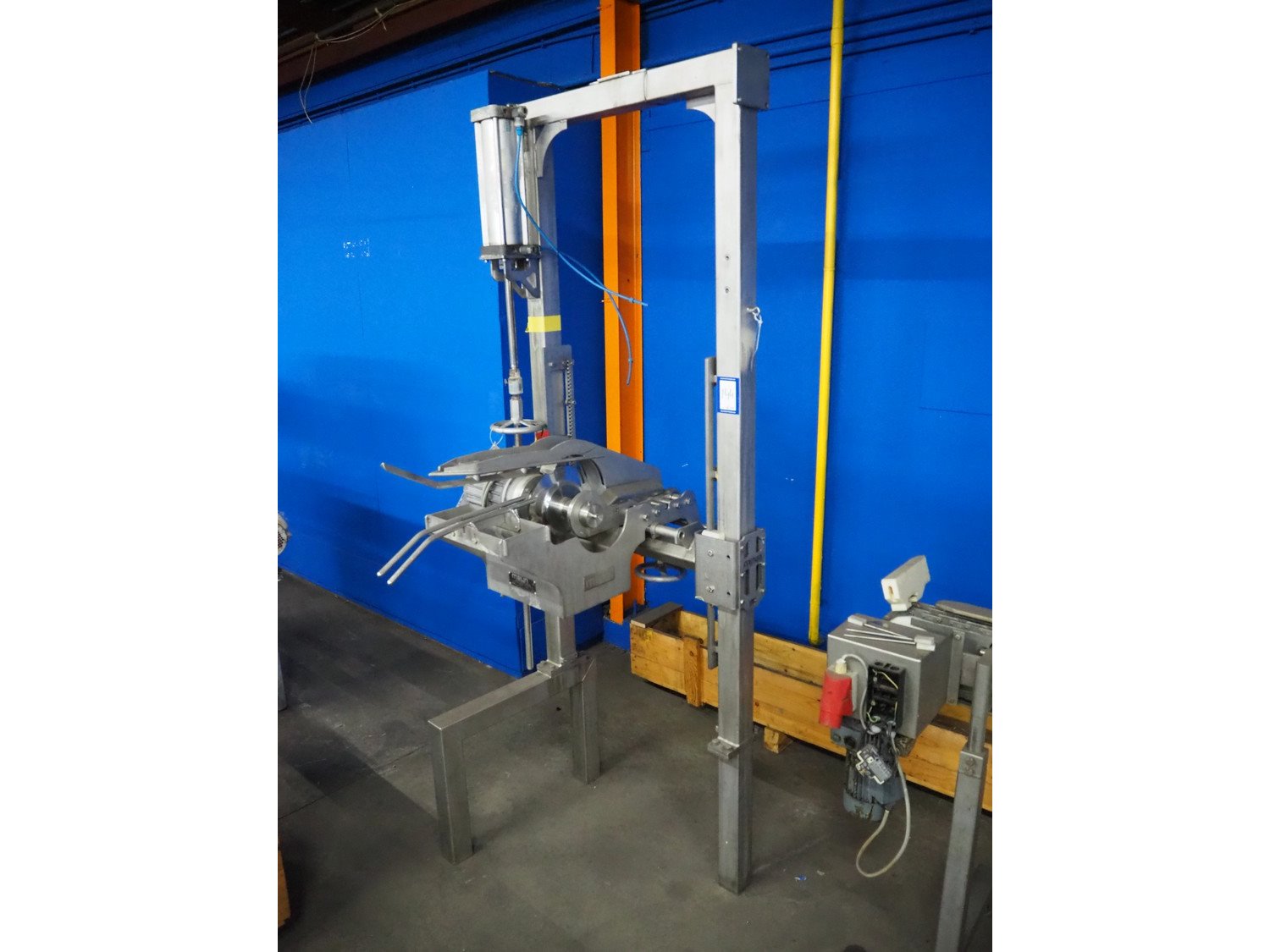 Meyn double blade saddle cutter, machine number: 2001090090, year of construction: 2001, dimensions: 1000 mm x 1000 mm x 2500 mm. Kavel locatie: Pastoorslaan 22, 2182 BX Hillegom, Nederland