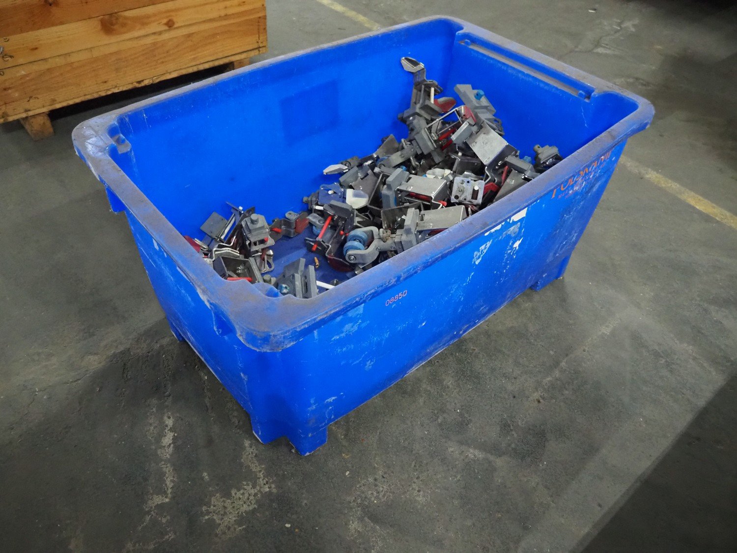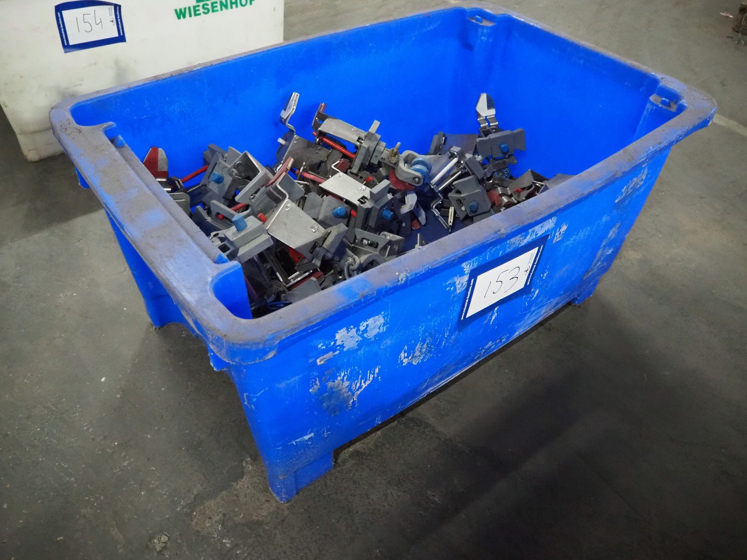 Plastic crate with large amount of Stork B.V. intestine shackles, dimensions: 1200 mm x 870 mm x 570 mm. Kavel locatie: Pastoorslaan 22, 2182 BX Hillegom, Nederland