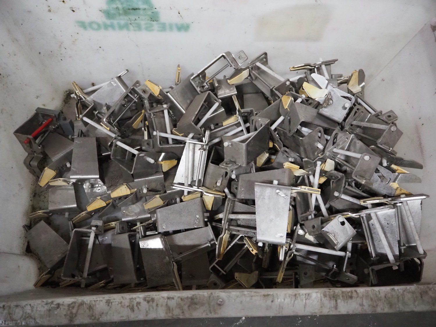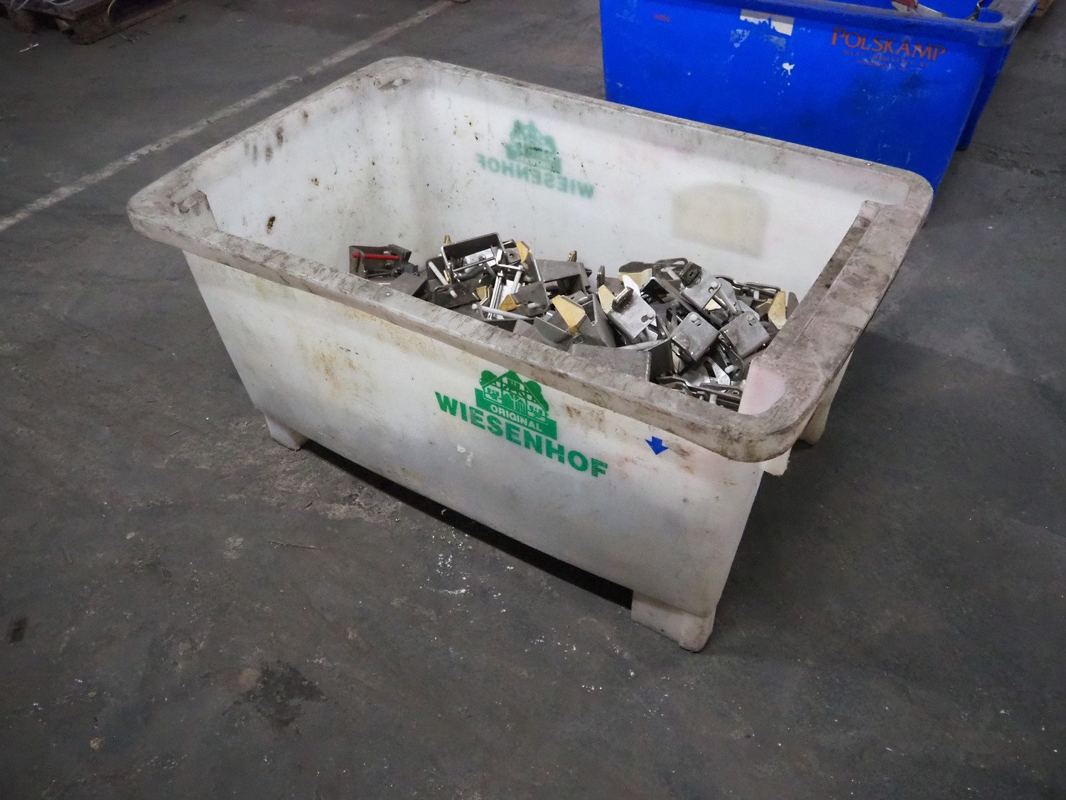 Plastic crate with large amount of Stork B.V. intestine shackles, dimensions: 1200 mm x 870 mm x 570 mm. Kavel locatie: Pastoorslaan 22, 2182 BX Hillegom, Nederland