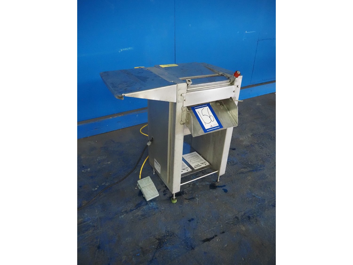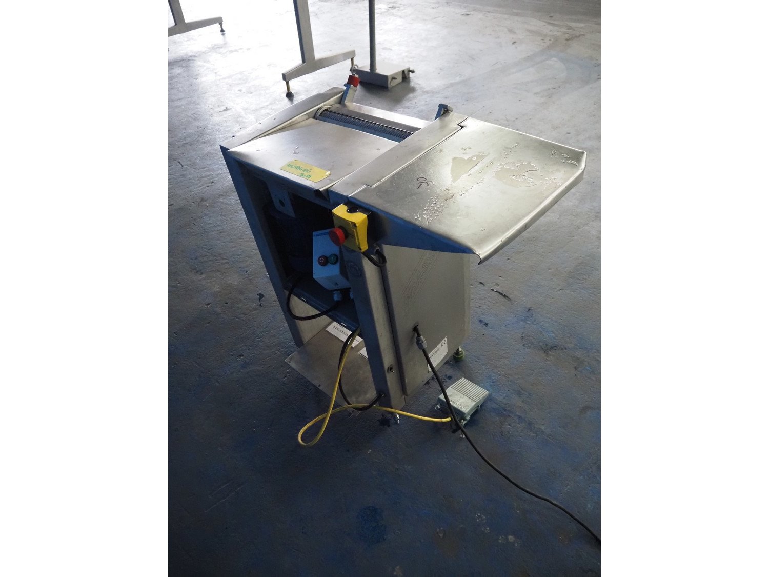 Grasselli skinning machine, model: C35-P, serial number: R190097P184, year of construction: 2001, 415 V, 3 Ph, 50 Hz, 1.8 A, working width: 340 mm, total dimensions: 850 mm x 570 mm x 940 mm. Kavel locatie: Pastoorslaan 22, 2182 BX Hillegom, Nederland