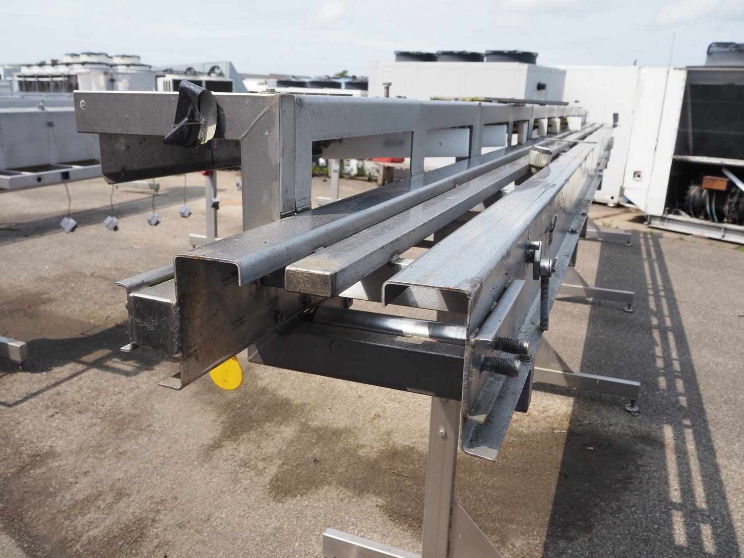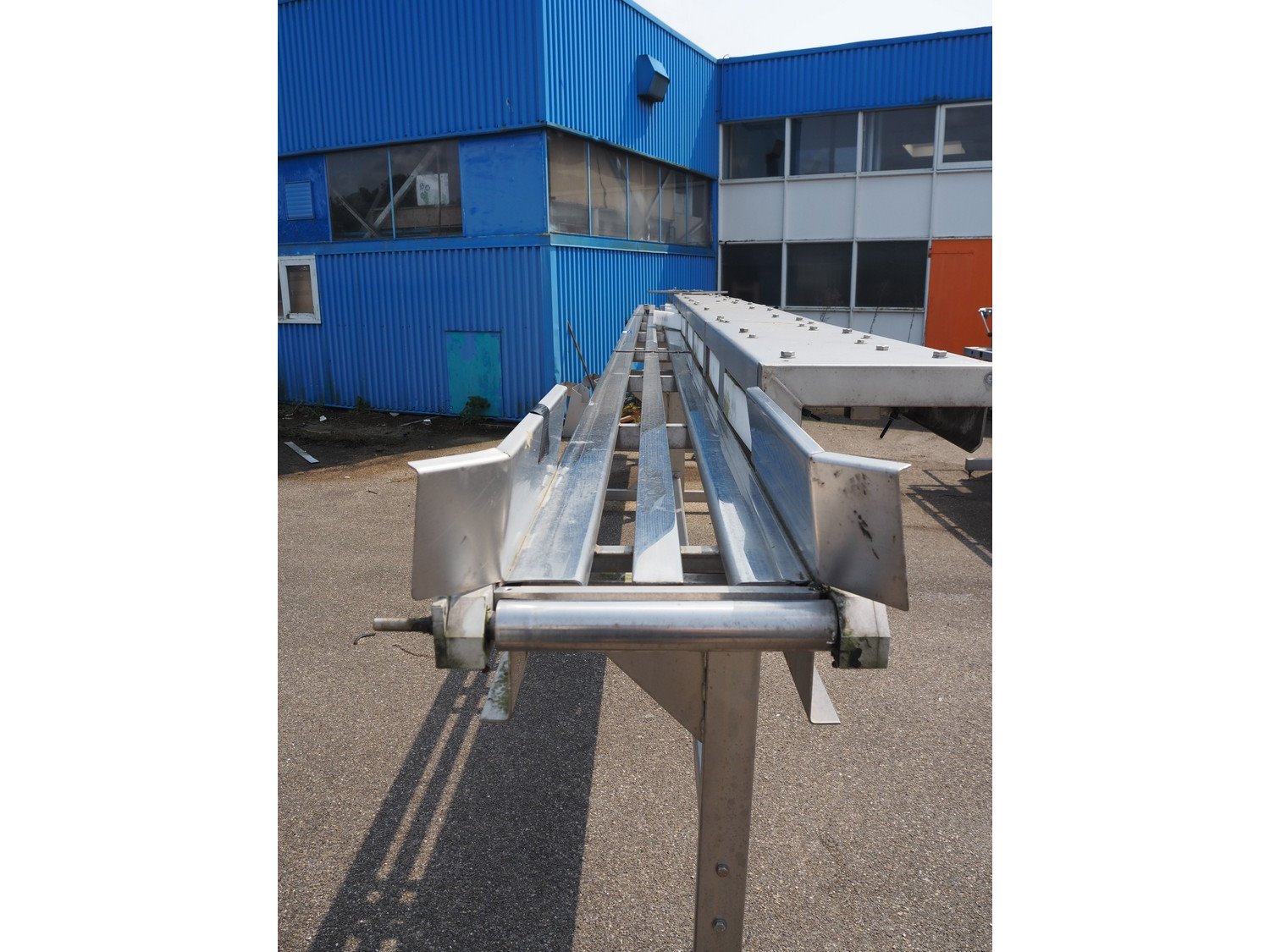 S/s sorting belt, dimensions: 7700 mm x 1000 mm x 1600 mm. Incomplete. Kavel locatie: Pastoorslaan 22, 2182 BX Hillegom, Nederland
