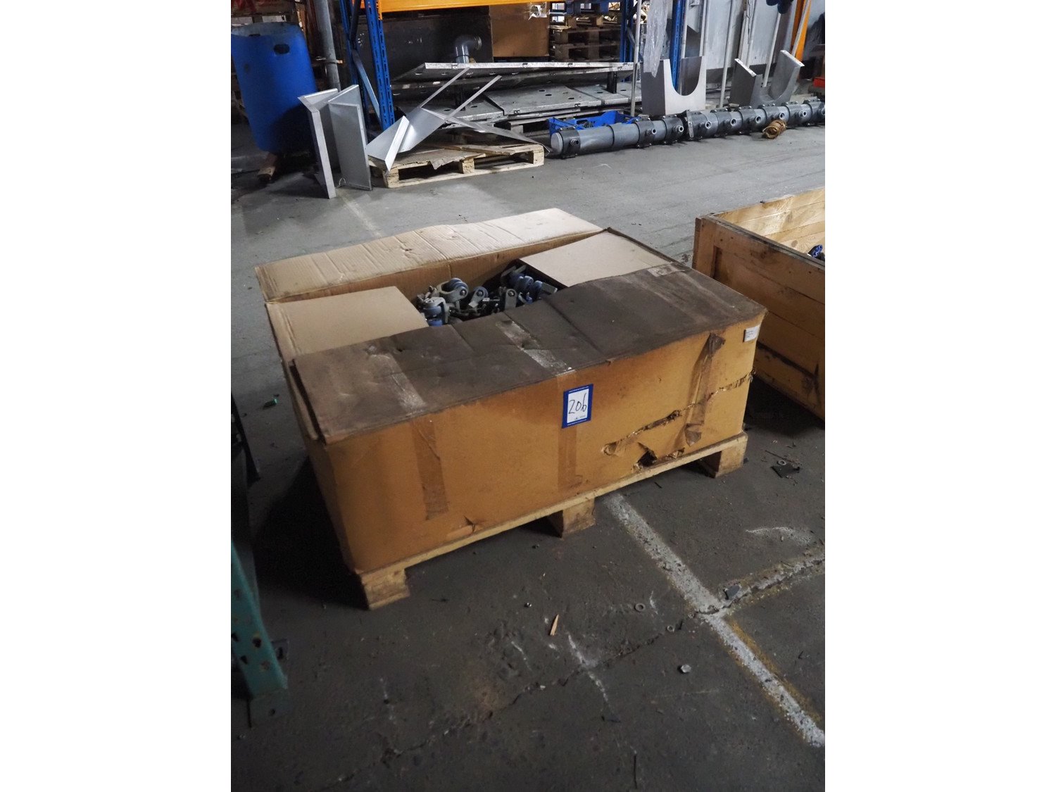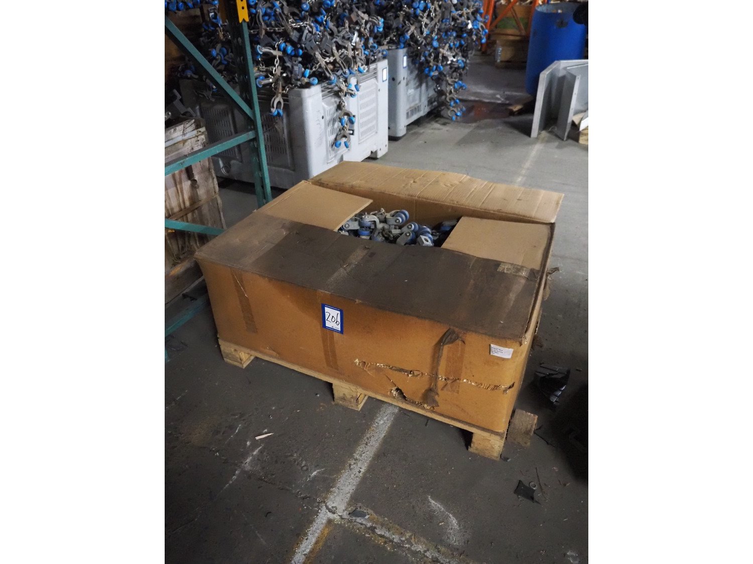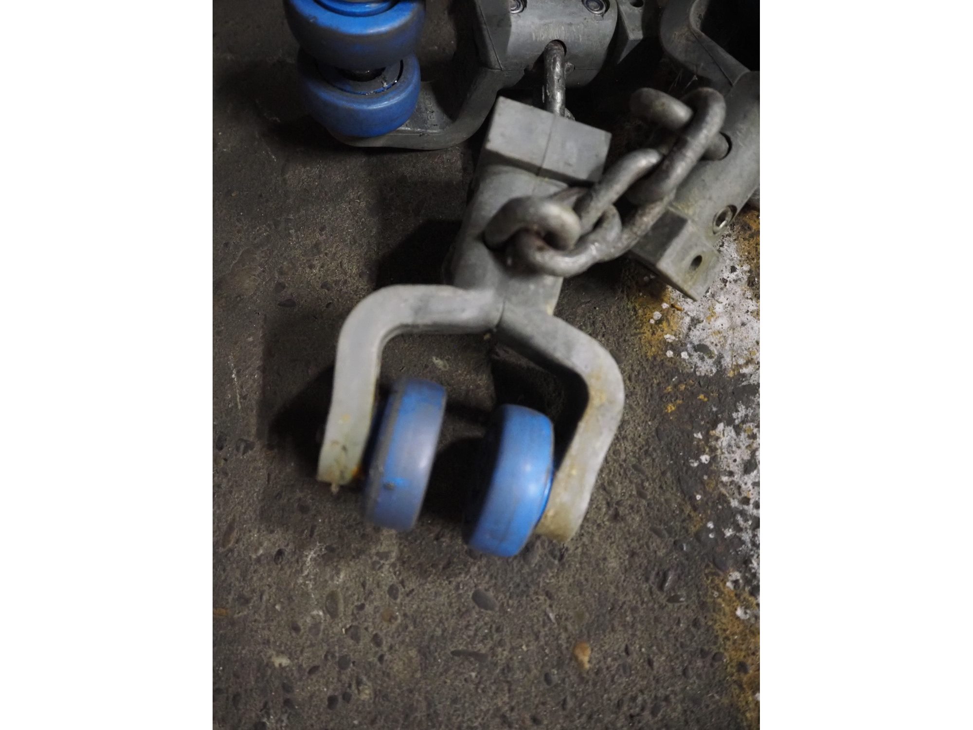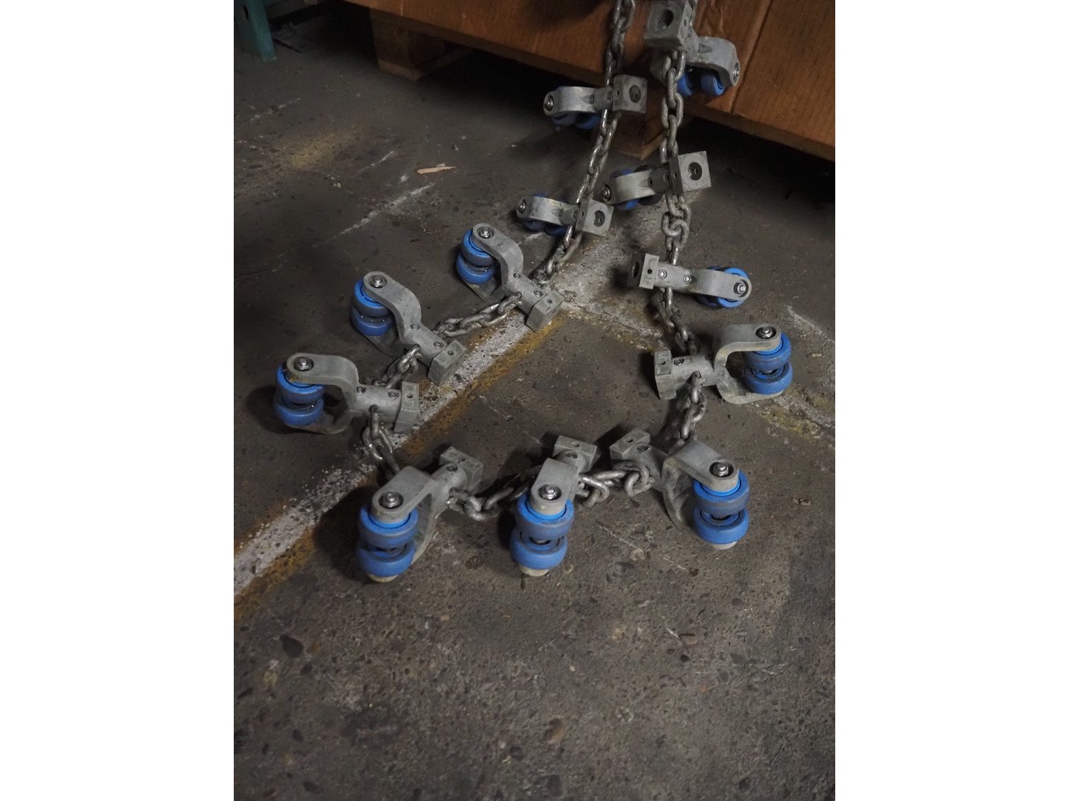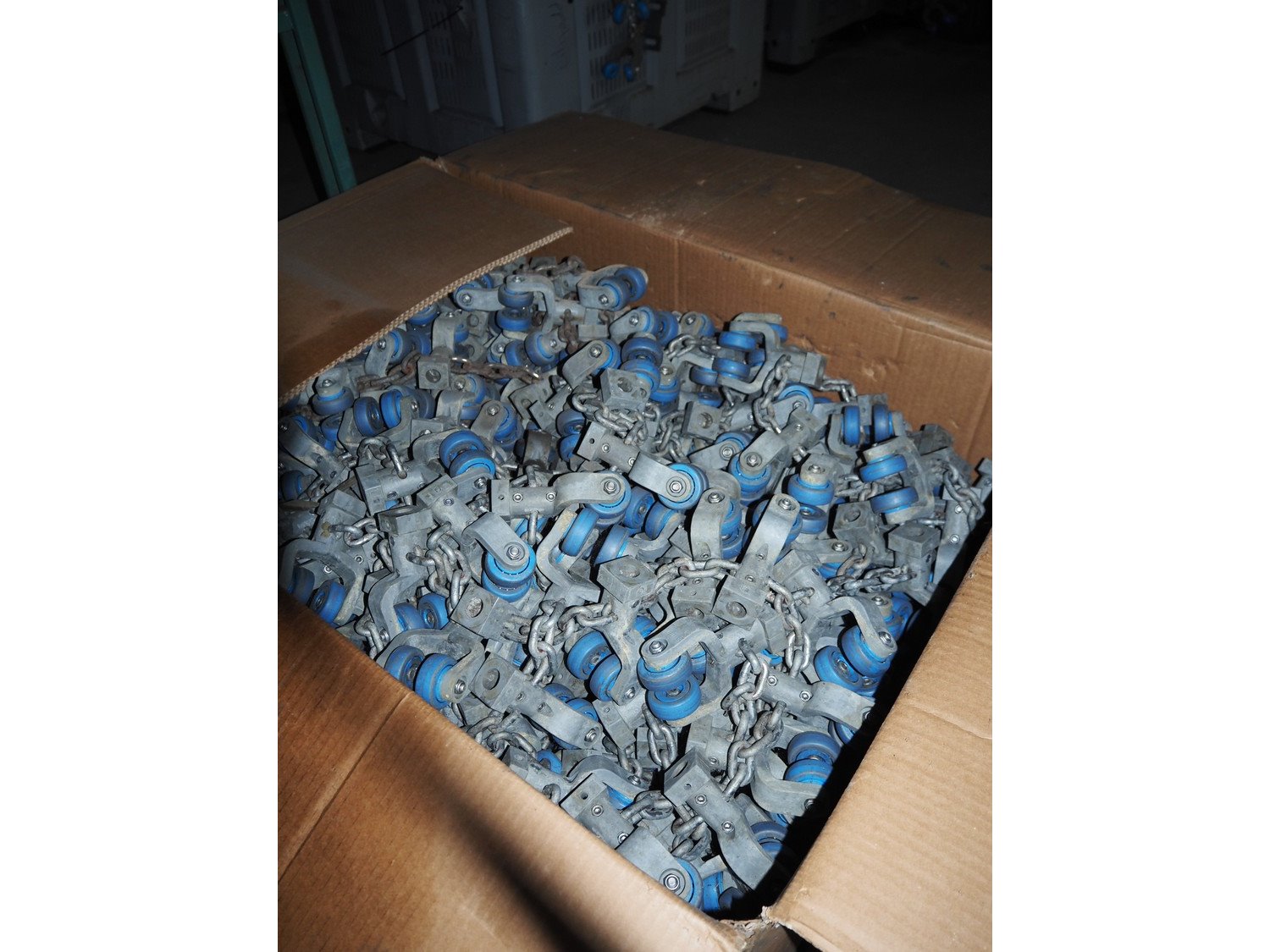 Box with Stork B.V. trolleys on chain for tube track, dimensions: 1200 mm x 800 mm x 700 mm. Kavel locatie: Pastoorslaan 22, 2182 BX Hillegom, Nederland