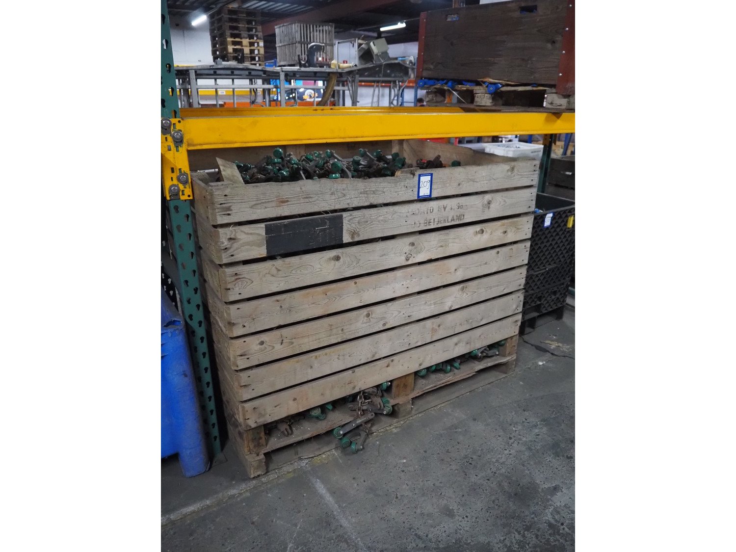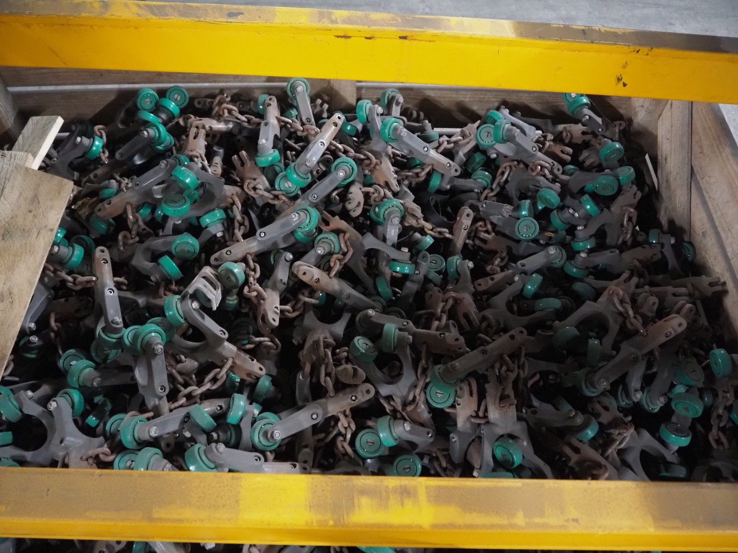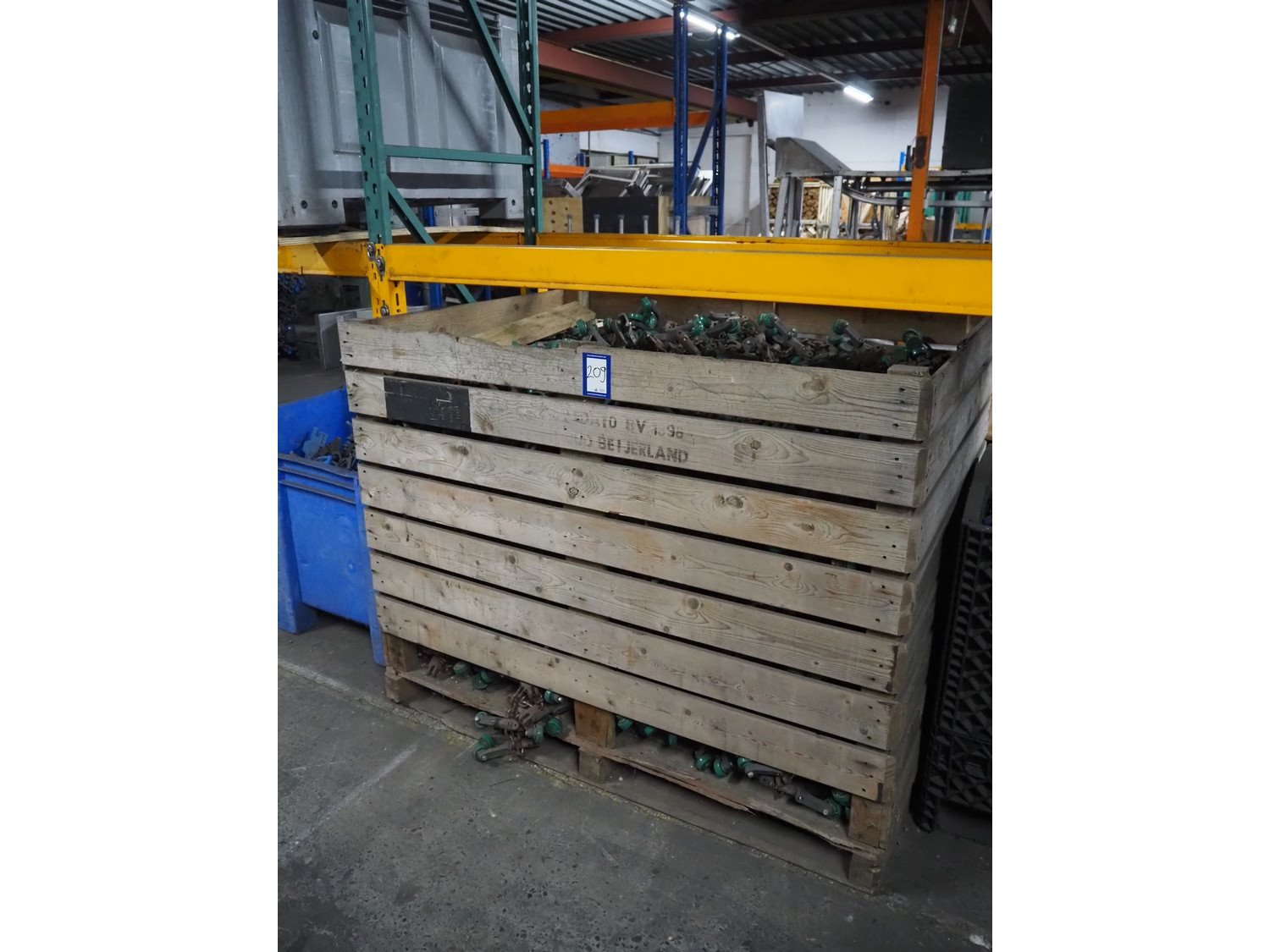 Pallet box with Meyn trolleys on chain for tube track, dimensions: 1600 mm x 1200 mm x 1250 mm. Kavel locatie: Pastoorslaan 22, 2182 BX Hillegom, Nederland