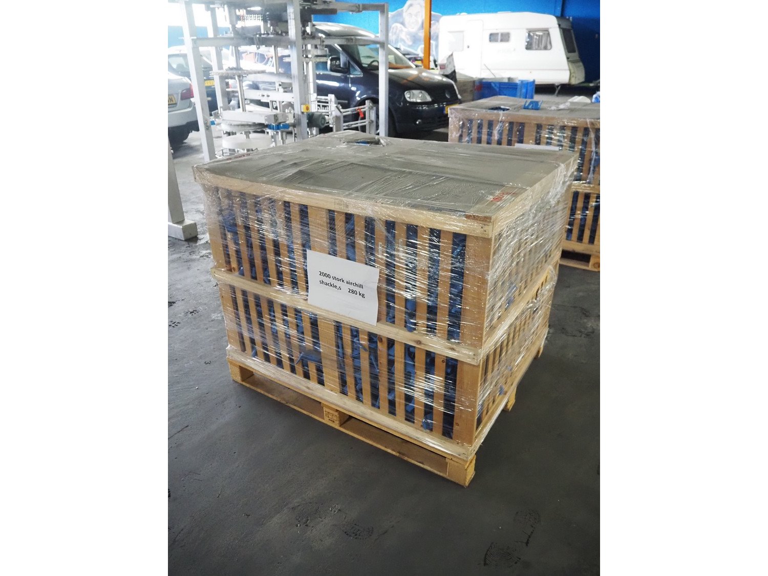 Crate with large amount of plastic Stork B.V. shackles, 2000 pieces, dimensions: 1200 mm x 1000 mm x 1000 mm. Kavel locatie: Pastoorslaan 22, 2182 BX Hillegom, Nederland