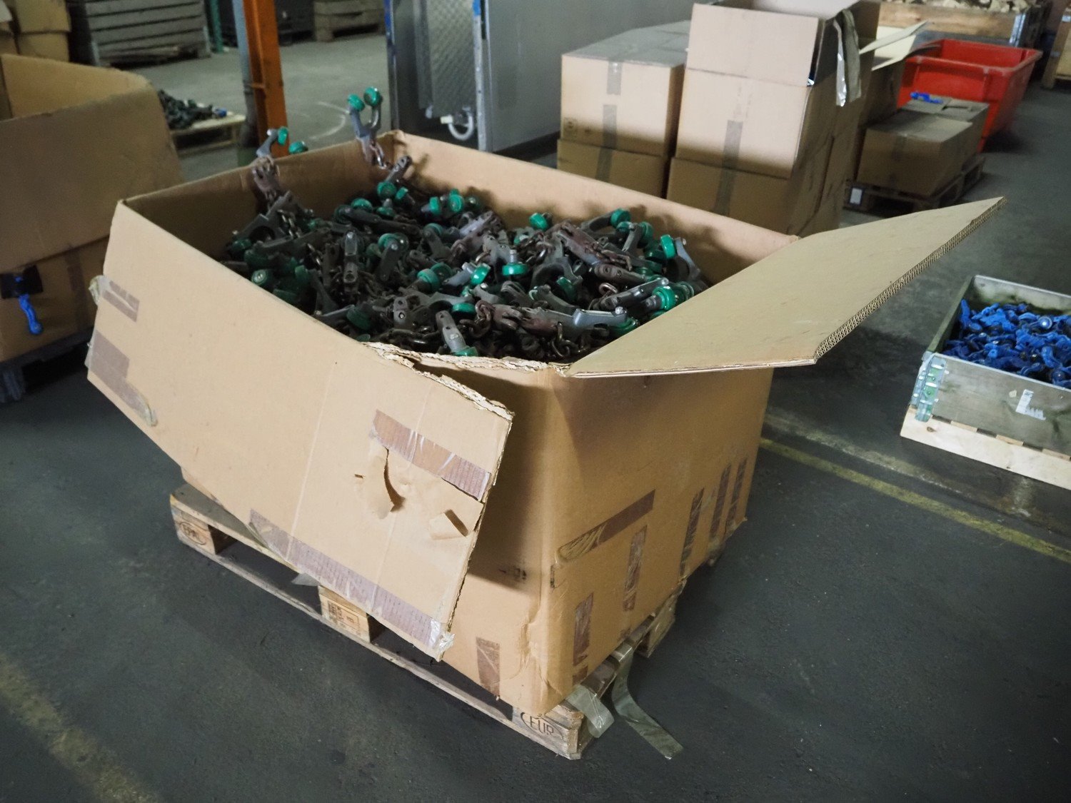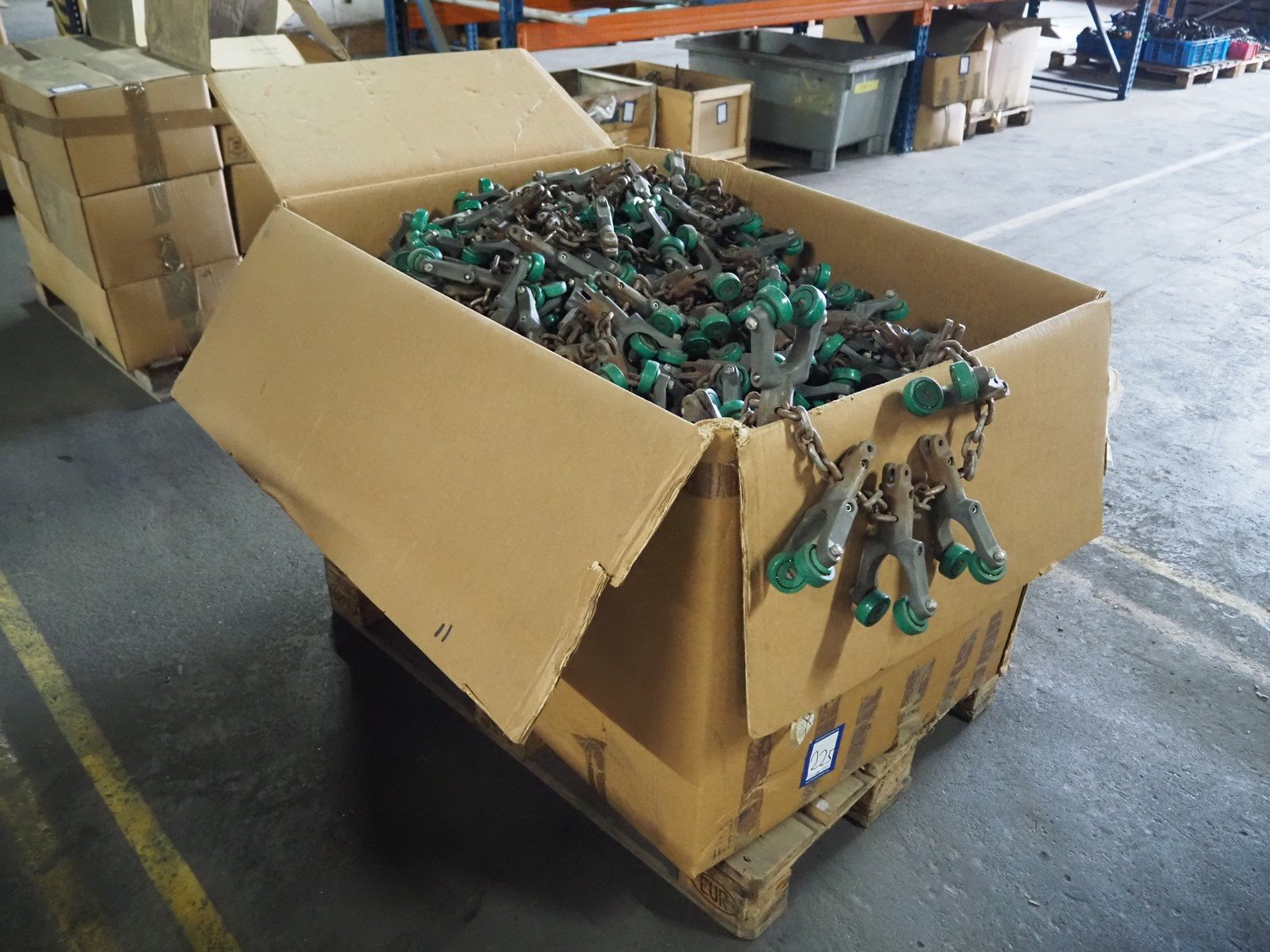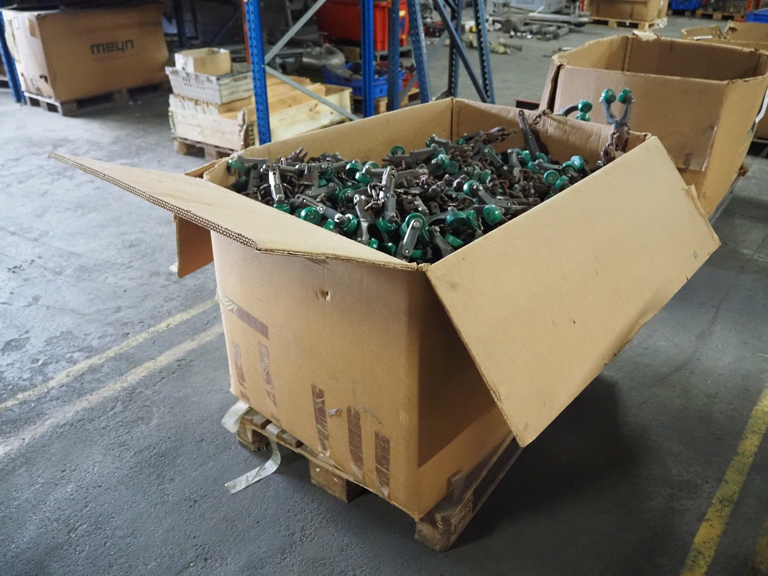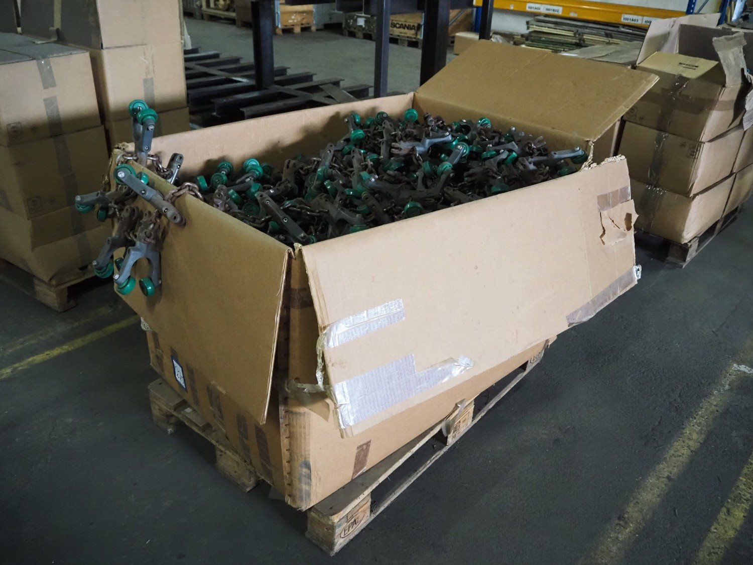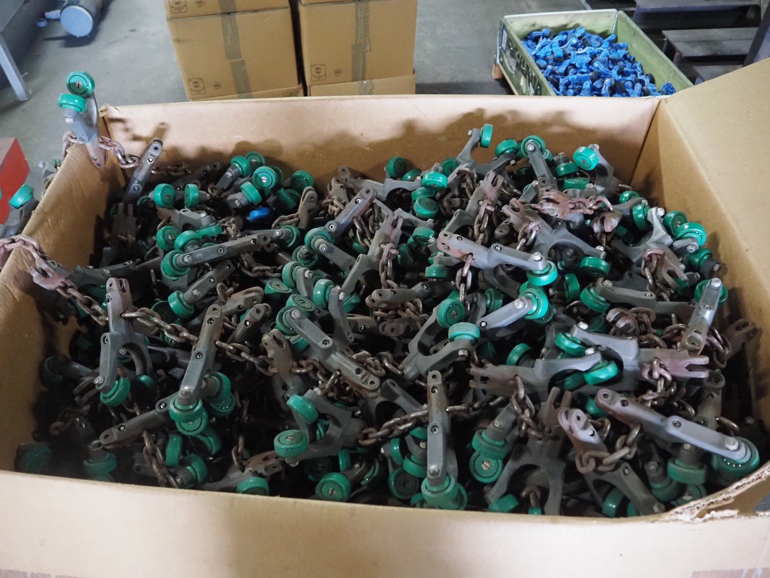 Pallet box with Meyn trolleys on chain, dimensions: 1600 mm x 1200 mm x 1250 mm. Kavel locatie: Pastoorslaan 22, 2182 BX Hillegom, Nederland