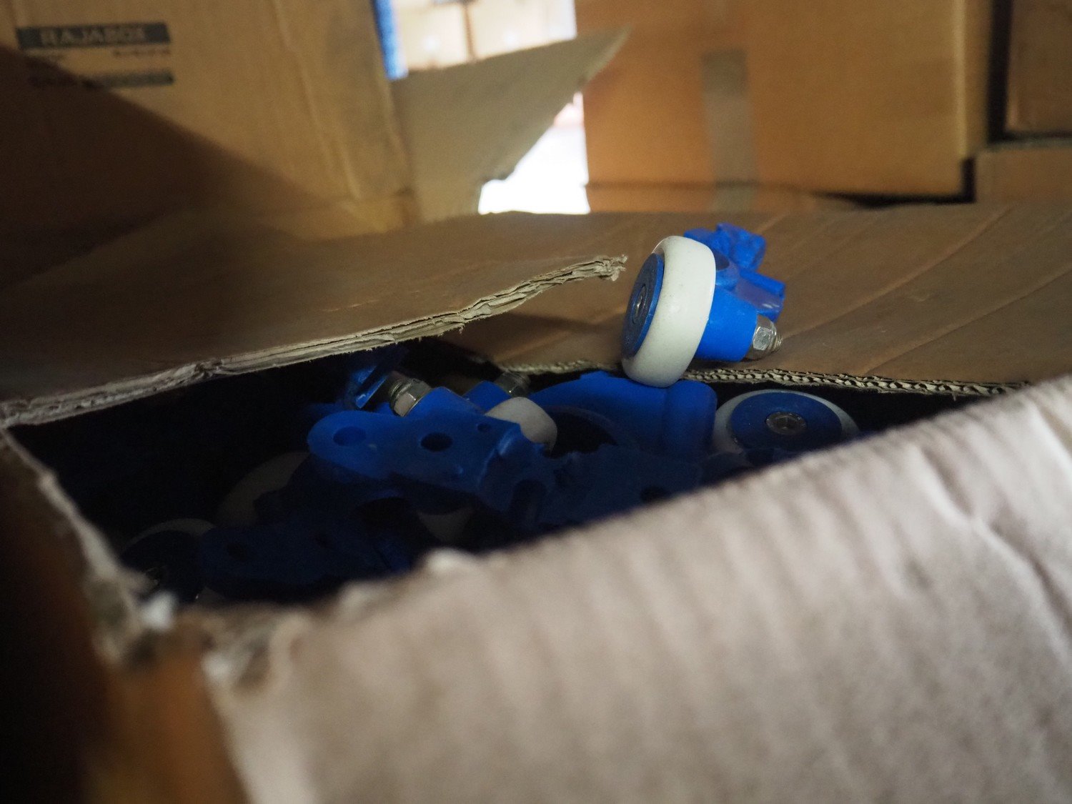 3 boxes with approximately 330 pieces of plastic trolleys for tube track, dimensions box: 600 mm x 400 mm x 290 mm. Kavel locatie: Pastoorslaan 22, 2182 BX Hillegom, Nederland