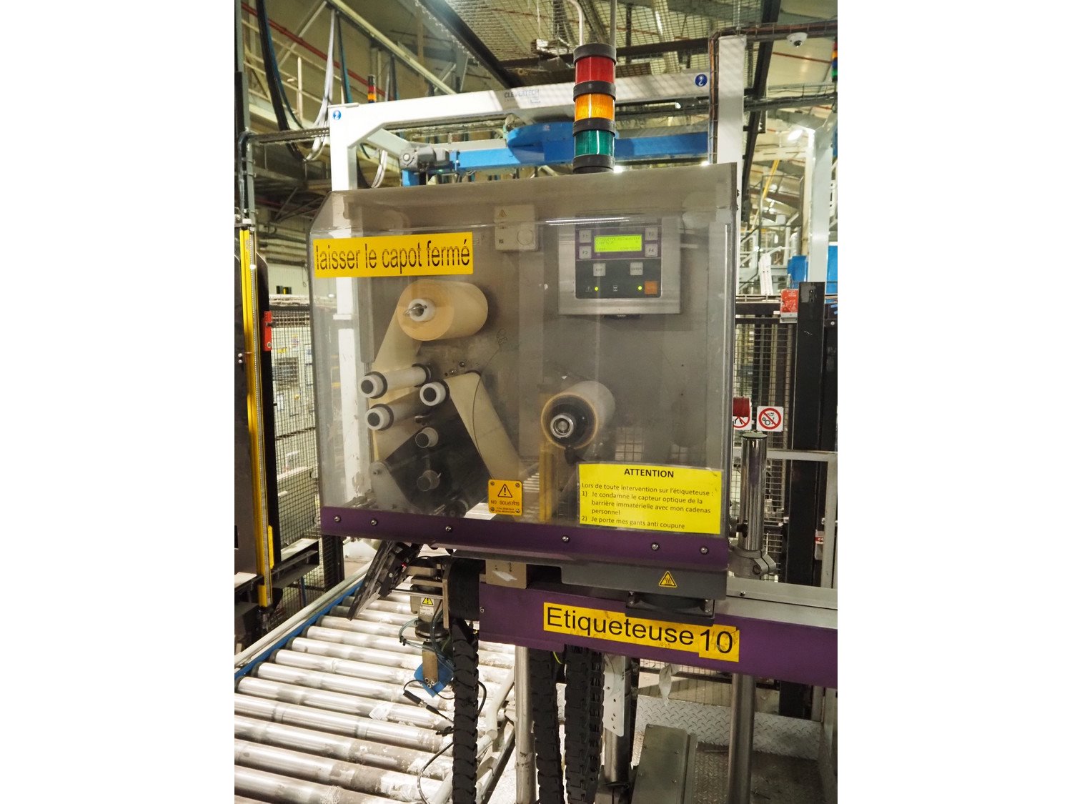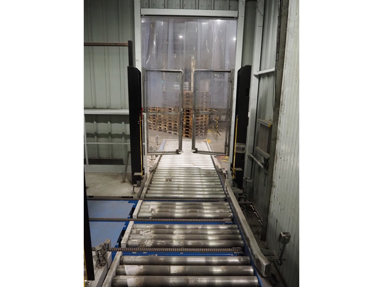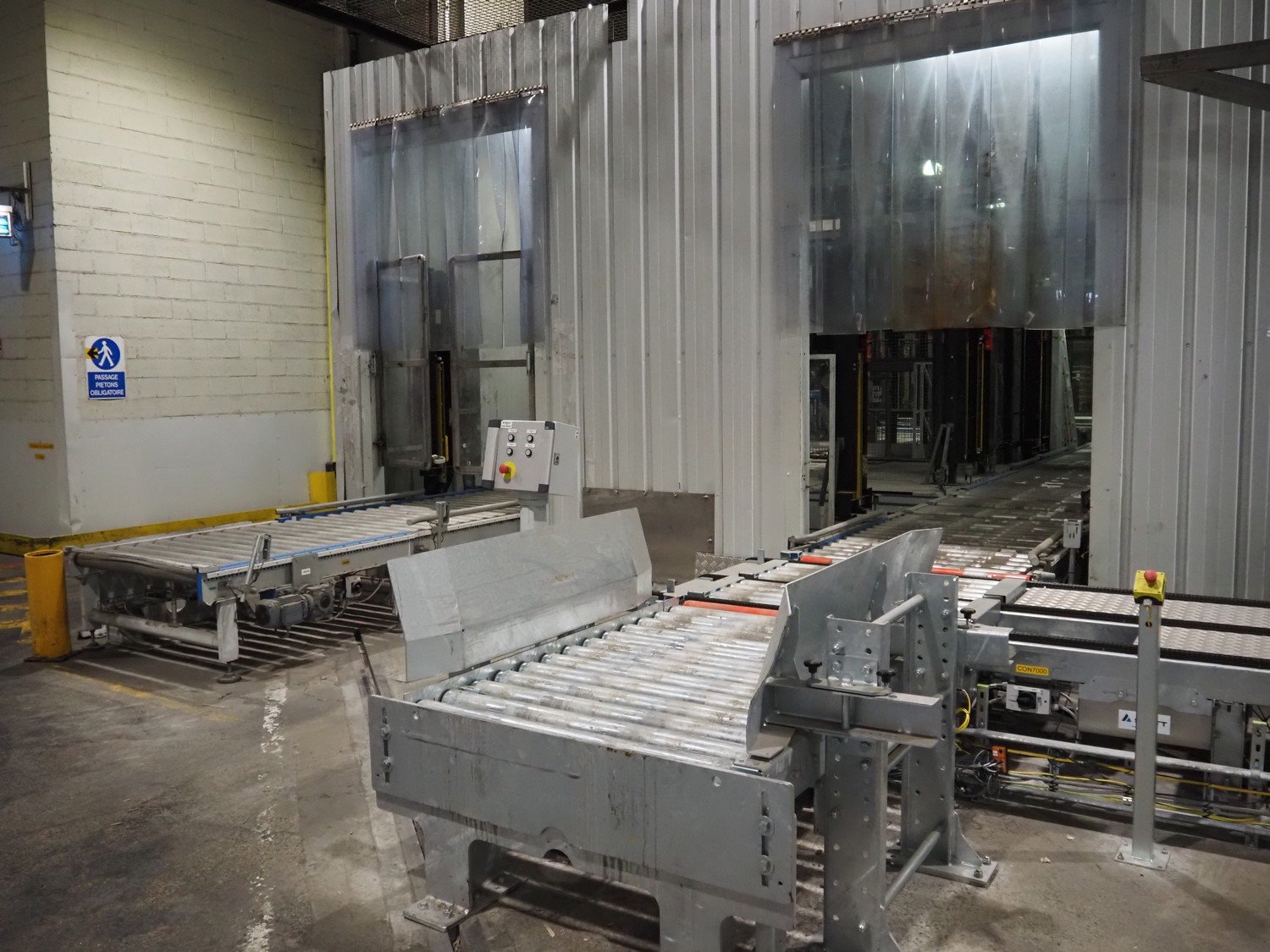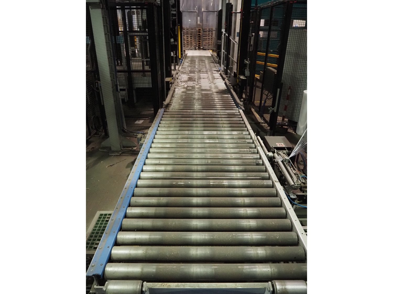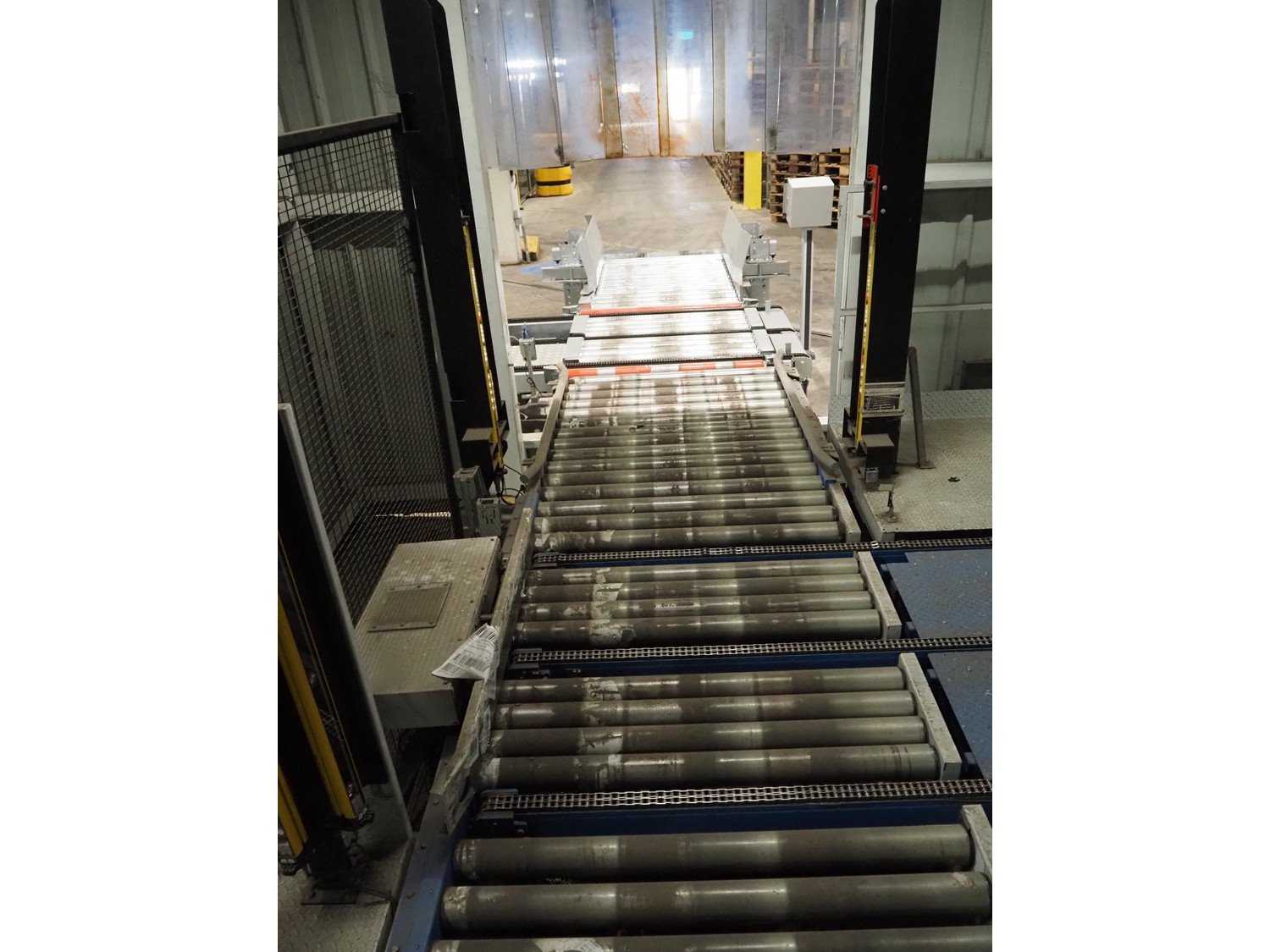 Clevertech pallet wrapping and labelling installation consisting of: Clevertech pallet wrapper, model: PF80, serial number: 195882, year of construction: 2019, 400 V, 3 Ph, 50 Hz, 15 A, Clevertech pallet wrapper, model: PF80, serial number: 195881, year of construction: 2019, 400 V, 3 Ph, 50 Hz, 15 A, 2 pallet labellers, Clevertech conveyor system, year of construction: 2019, 400 V, 3 Ph, 50 Hz, 35 A, s/s rollers, roller width: 1200 mm, 2 steel switch cabinets, dimensions: 5600 mm x 500 mm x 2200 mm and 3800 mm x 500 mm x 2200 mm. total floors dimensions: 18000 mm x 10000 mm. Kavel locatie: Parc Entreprise Motte du Bois, 62440 Harnes, Frankrijk
