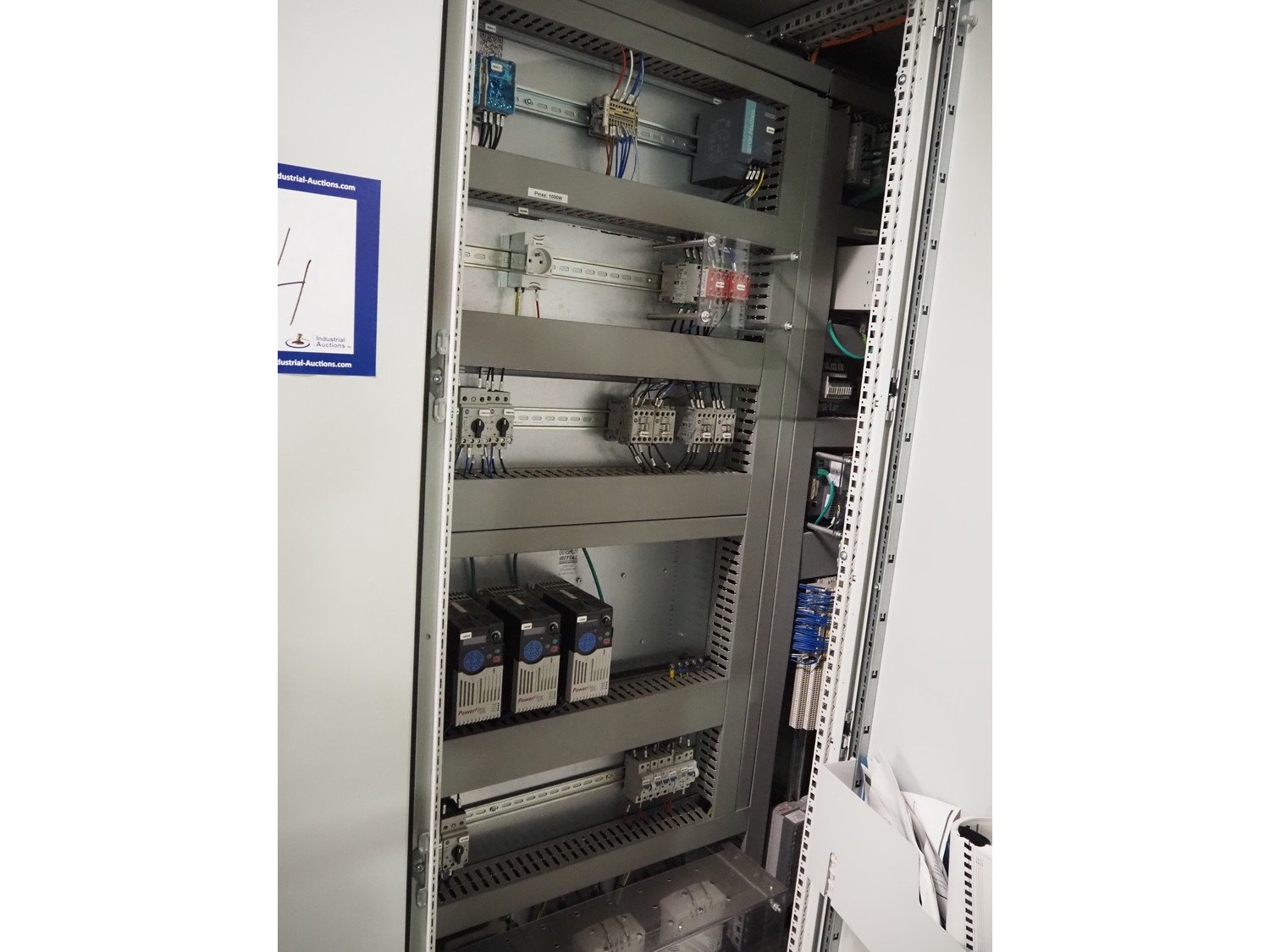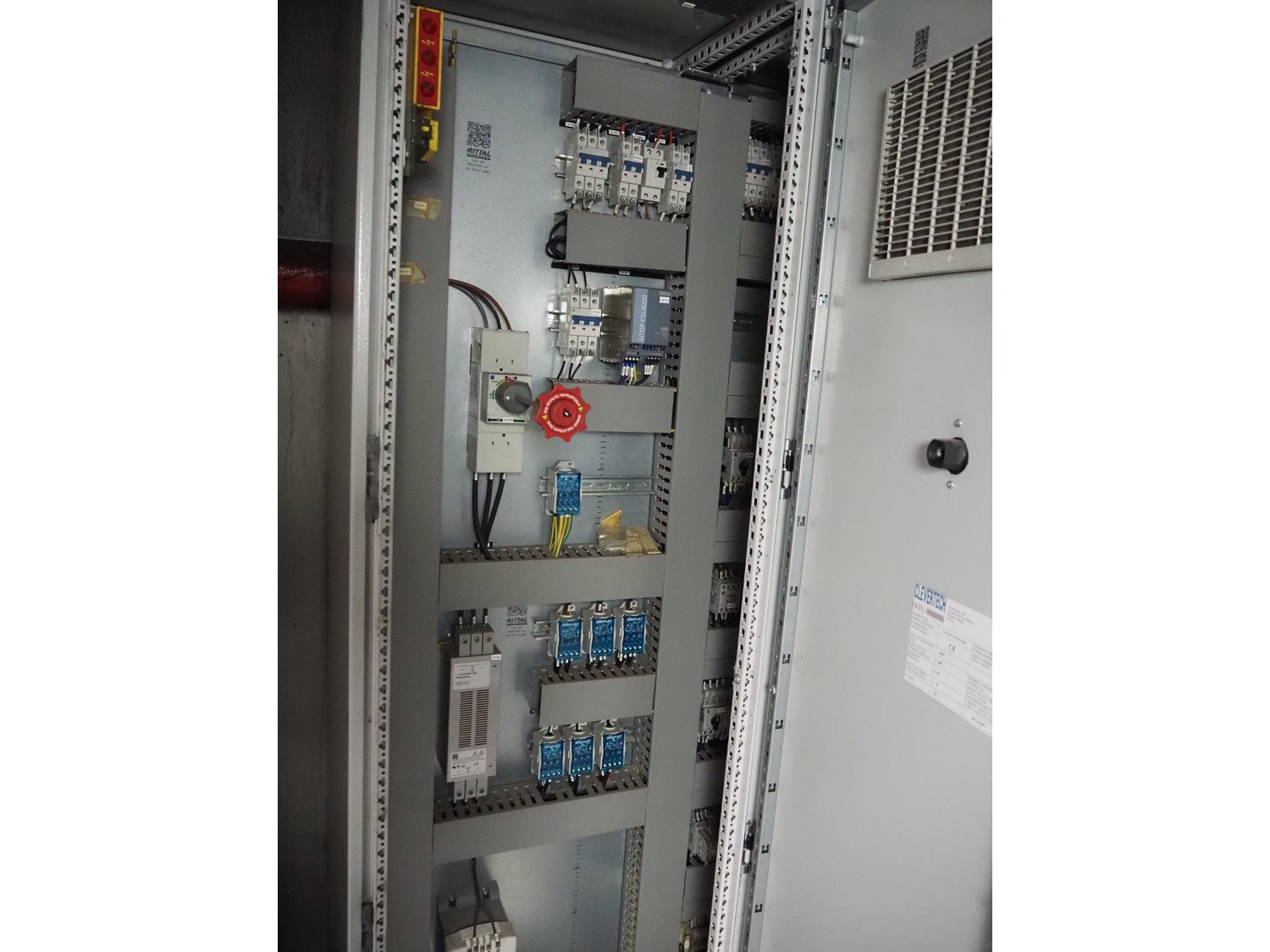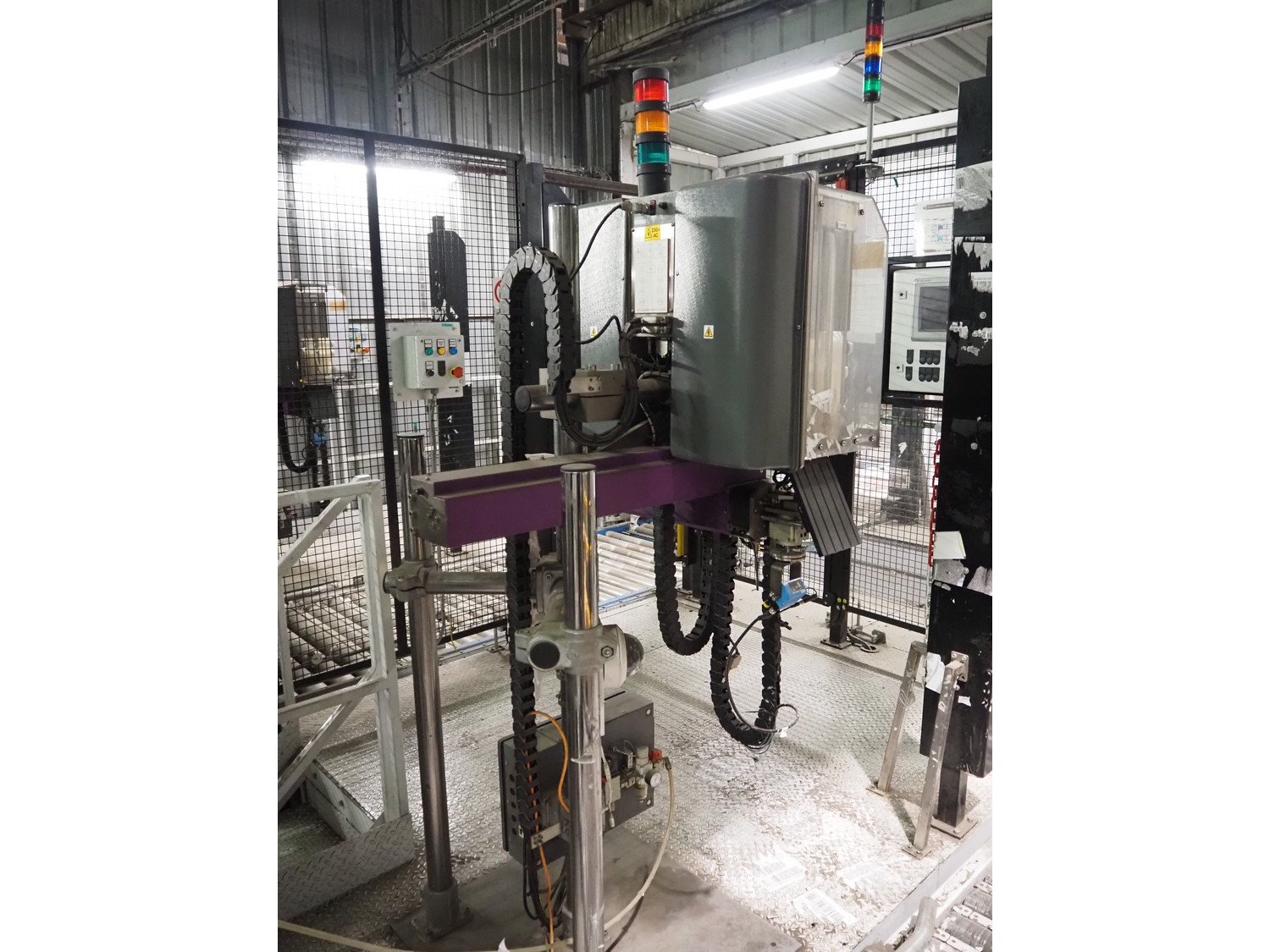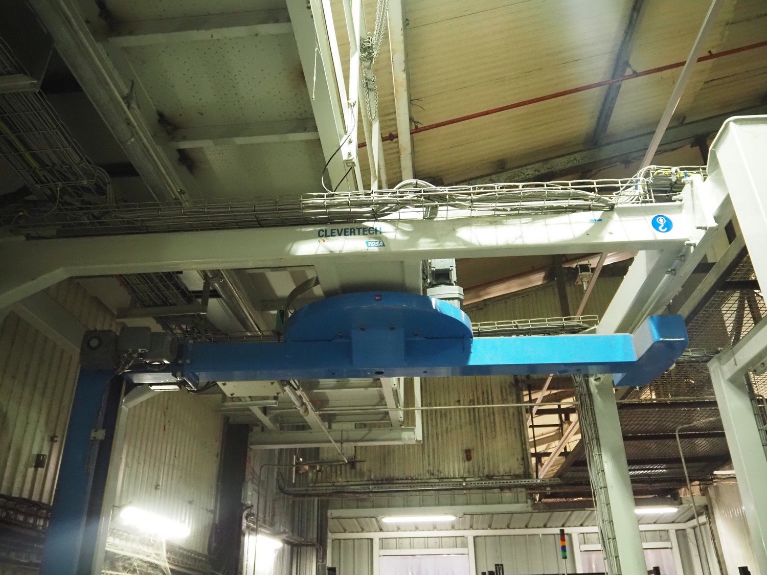 Clevertech pallet wrapping and labelling installation consisting of: Clevertech pallet wrapper, model: PF80, serial number: 195882, year of construction: 2019, 400 V, 3 Ph, 50 Hz, 15 A, Clevertech pallet wrapper, model: PF80, serial number: 195881, year of construction: 2019, 400 V, 3 Ph, 50 Hz, 15 A, 2 pallet labellers, Clevertech conveyor system, year of construction: 2019, 400 V, 3 Ph, 50 Hz, 35 A, s/s rollers, roller width: 1200 mm, 2 steel switch cabinets, dimensions: 5600 mm x 500 mm x 2200 mm and 3800 mm x 500 mm x 2200 mm. total floors dimensions: 18000 mm x 10000 mm. Kavel locatie: Parc Entreprise Motte du Bois, 62440 Harnes, Frankrijk