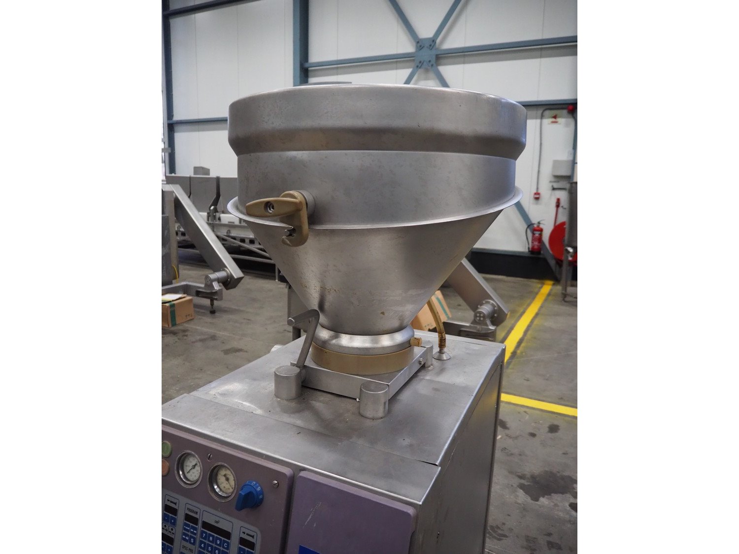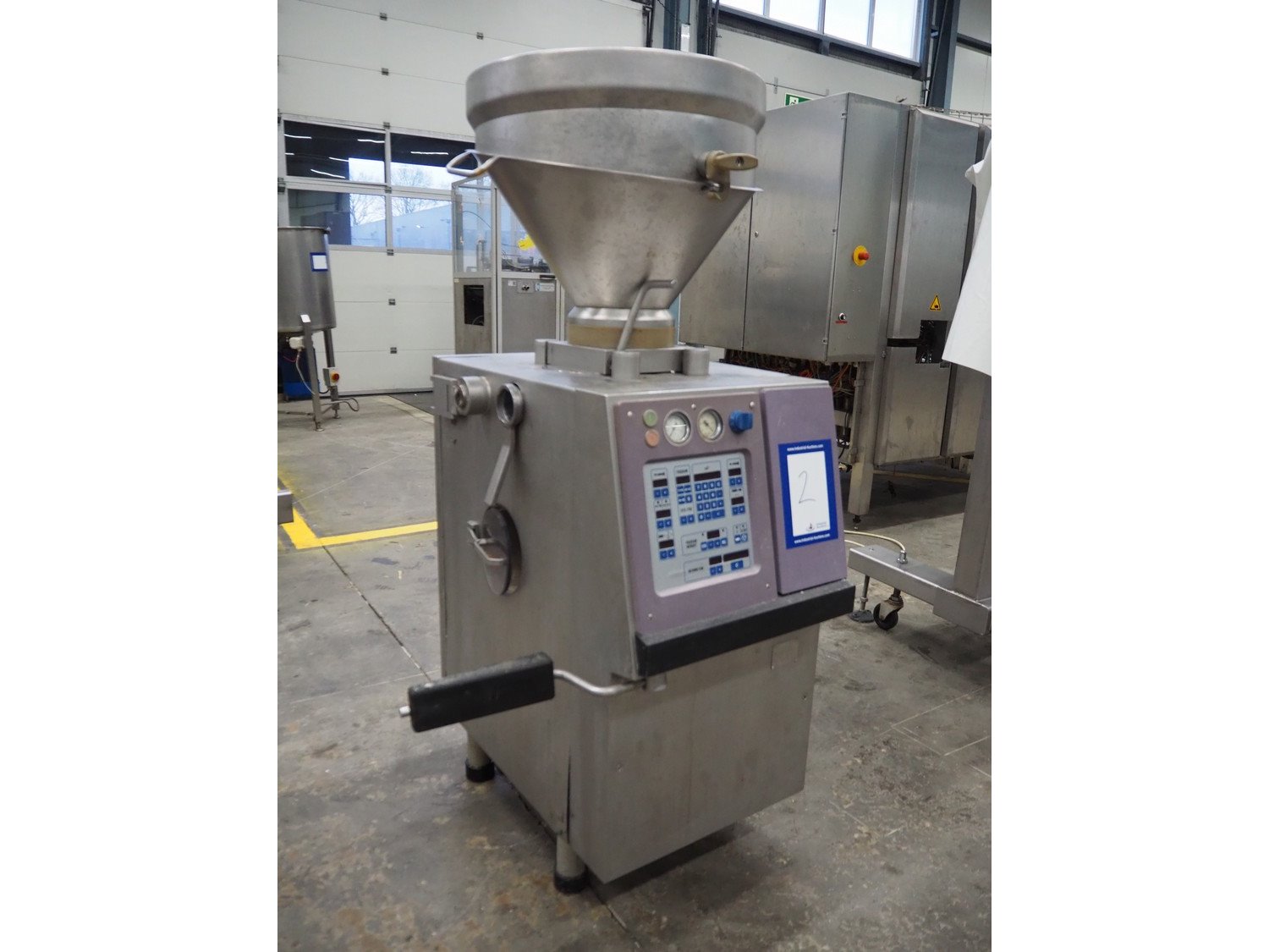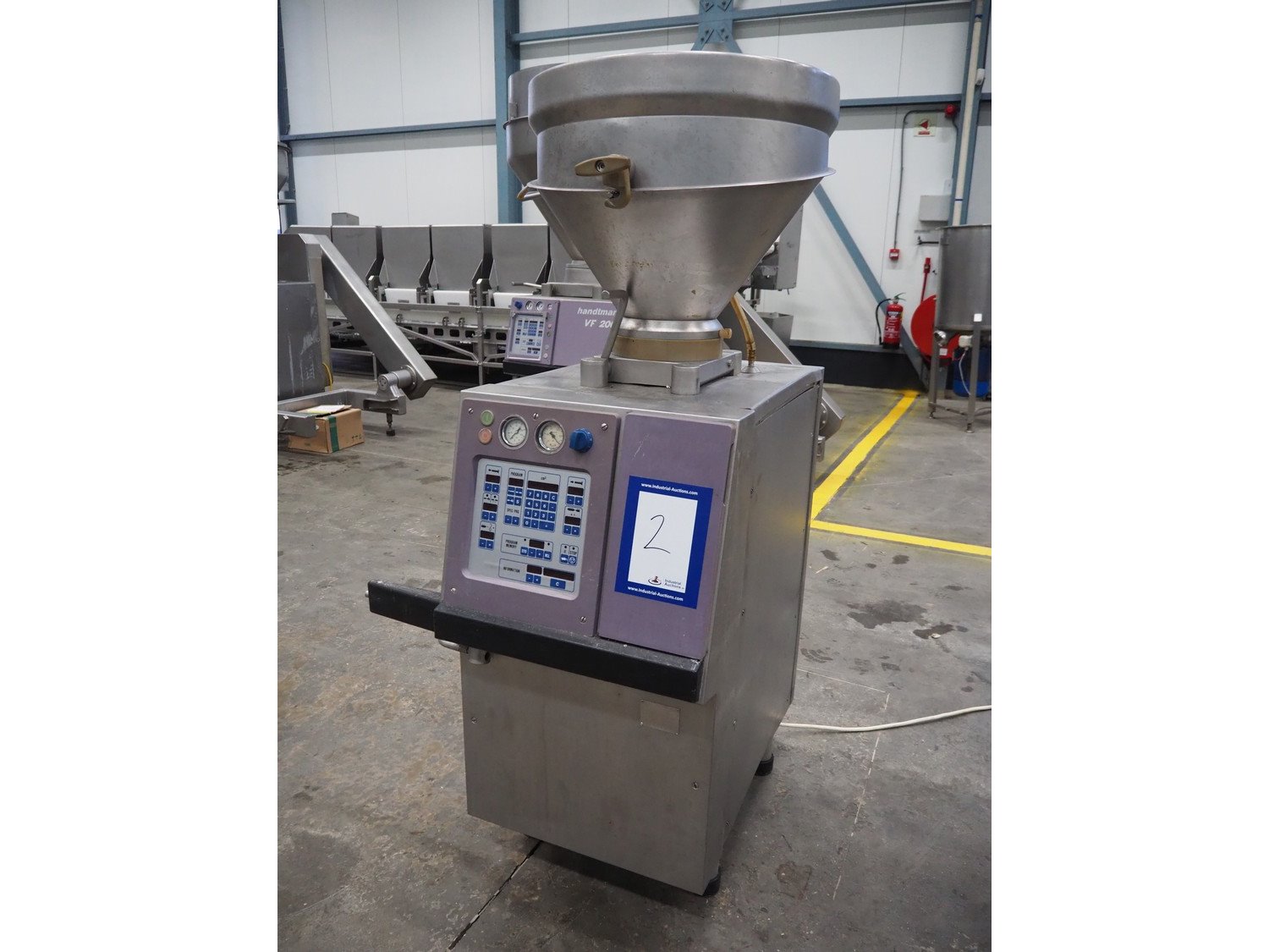 Handtmann vacuum filling machine, type: VF50, number: 14471, year of construction: 2001, 400 V, 3 Ph, 50 Hz, 11 A, 4 kW, dimensions: 900 mm x 550 mm x 1650 mm. Kavel locatie: Schouwrooij 29, 5281 RE Boxtel, Nederland