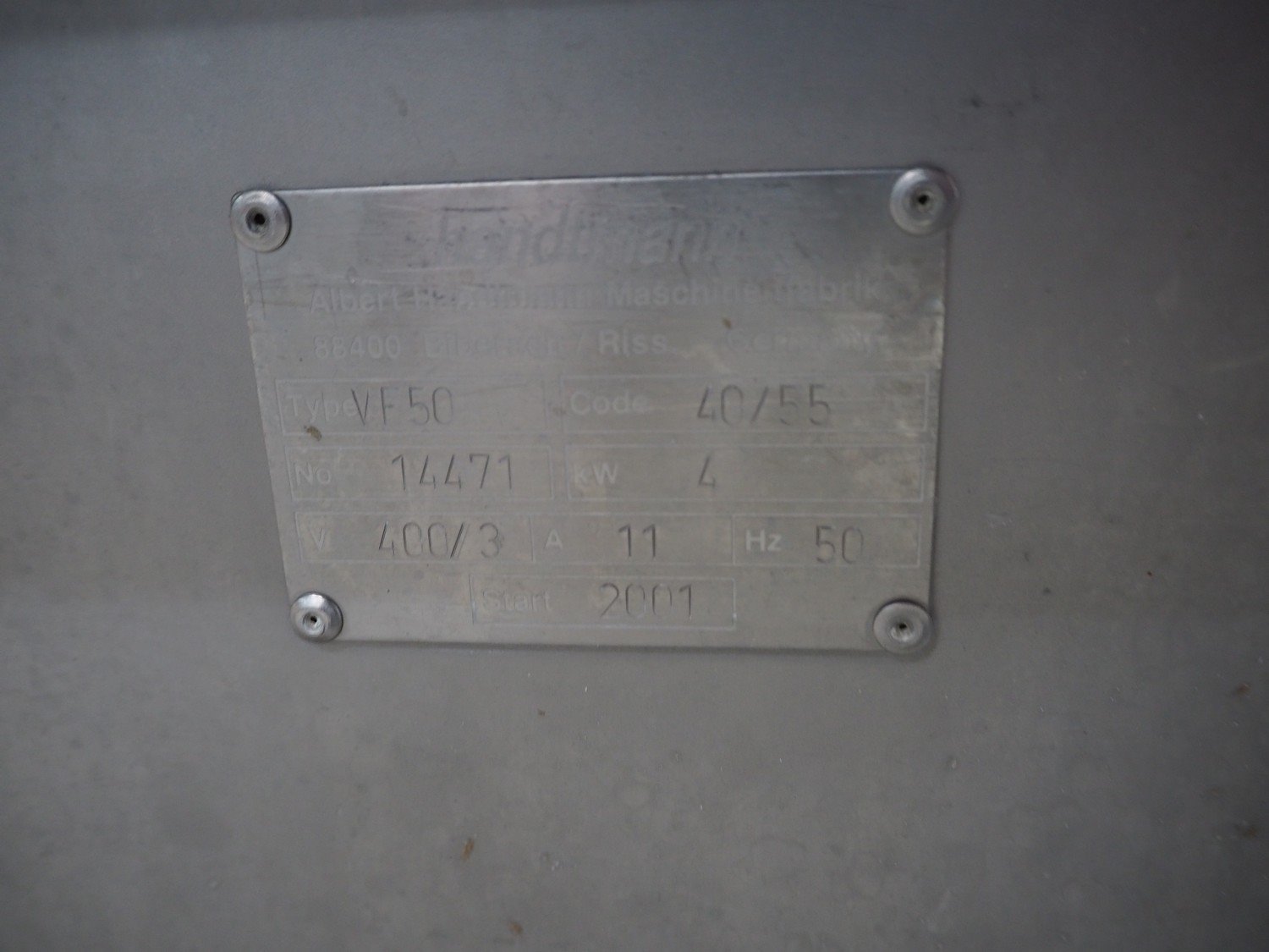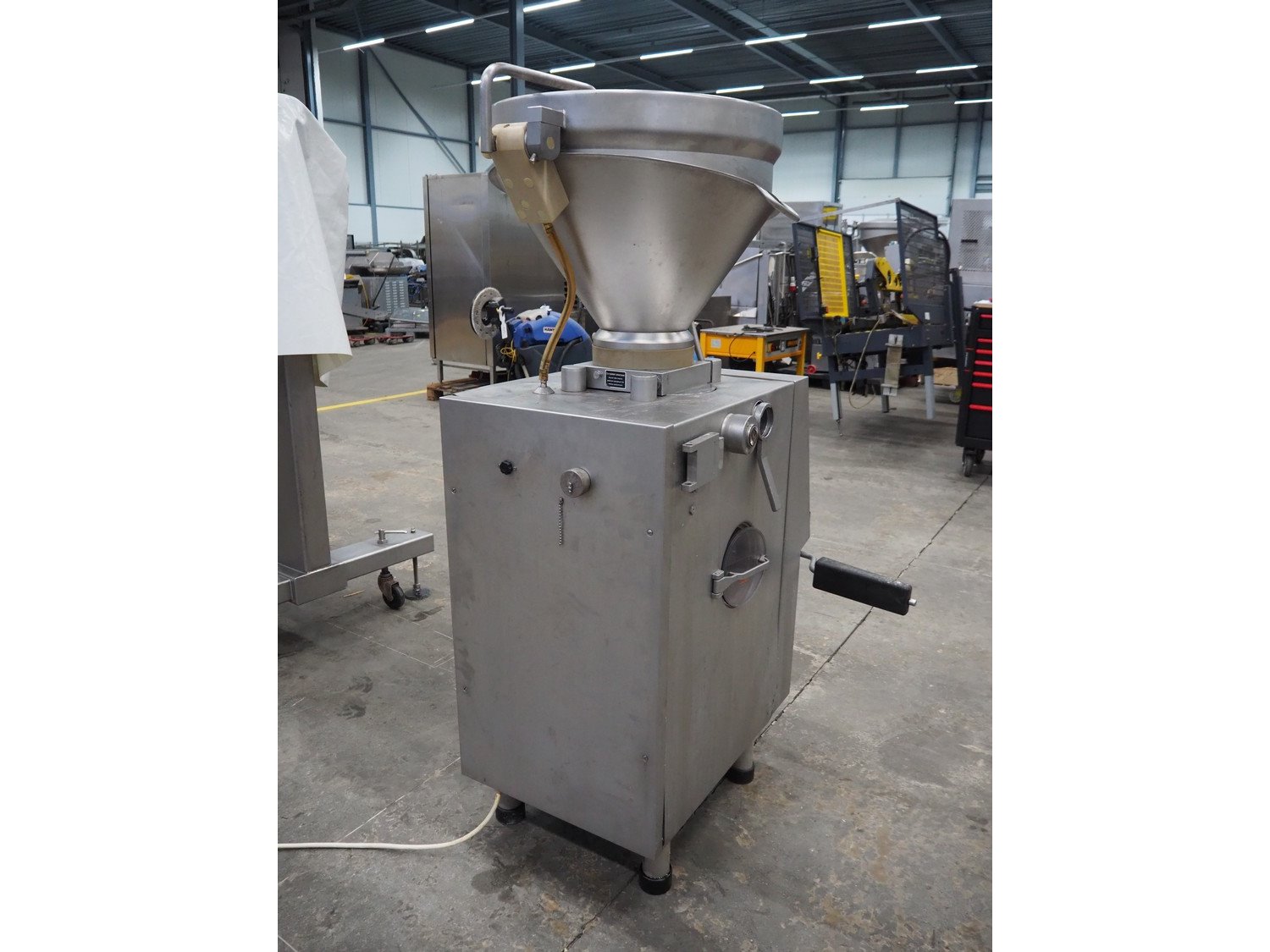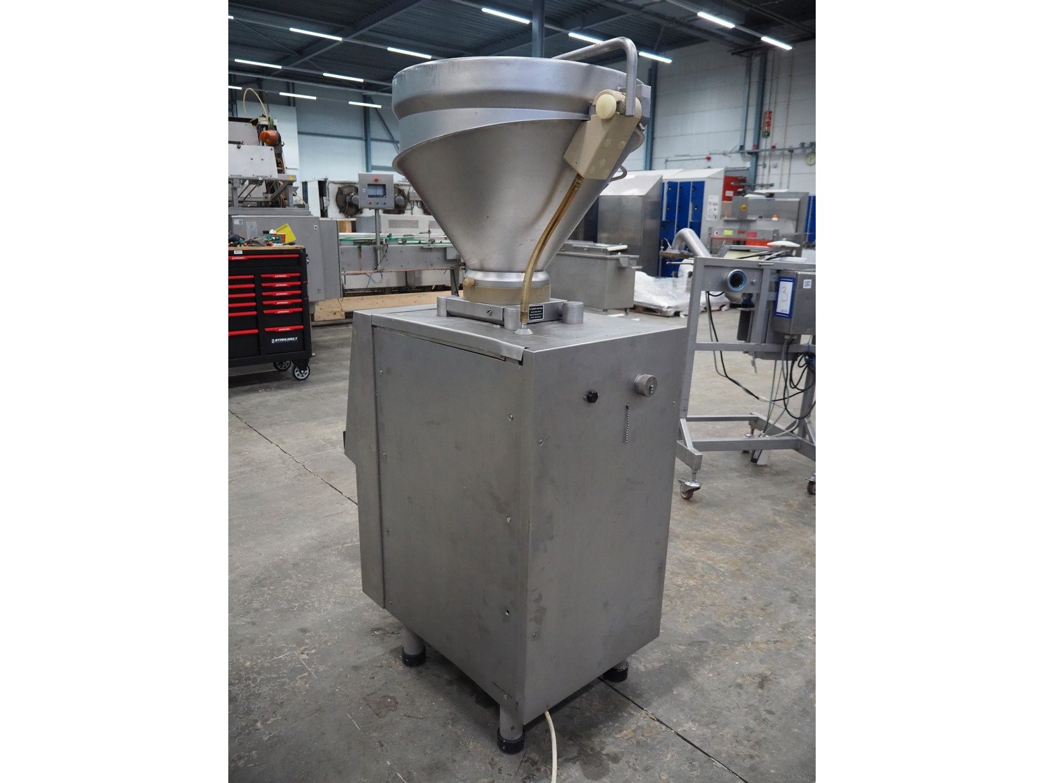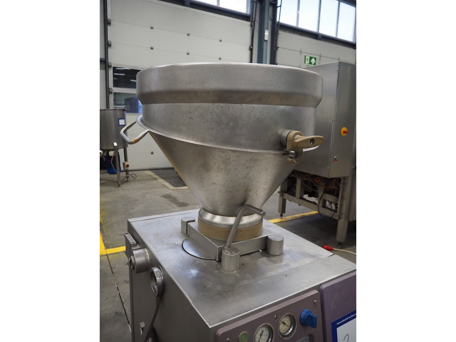 Handtmann vacuum filling machine, type: VF50, number: 14471, year of construction: 2001, 400 V, 3 Ph, 50 Hz, 11 A, 4 kW, dimensions: 900 mm x 550 mm x 1650 mm. Kavel locatie: Schouwrooij 29, 5281 RE Boxtel, Nederland