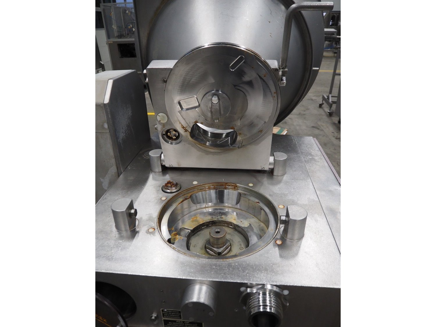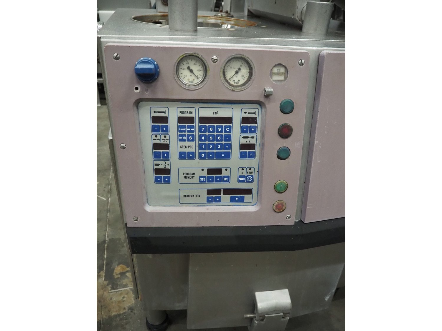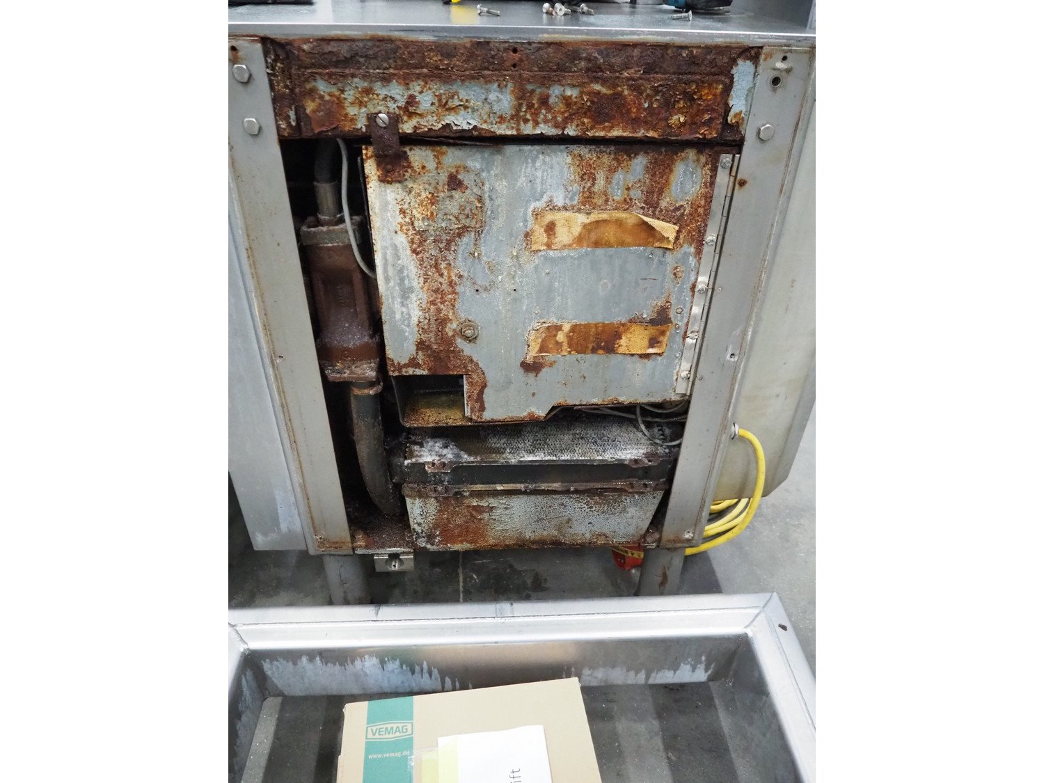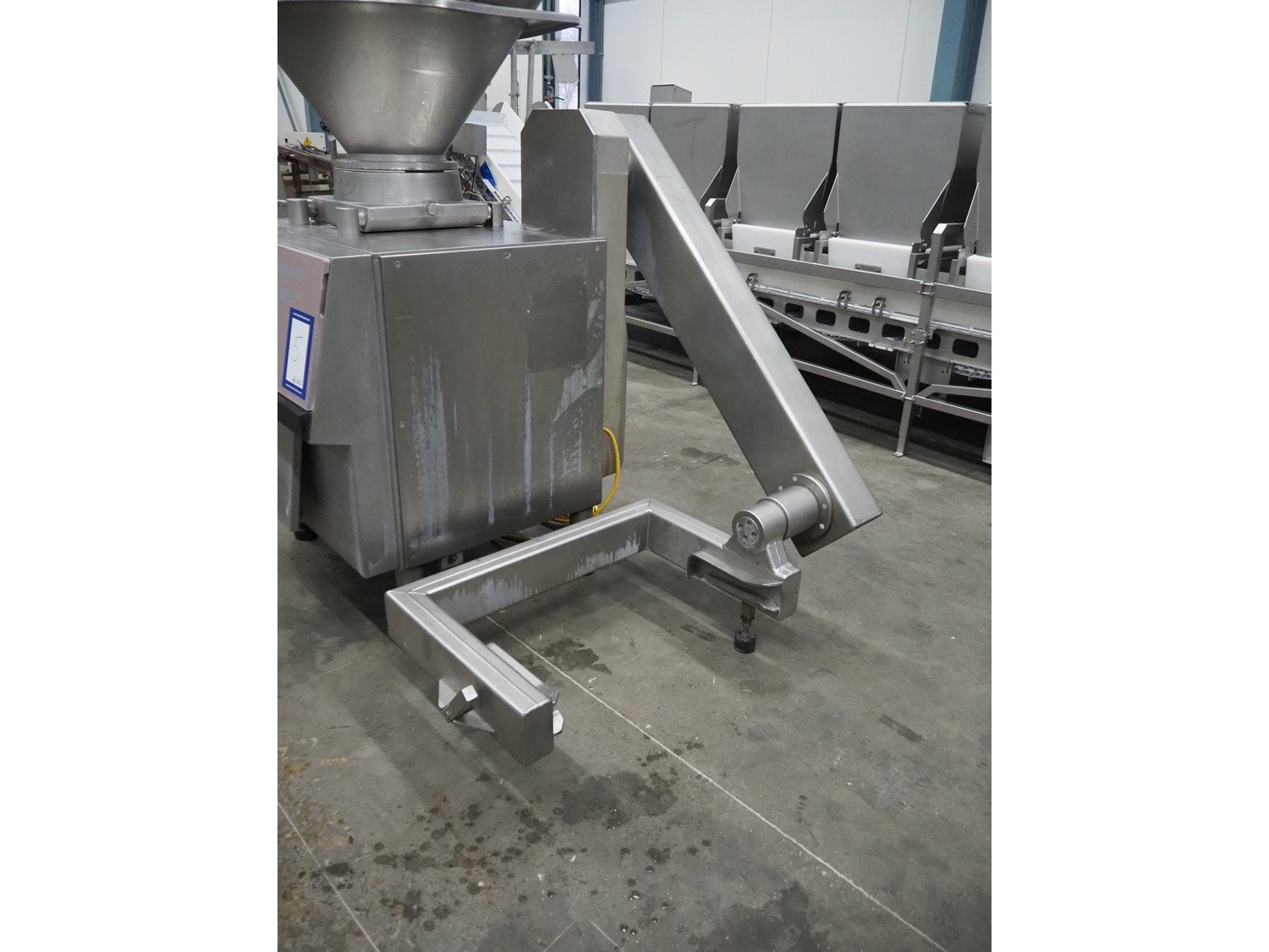 Handtmann vacuum filling machine with lifter for meat bins, type: VF300 B, number: 700, 420 V, 50 Hz, 23.6 A, 9.5 kW, dimensions: 1700 mm x 1300 mm x 2020 mm. Kavel locatie: Schouwrooij 29, 5281 RE Boxtel, Nederland