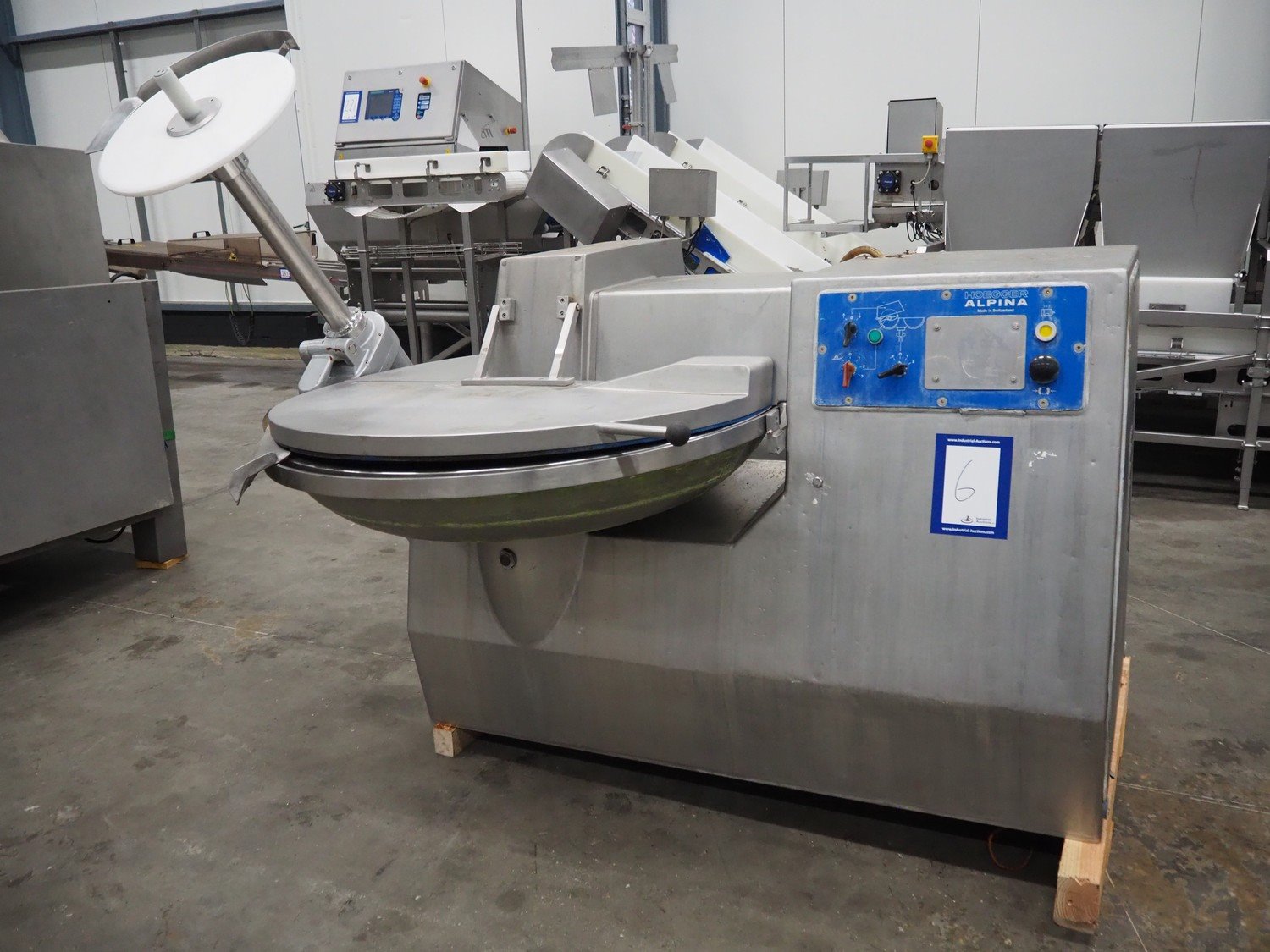 Hoegger Alpina cutter with rejector and s/s knives, s/s bowl, dimensions: 2500 mm x 1500 mm x 1800 mm. Kavel locatie: Schouwrooij 29, 5281 RE Boxtel, Nederland