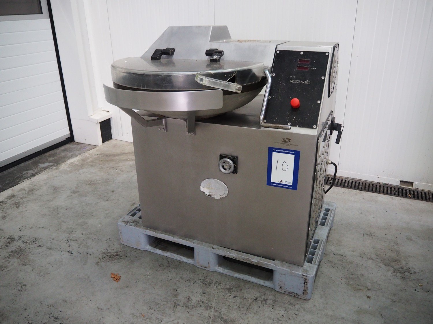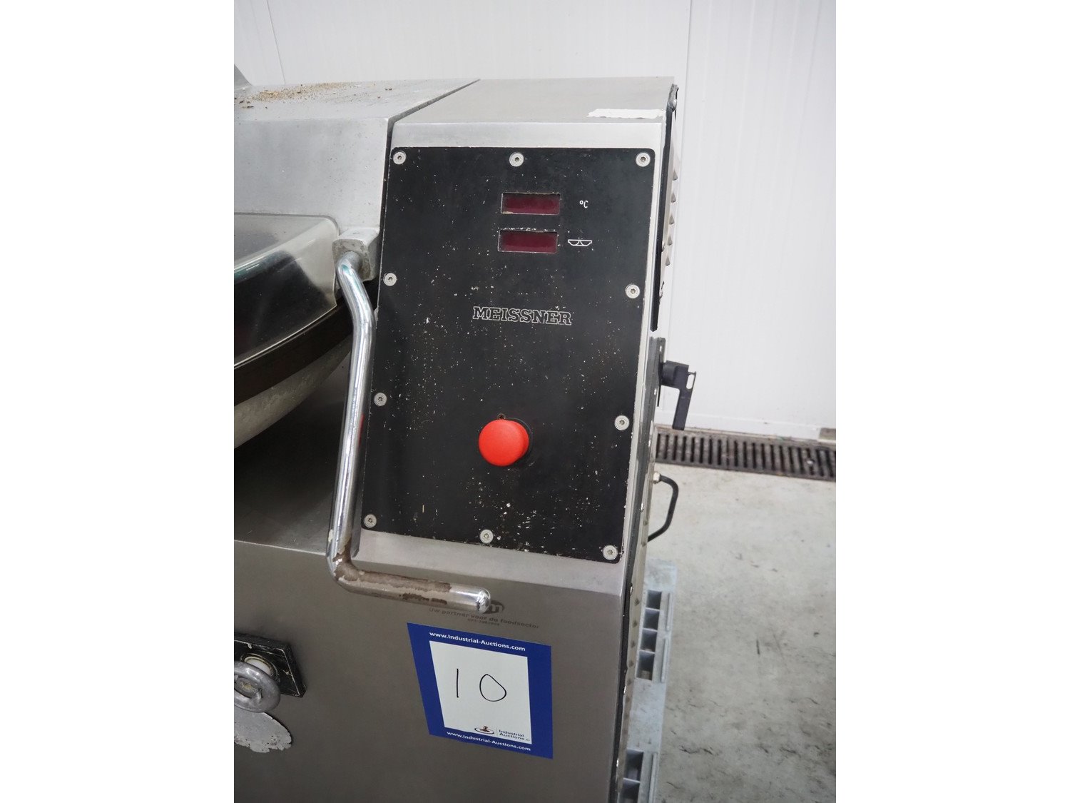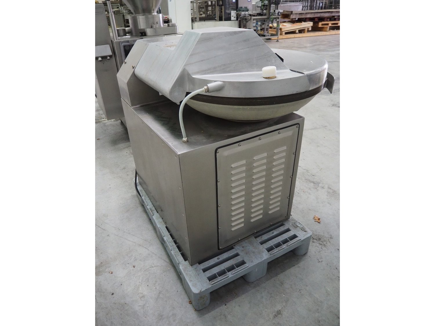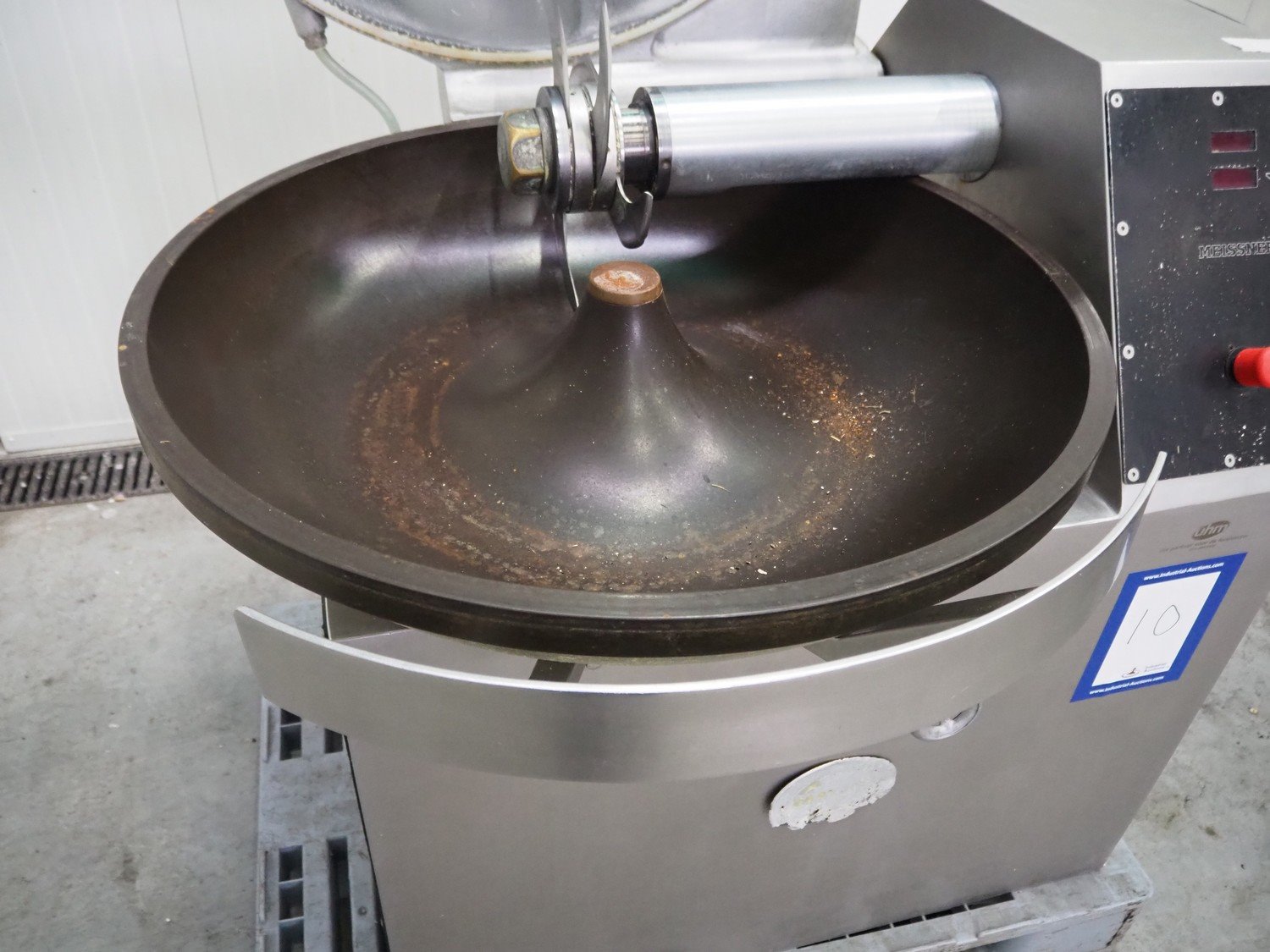 Meissner bowl cutter, type: RN-45, machine number: 118 7139, 380 V, 14/17 A, 6.2/7.8 kW, steel bowl, s/s knifes, volume: 45 liter, total dimensions: 1100 mm x 1000 mm x 1150 mm. Lid broken. Kavel locatie: Schouwrooij 29, 5281 RE Boxtel, Nederland