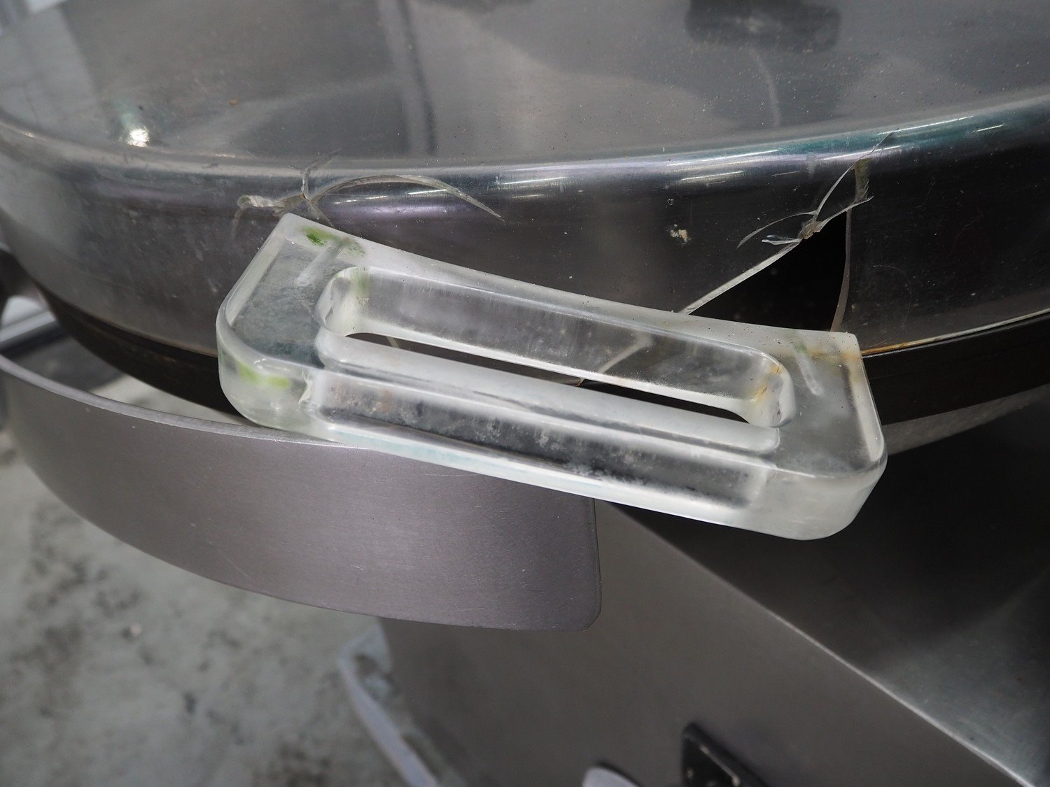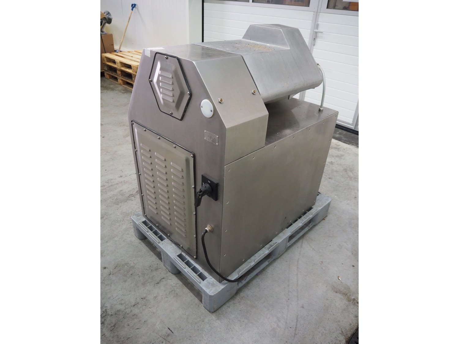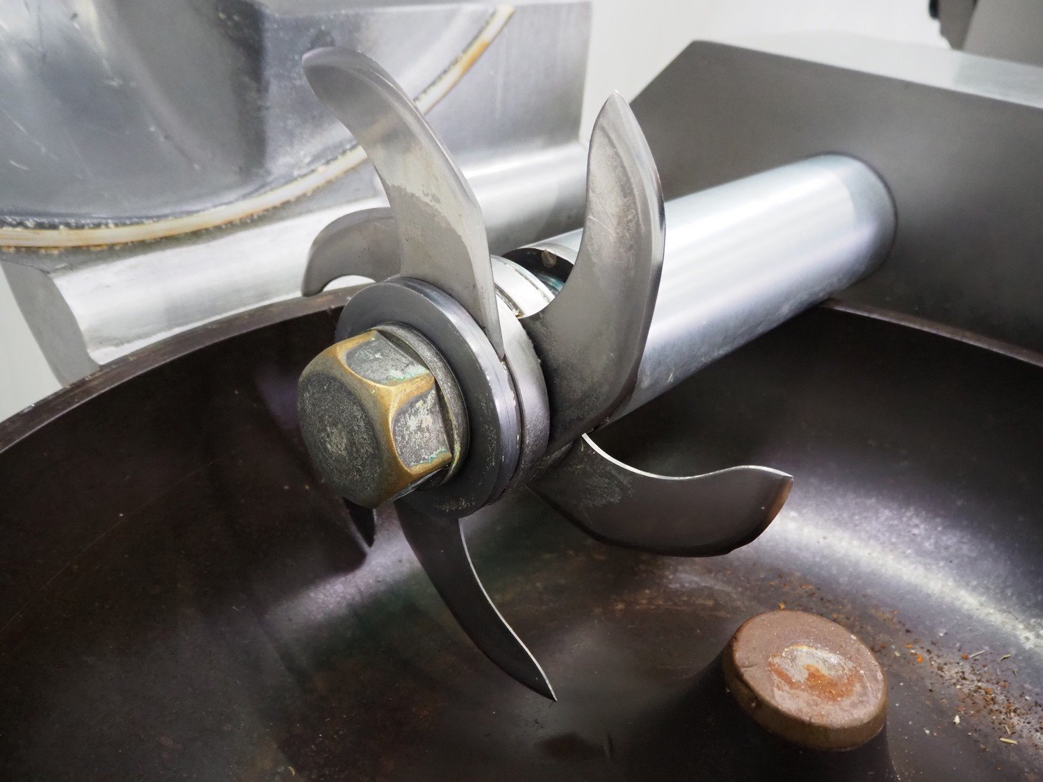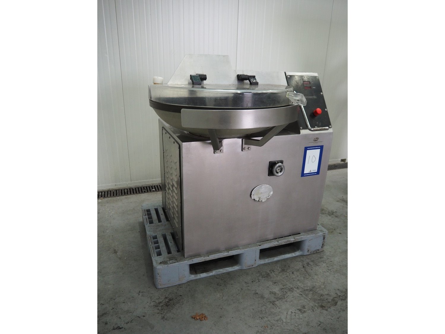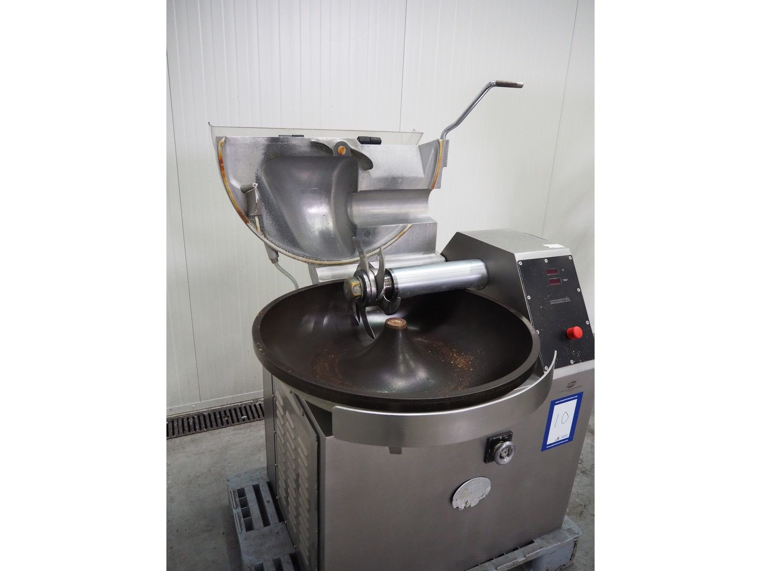 Meissner bowl cutter, type: RN-45, machine number: 118 7139, 380 V, 14/17 A, 6.2/7.8 kW, steel bowl, s/s knifes, volume: 45 liter, total dimensions: 1100 mm x 1000 mm x 1150 mm. Lid broken. Kavel locatie: Schouwrooij 29, 5281 RE Boxtel, Nederland