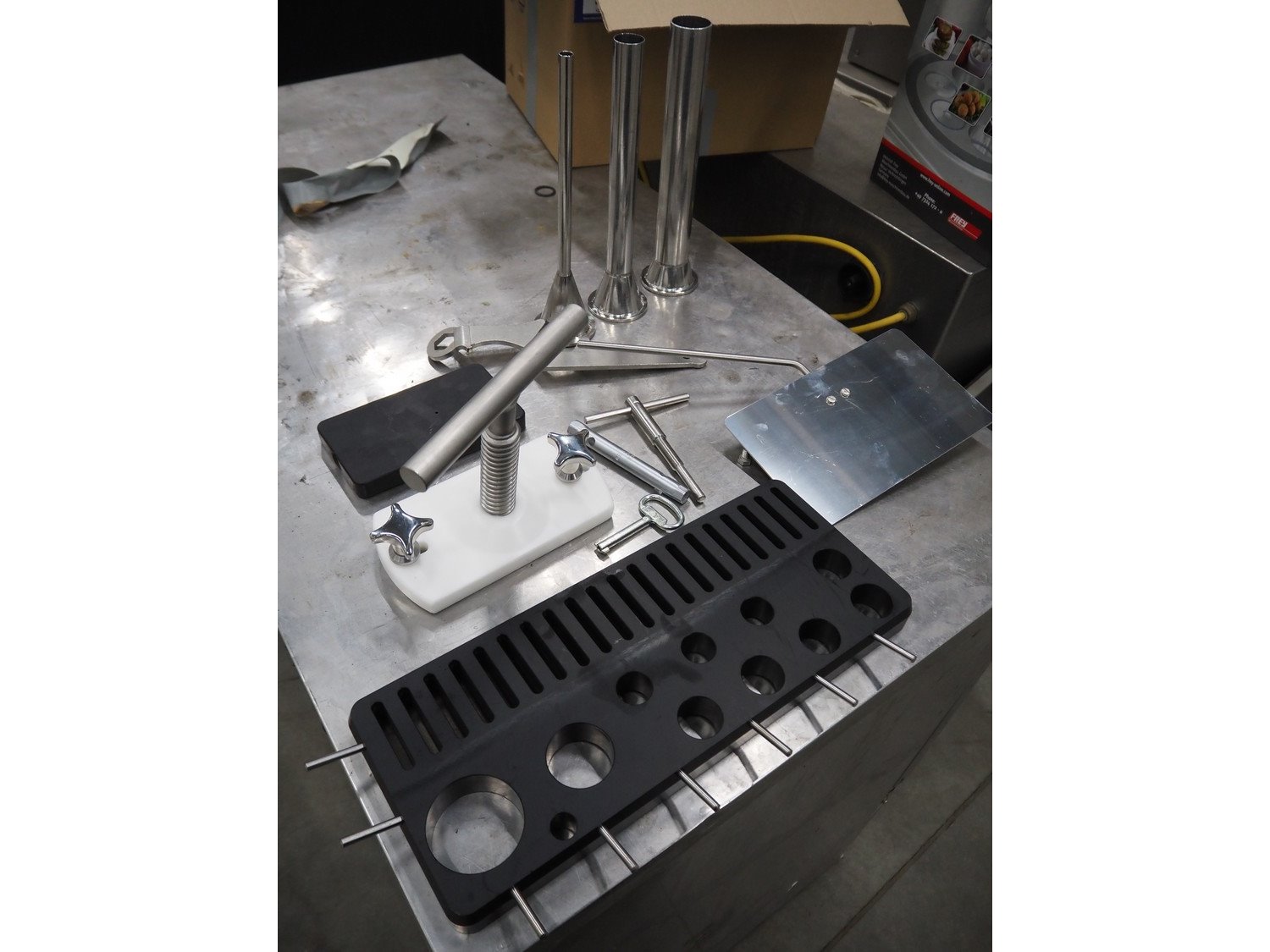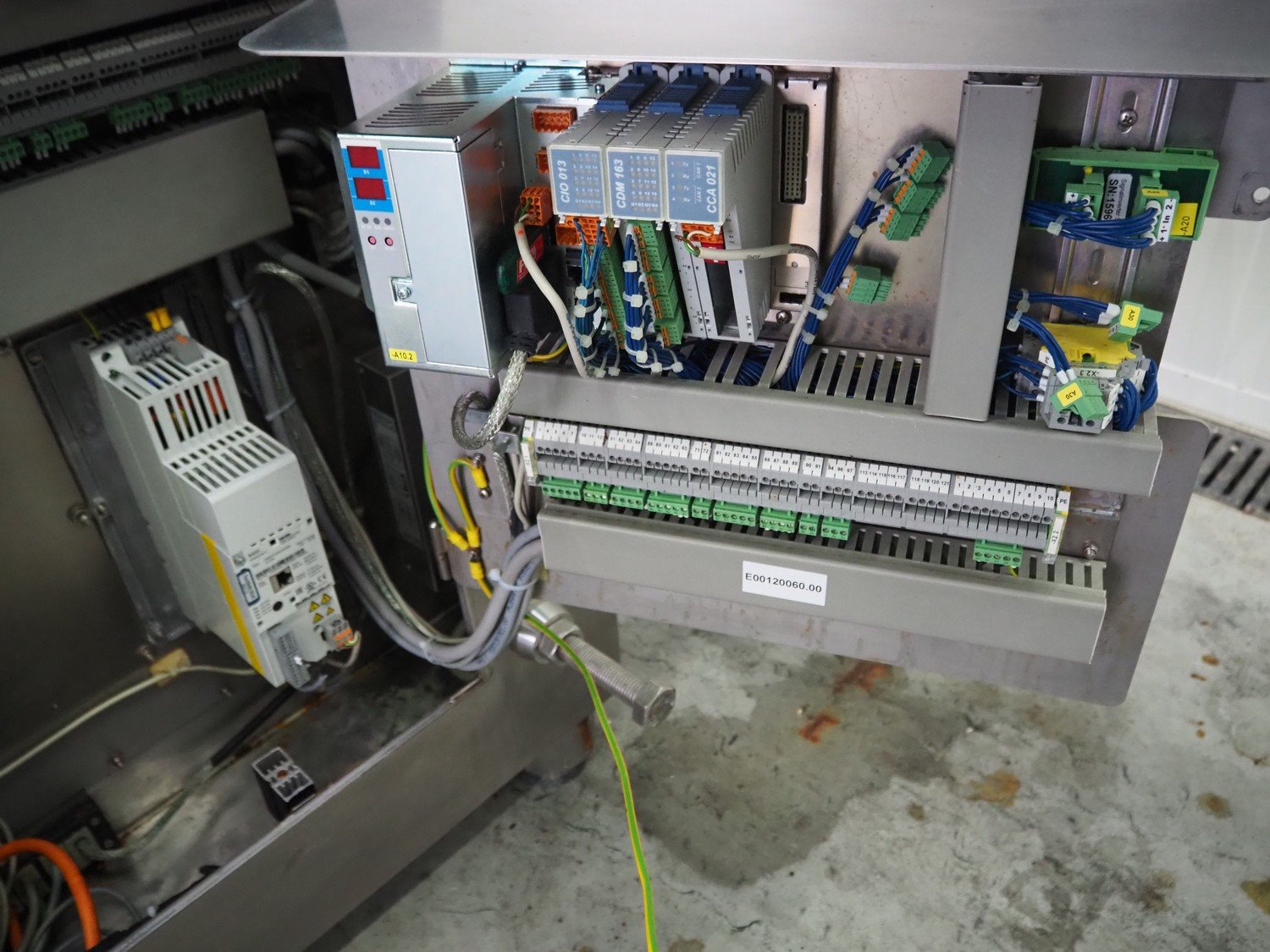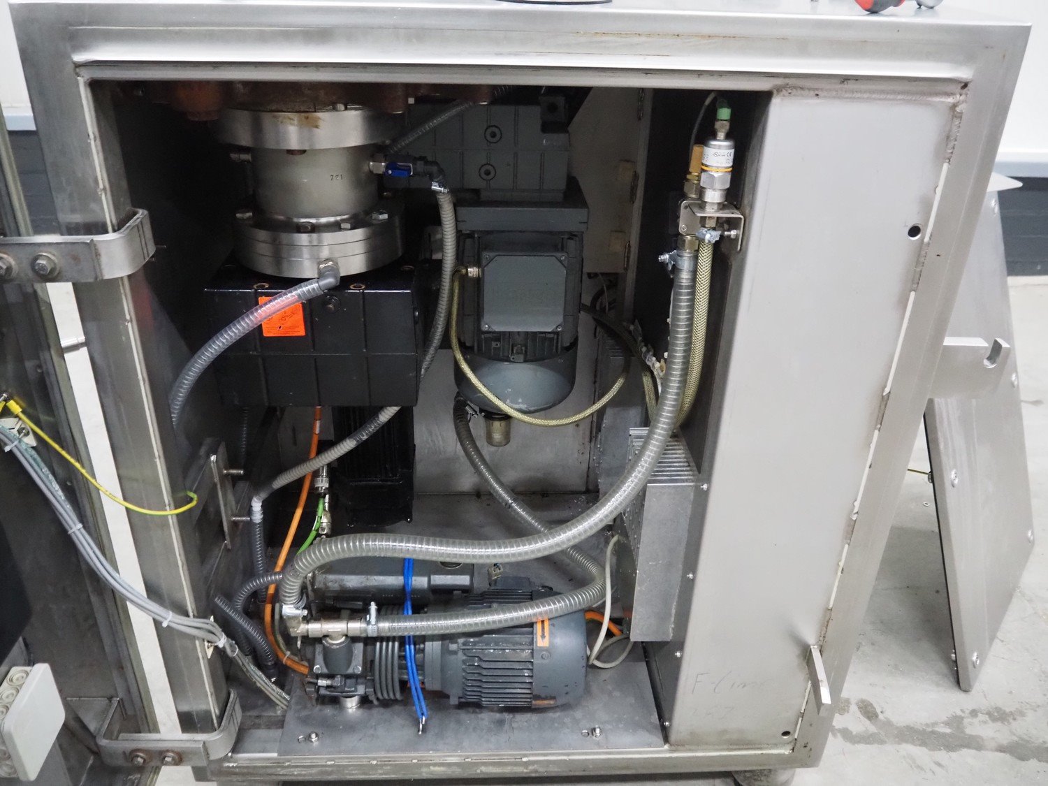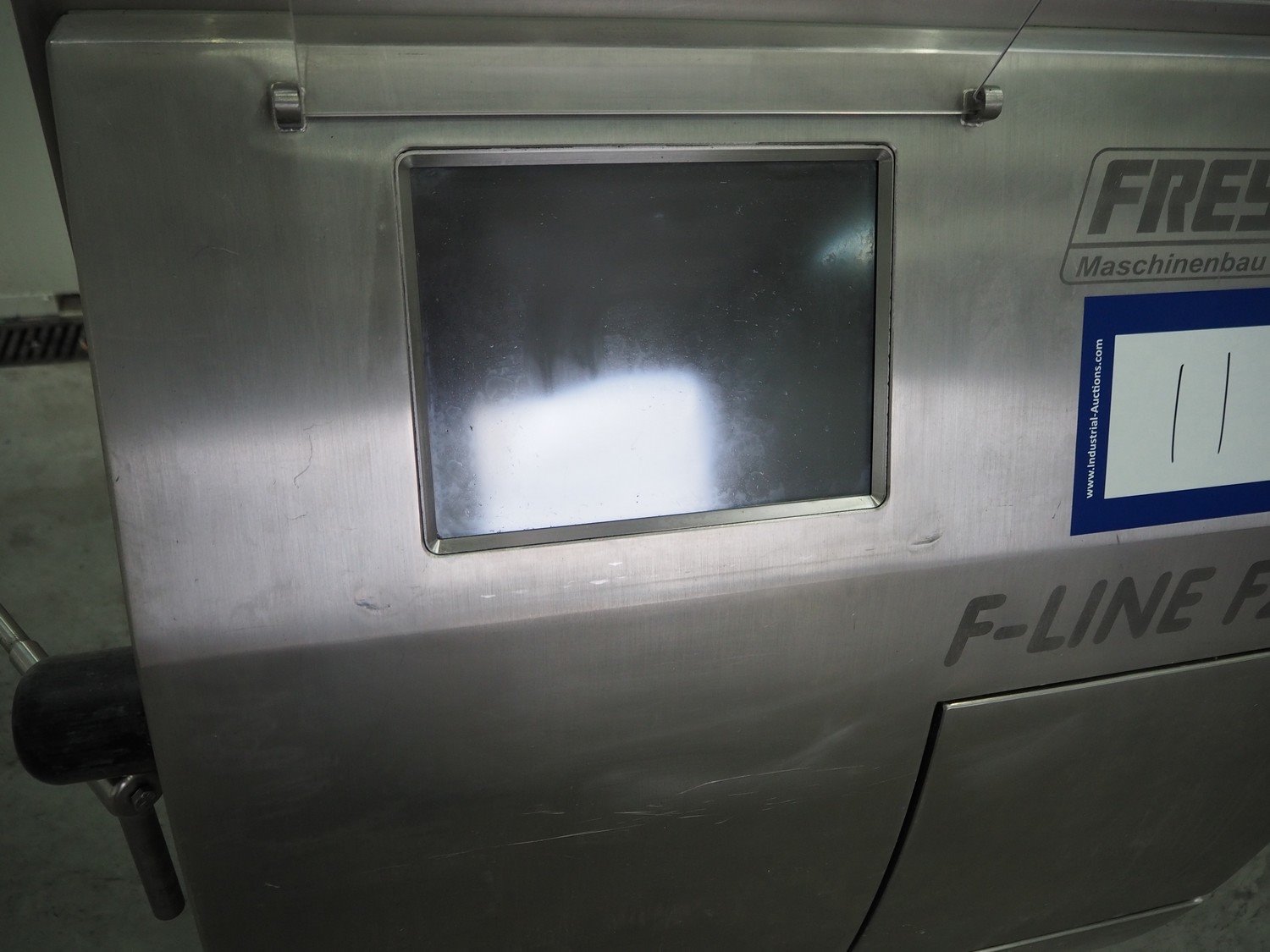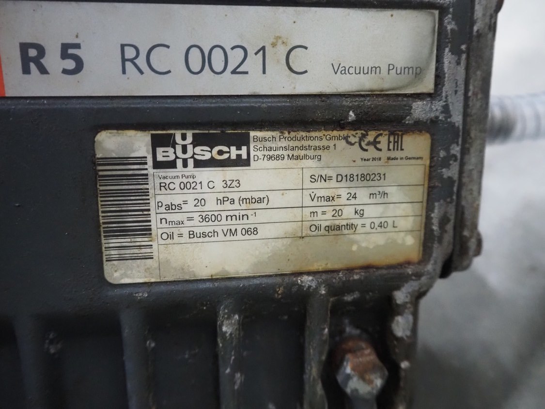 Frey Maschinenbau vacuum filling machine with lifter for 200 liter meat bins, type: F-Line F223, machine number: F223PT1092864, year of construction: 2014, 400 V, 50/60 Hz, 10.45 kW, Busch vacuum pump, type: RC 0021 C 3Z3, serial number: D18180231, year of construction: 2018, capacity: 24 m³ per hour, total dimensions: 2000 mm x 1300 mm x 2100 mm. Including box with various parts. Kavel locatie: Schouwrooij 29, 5281 RE Boxtel, Nederland