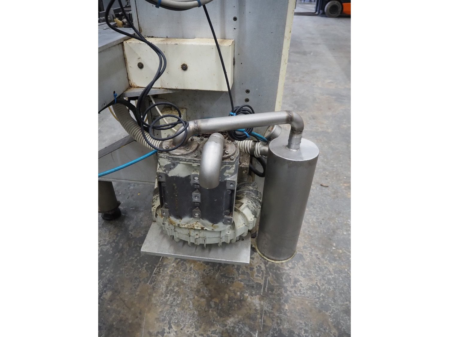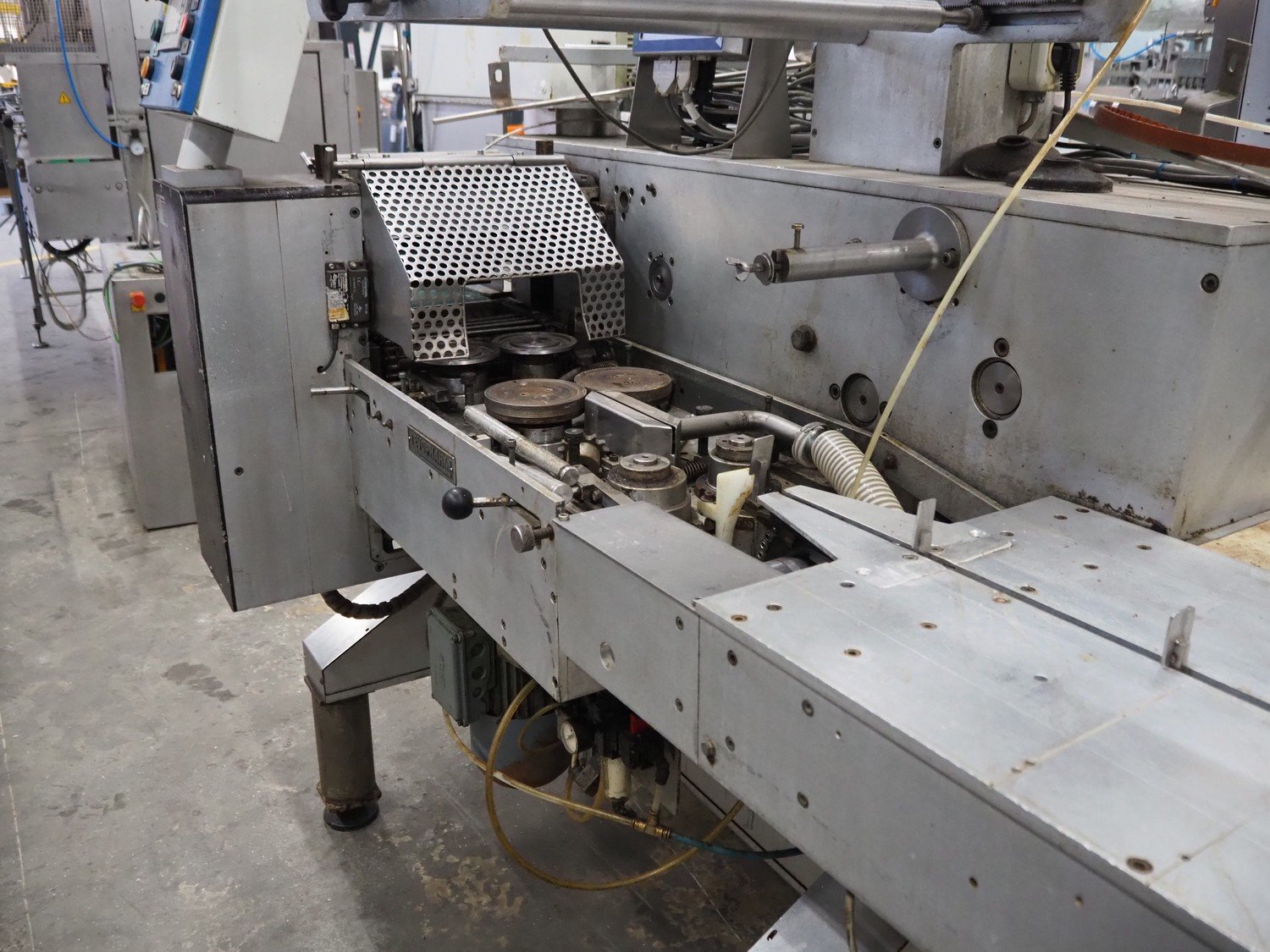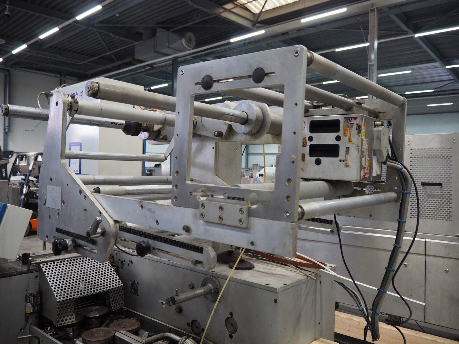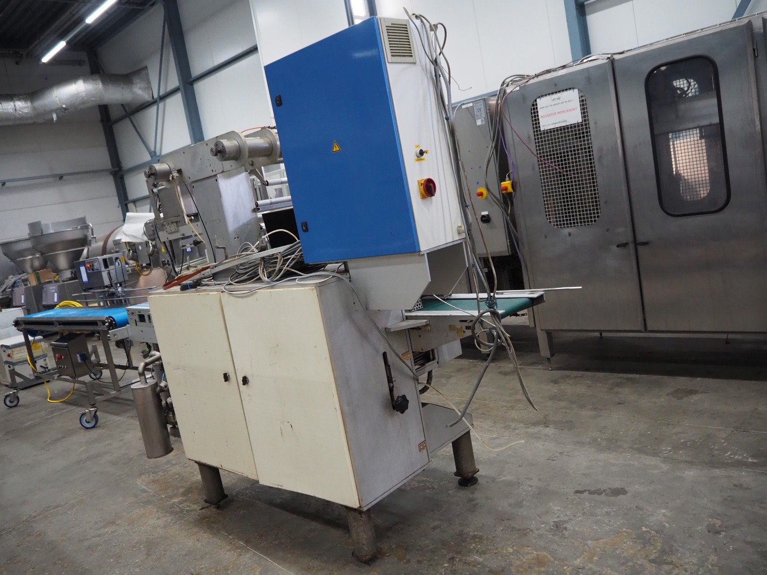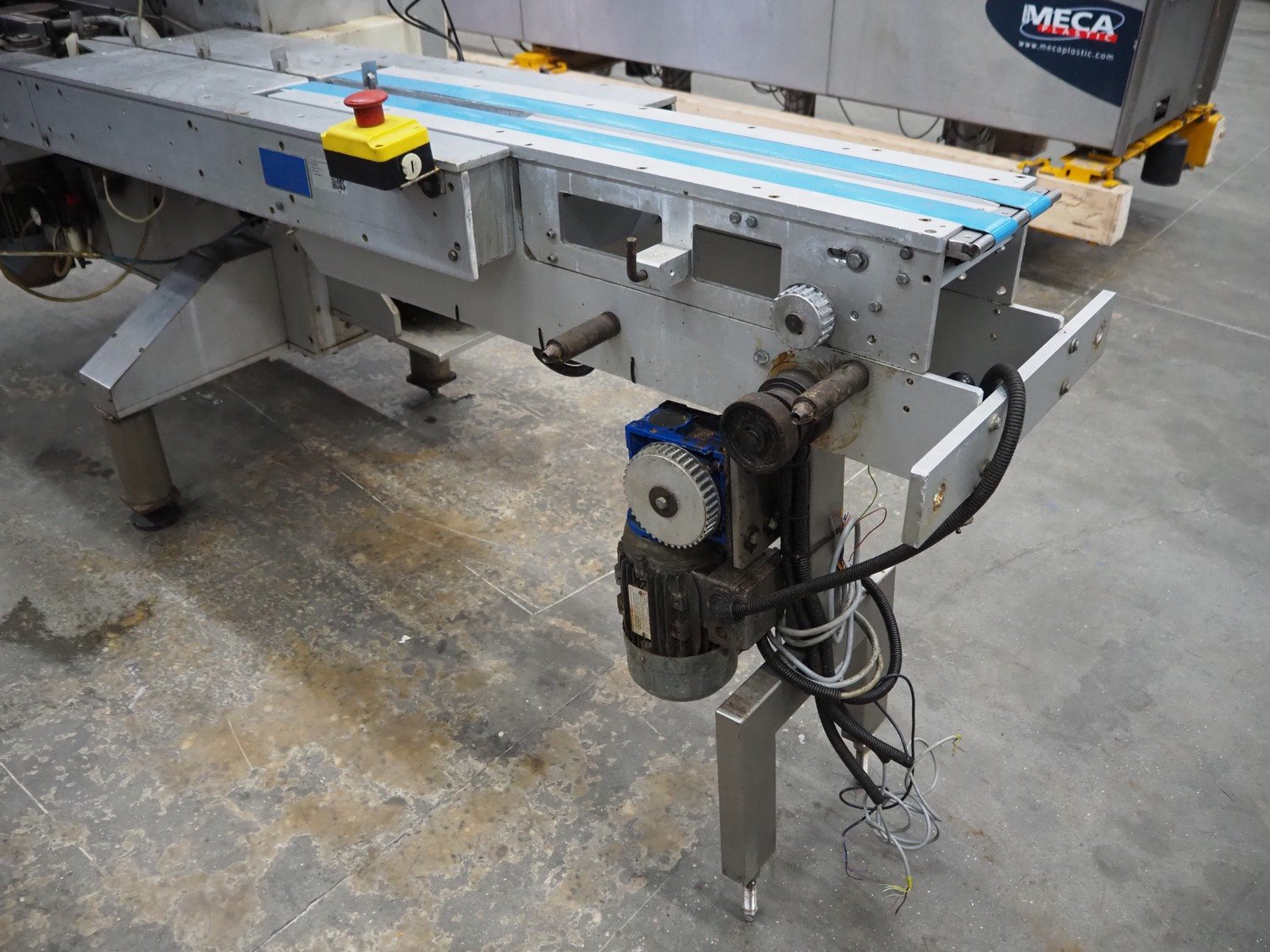 Tevopharm flowpacker with ZodiacES coding attachment, seal width: 190 mm, plastic belt, belt width: 250 mm, total dimensions: 3650 mm x 1150 mm x 2100 mm. Kavel locatie: Schouwrooij 29, 5281 RE Boxtel, Nederland