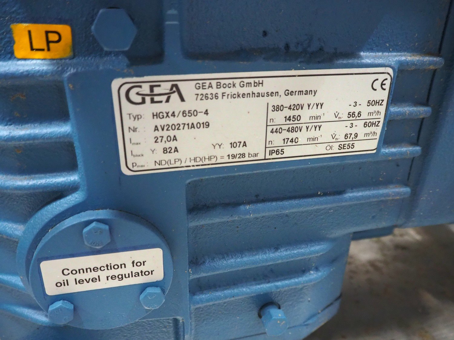 GEA Bock GmbH cooling compressor, type: HGX4/650-4, number: AV20271A019, capacity: 56.6 m³ per hour, dimensions: 1100 mm x 800 mm x 650 mm. Kavel locatie: Schouwrooij 29, 5281 RE Boxtel, Nederland