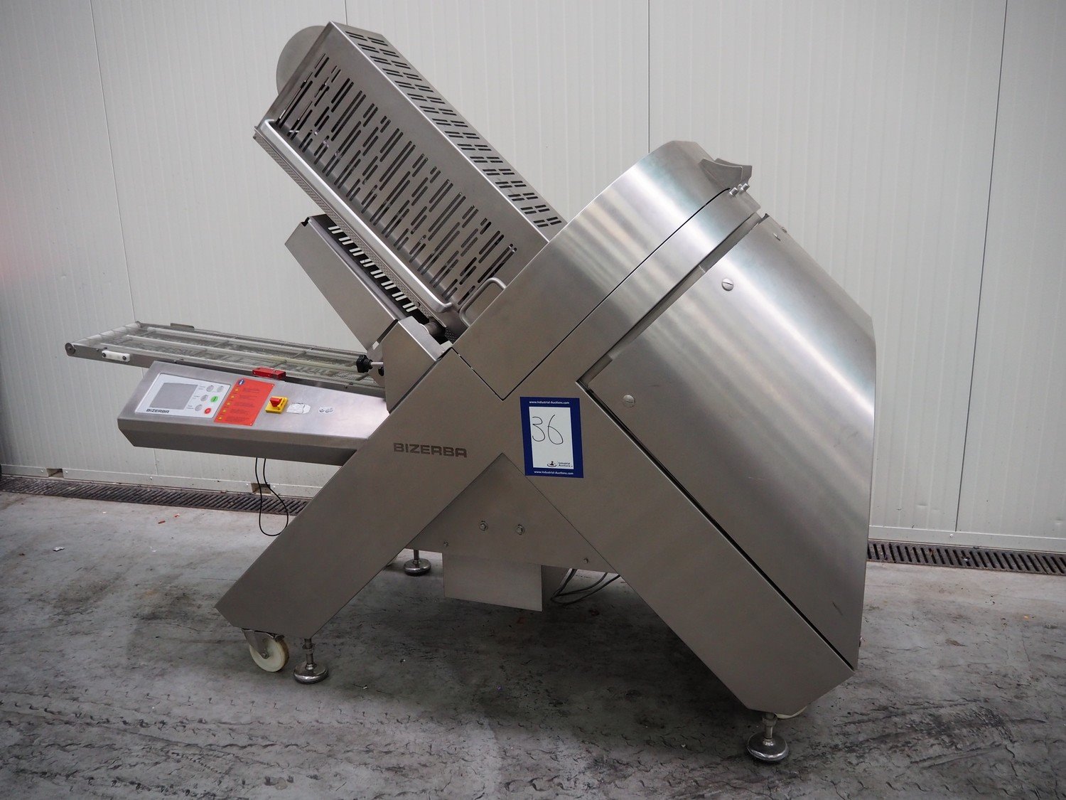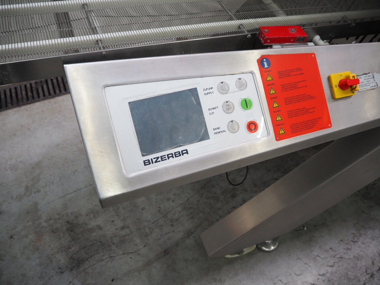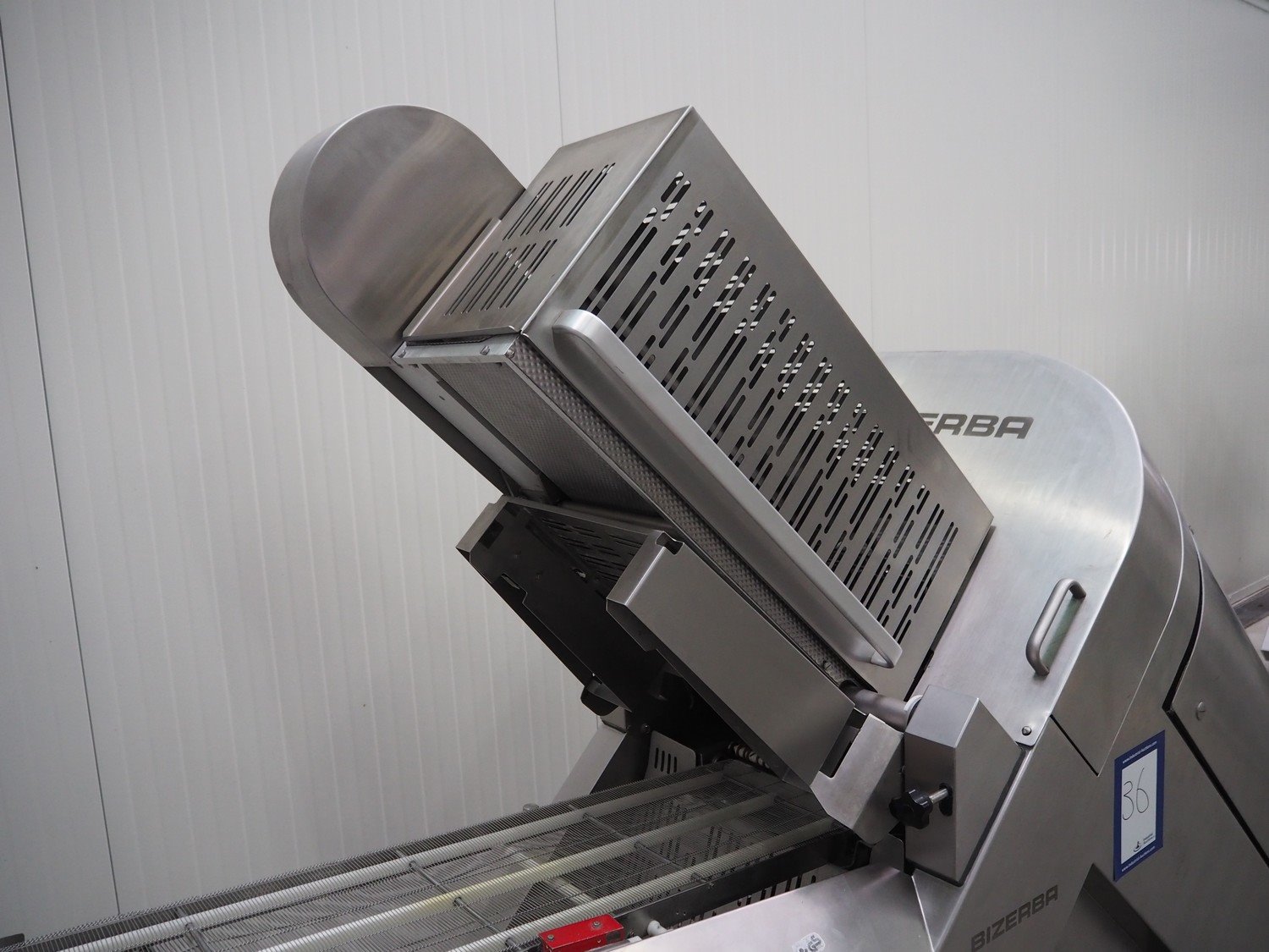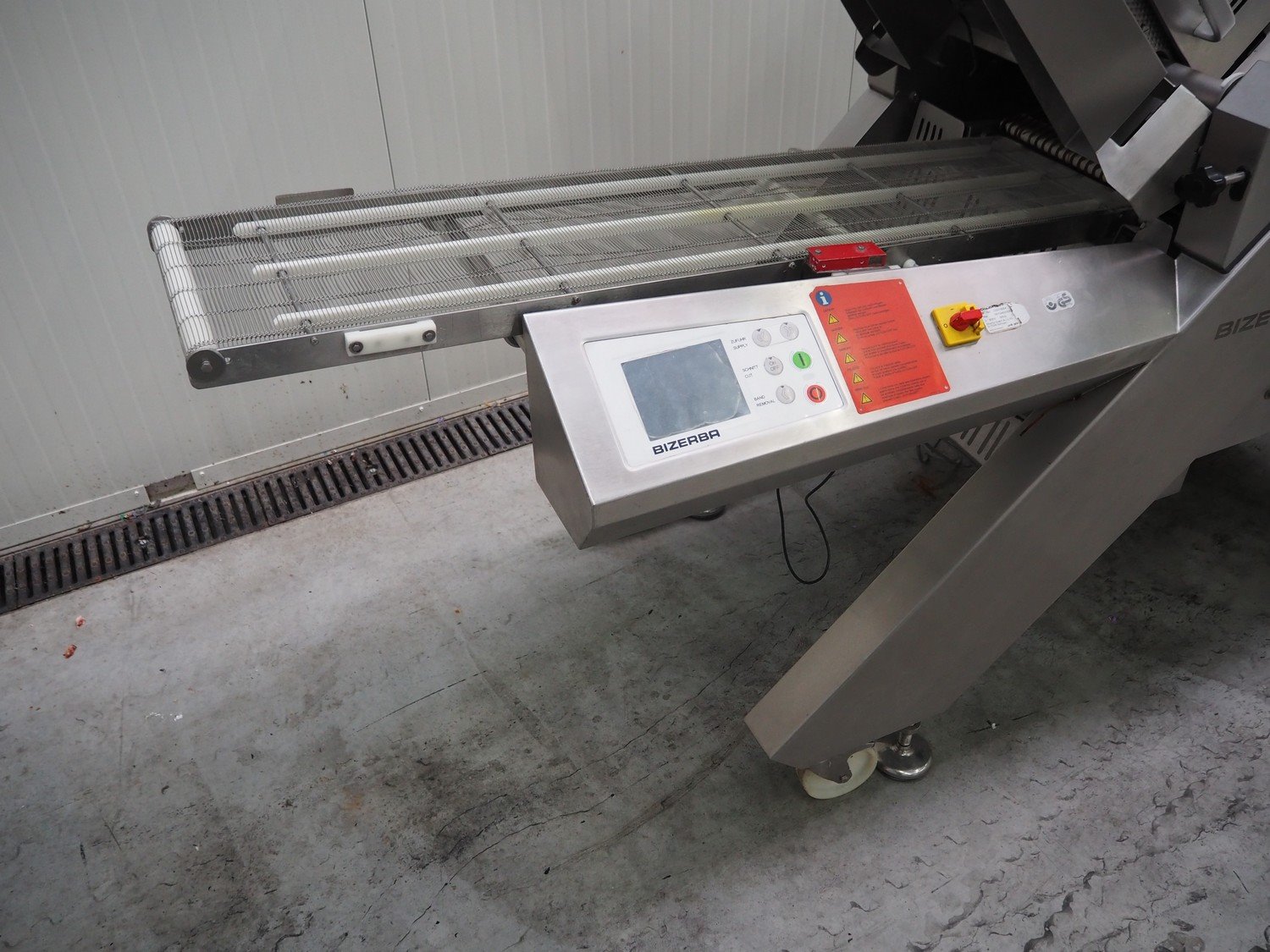 Bizerba mobile slicer, serial number: 10273664, 400 V, 3 Ph, 50 Hz, 5.7 A, 2.3 kW, s/s mesh outfeed belt, belt width: 300 mm, total dimensions: 2350 mm x 900 mm x 1800 mm. Kavel locatie: Schouwrooij 29, 5281 RE Boxtel, Nederland